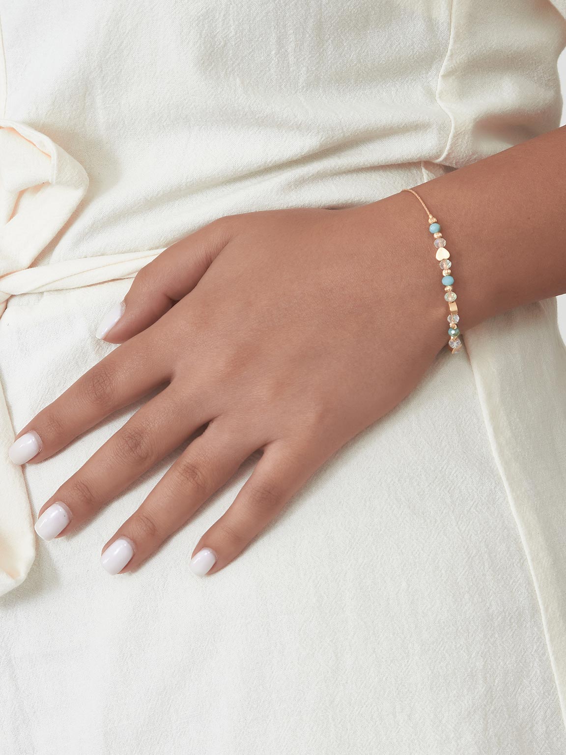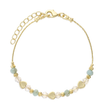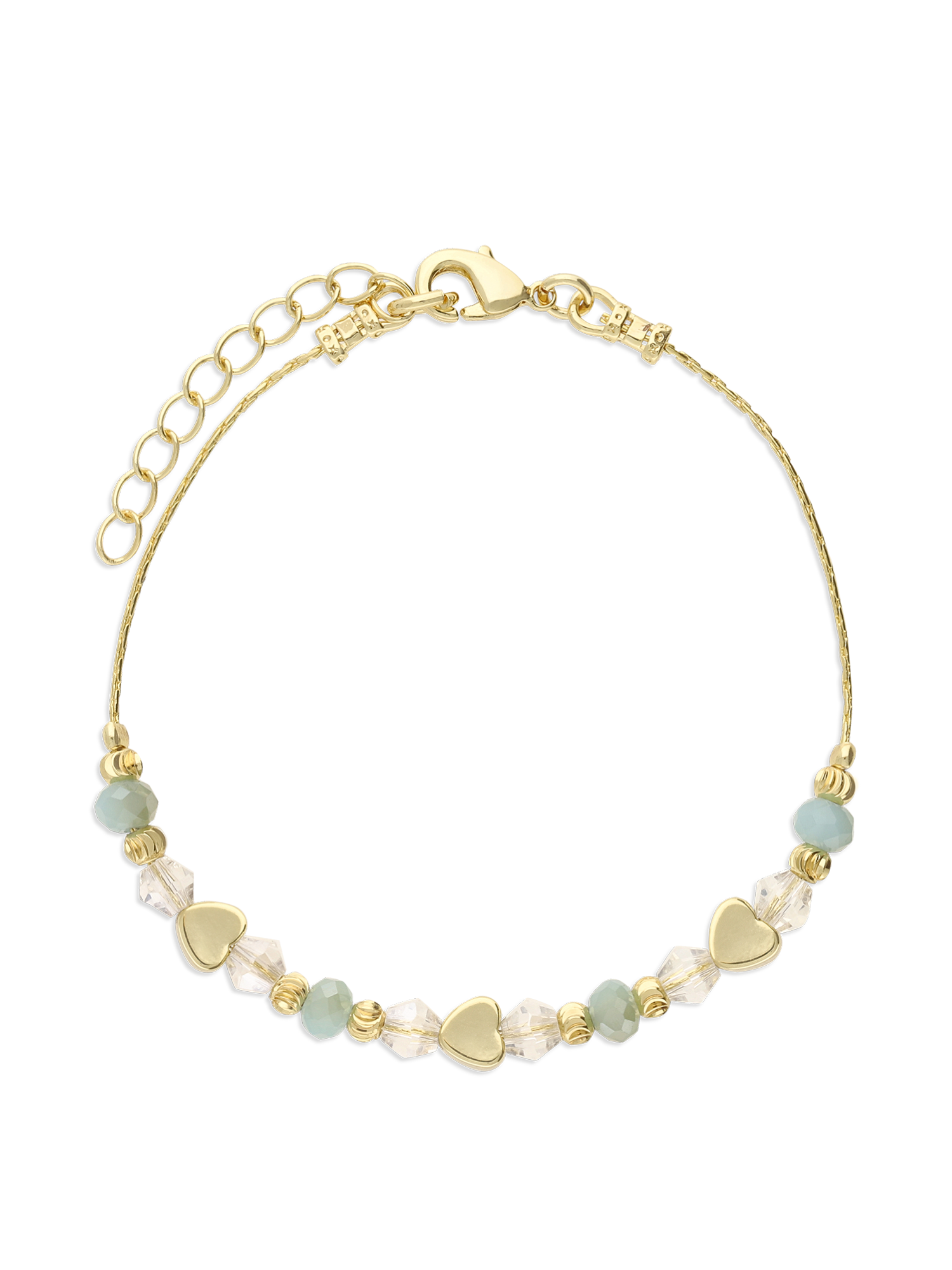 Pulseira Delicada, Banhado a Ouro, Cristal Swarovski de cultivo, Verde, Claro, Coração, Feito à mão,, Dourado, 3.20 gramas.