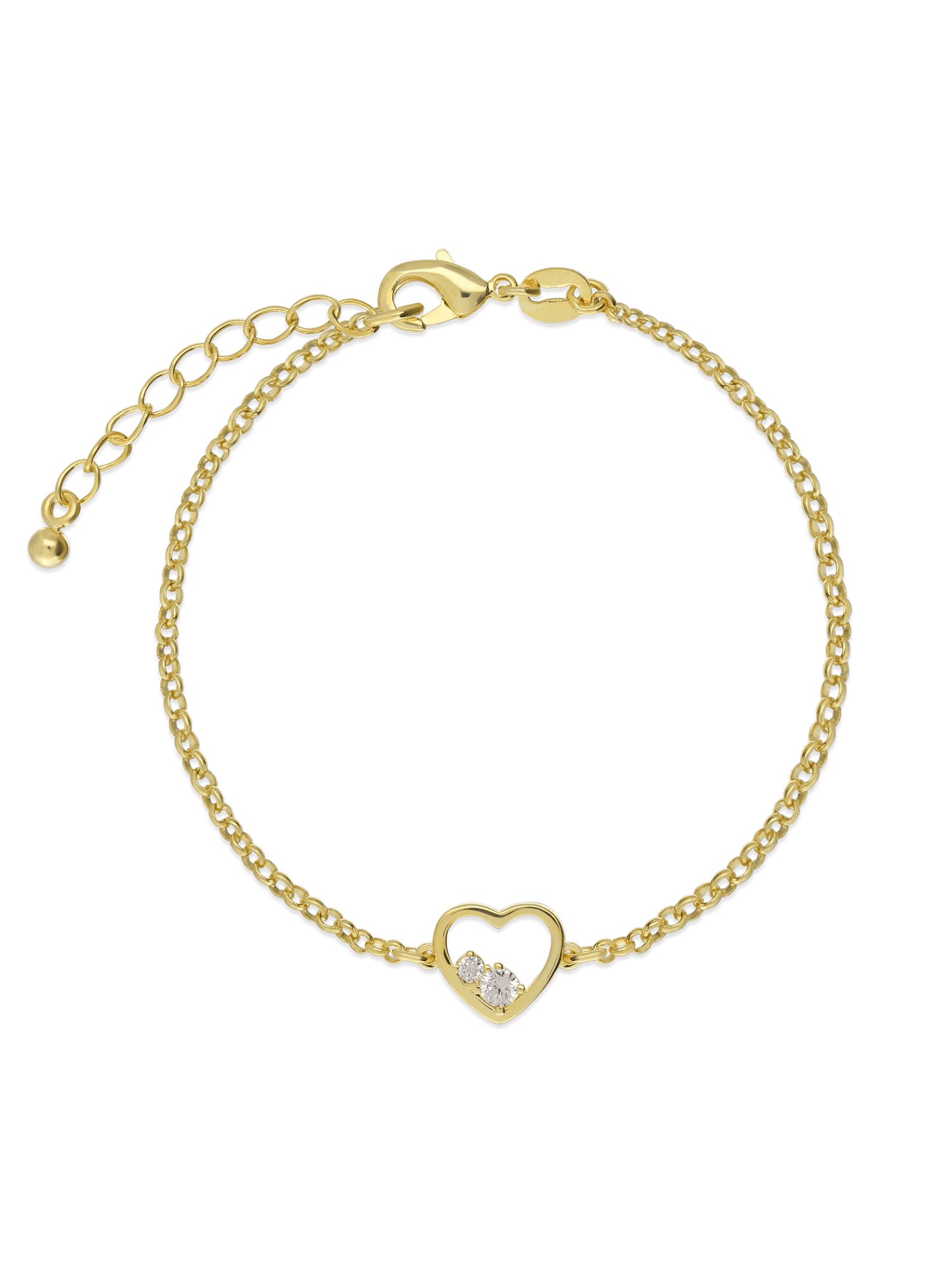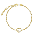 Pulseira Delicada, Banhado a Ouro, Zircónia de cultivo, Claro, Coração, Feito à mão,, Dourado, comprimento do pendente: 0.8 cm, largura do pendente: 0.8 cm, 1.82 gramas.