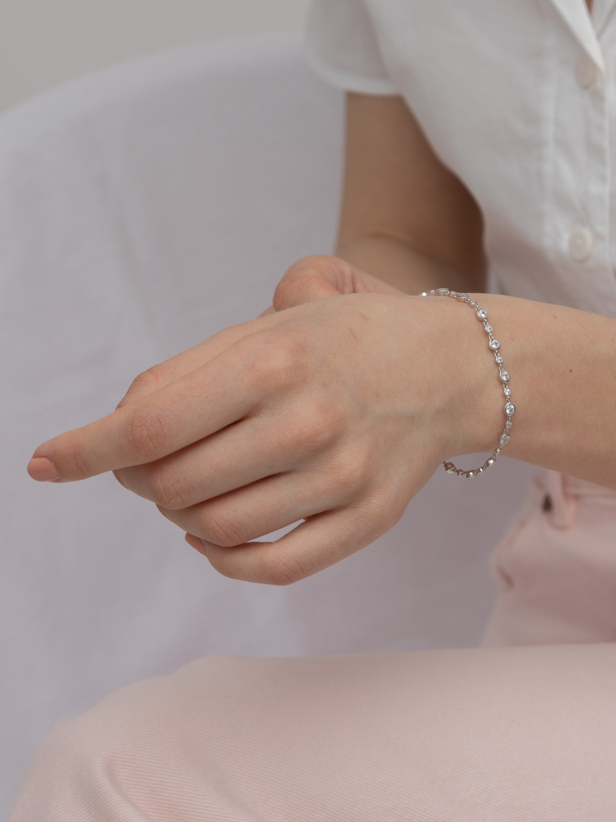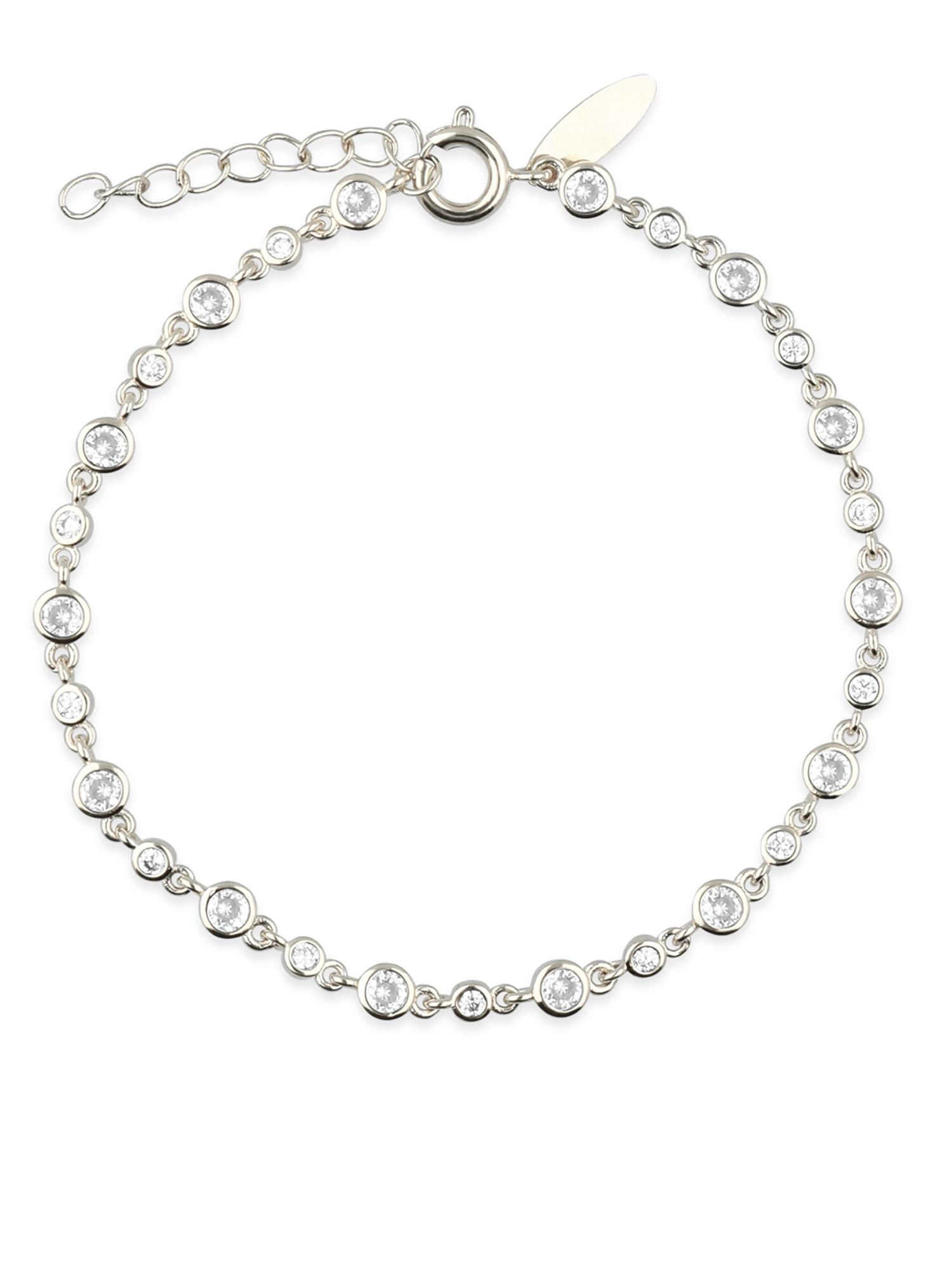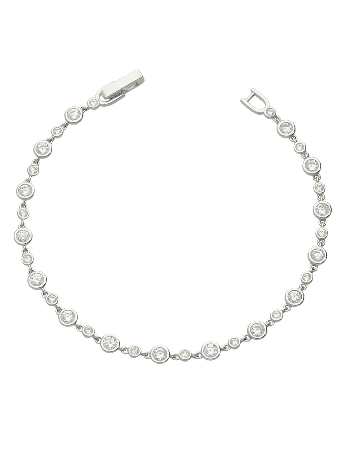 Pulseira de tenis, Prata de lei 925, Zircónia de cultivo, Claro, Círculo, Feito à mão,, Prateado, 5.20 gramas.