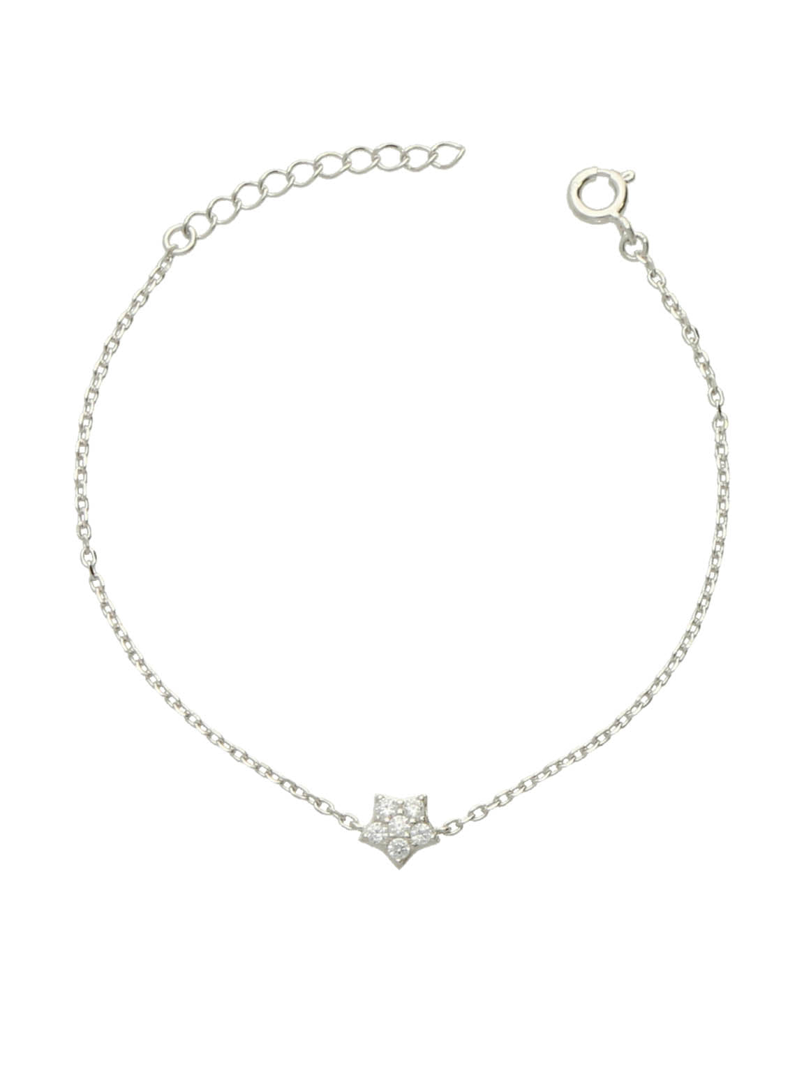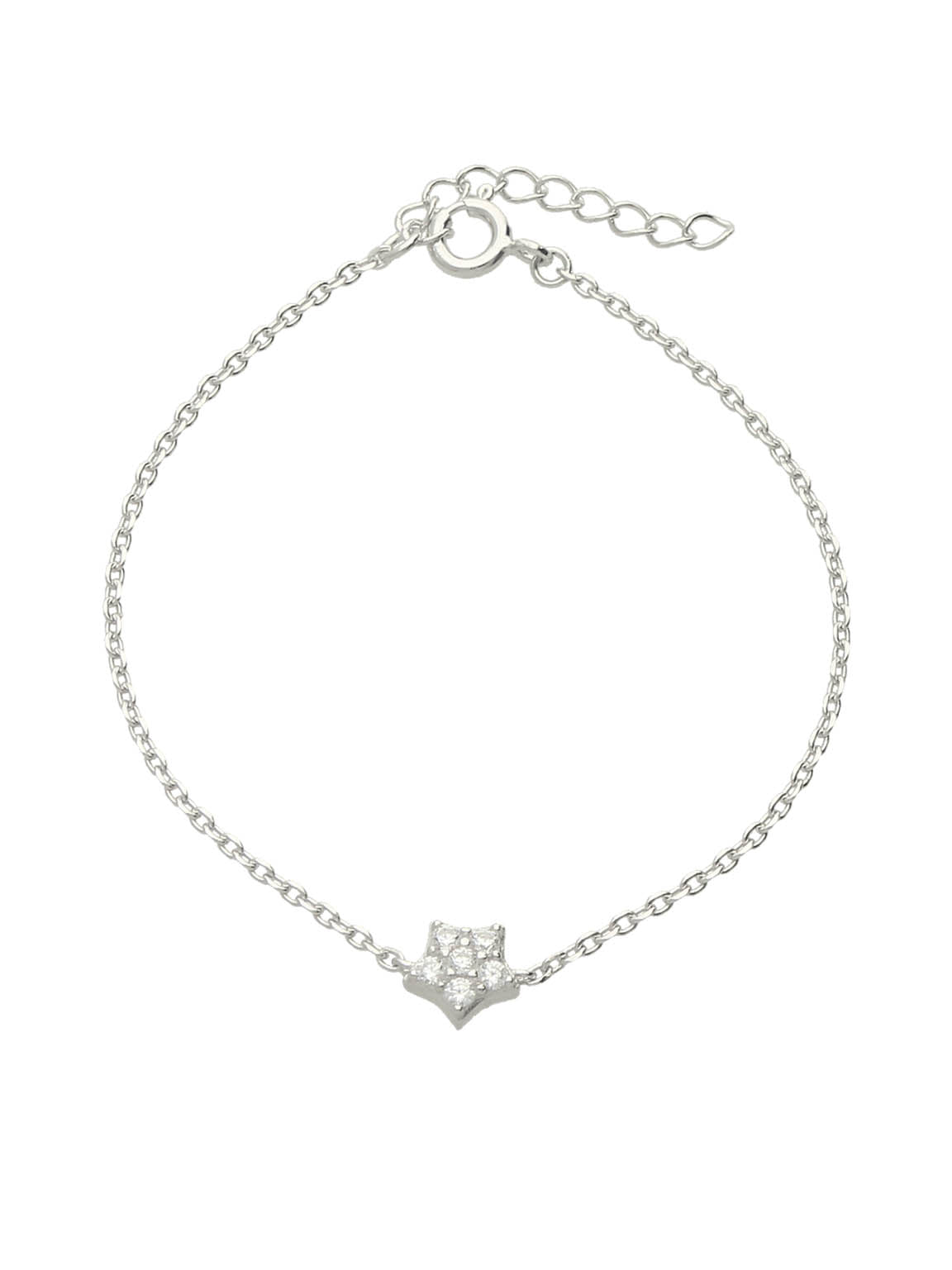 Pulseira Delicada, Prata de lei 925, Zircónia de cultivo, Claro, Estrela, Feito à mão,, Prateado, 1.60 gramas.