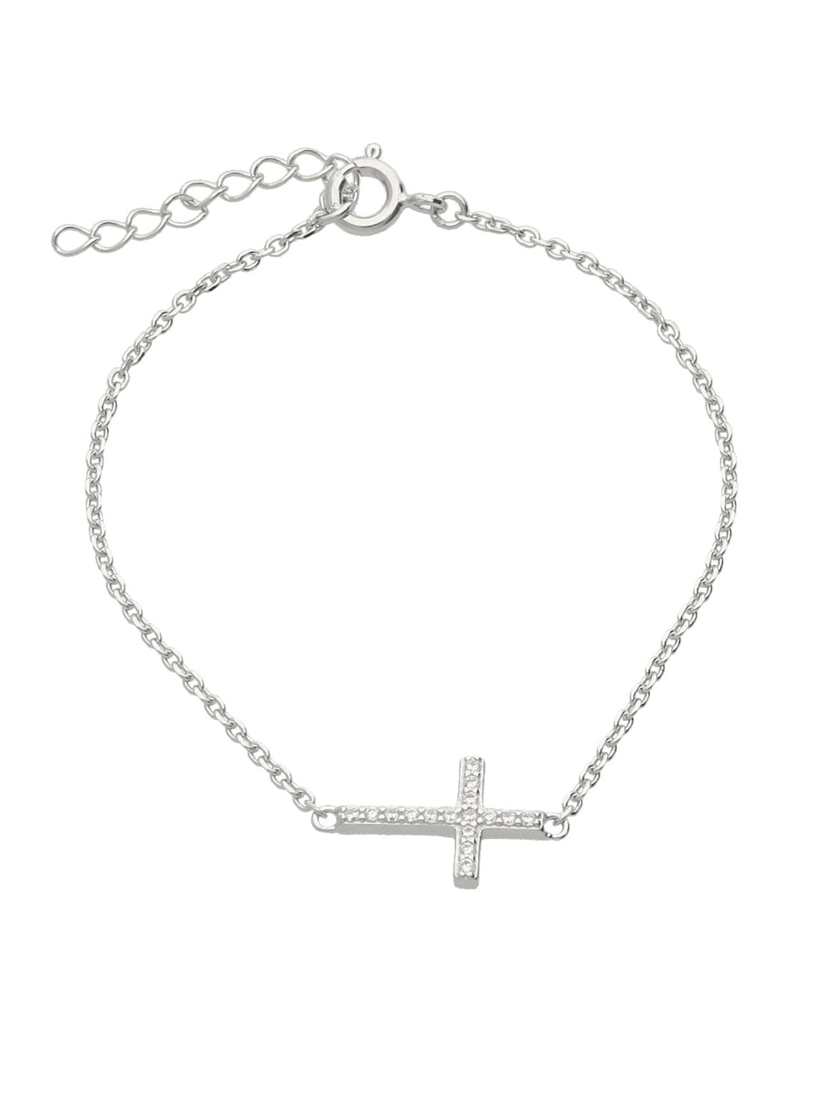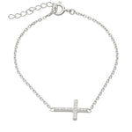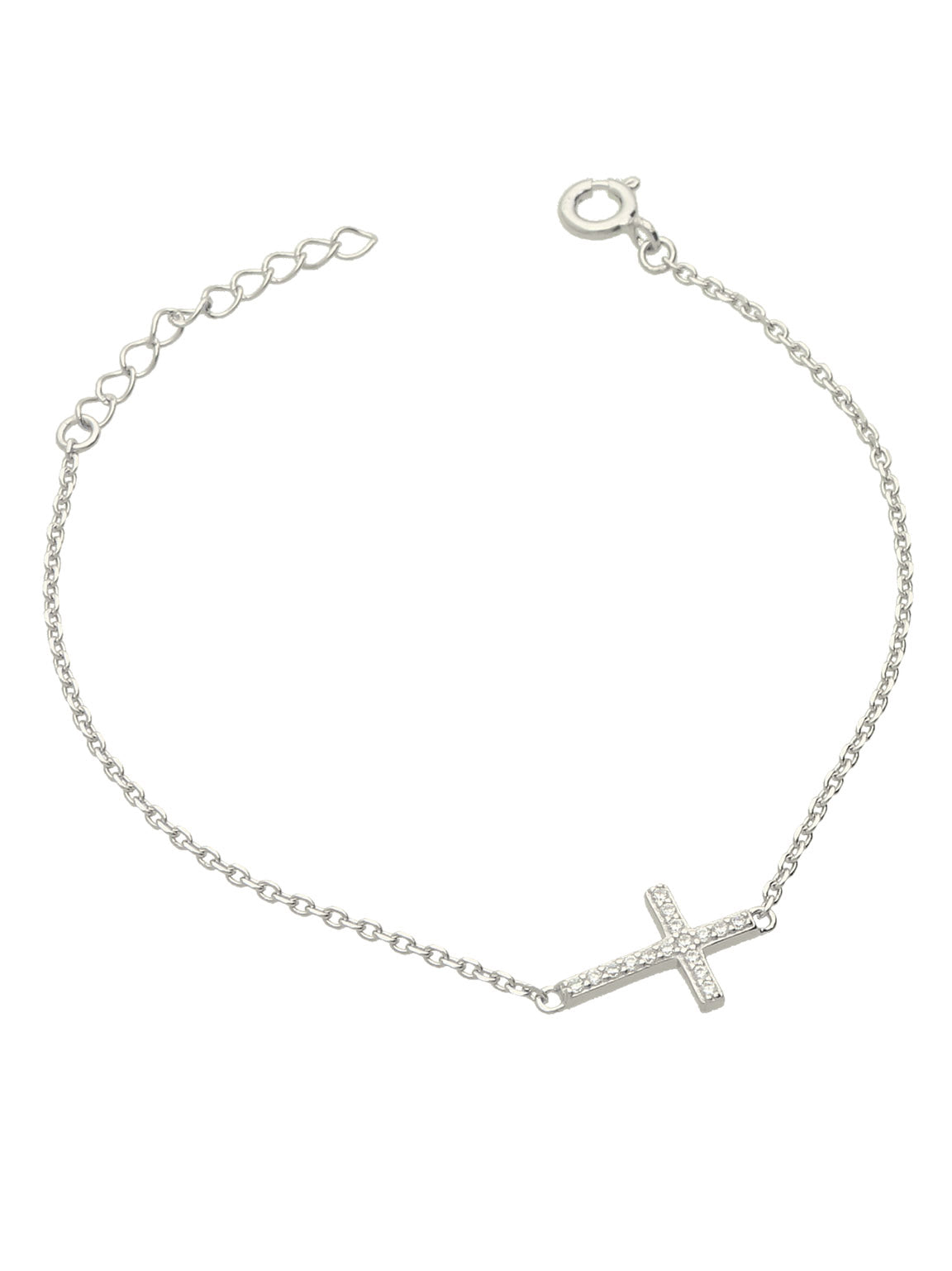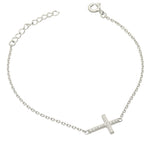 Pulseira Delicada, Prata de lei 925, Zircónia de cultivo, Claro, Cruz, Feito à mão,, Prateado, 1.60 gramas.