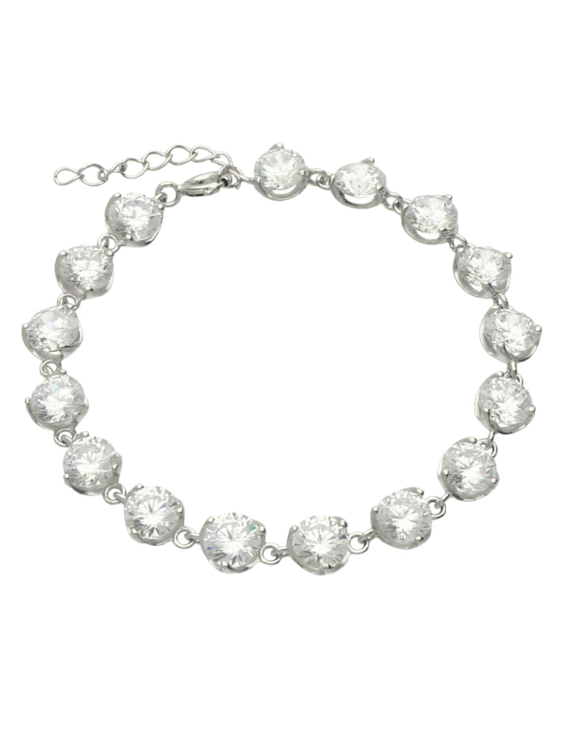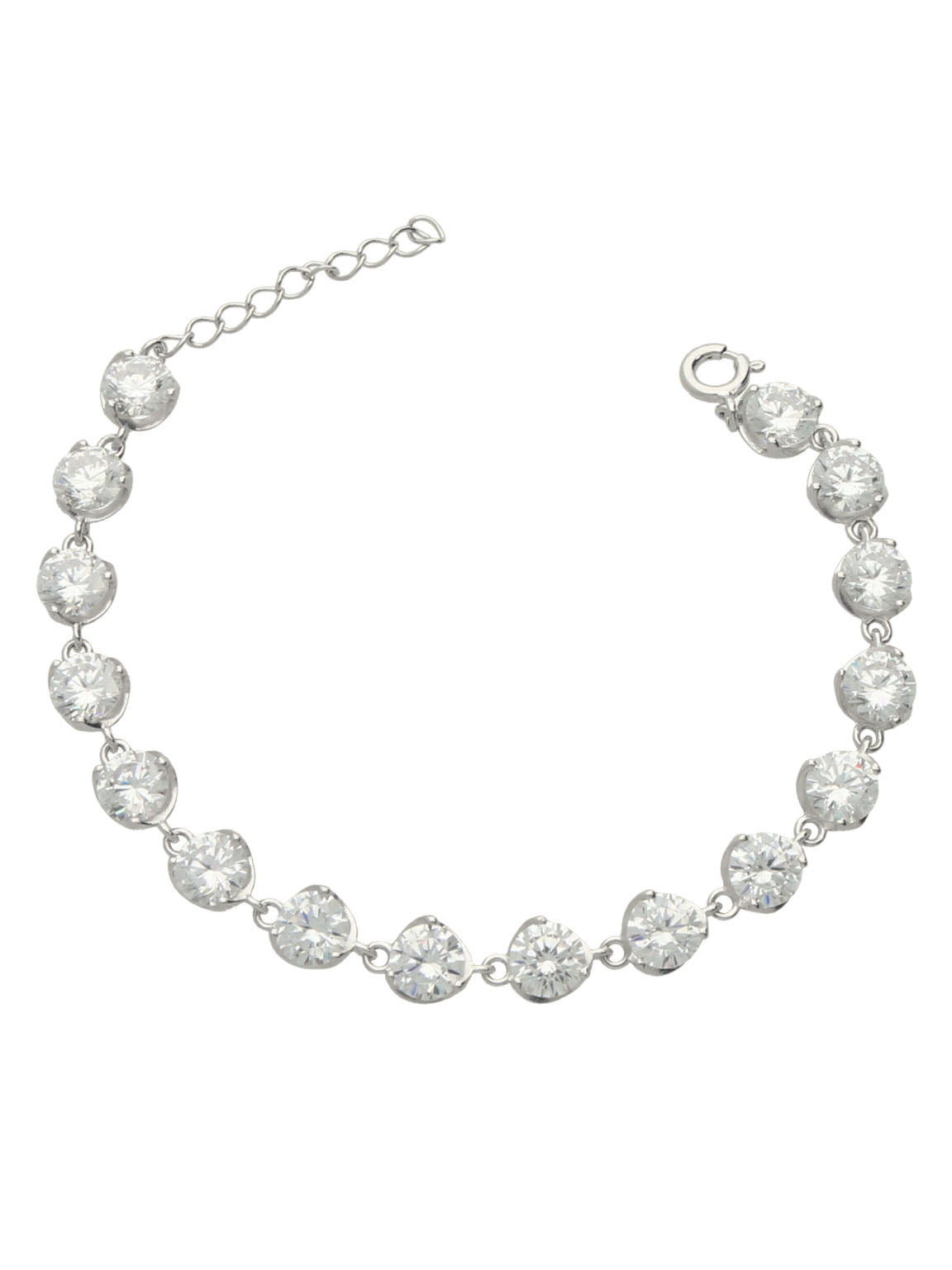Pulseira Temática, Prata de lei 925, Zircónia de cultivo, Claro, Círculo, Feito à mão,, Prateado, 9.60 gramas.