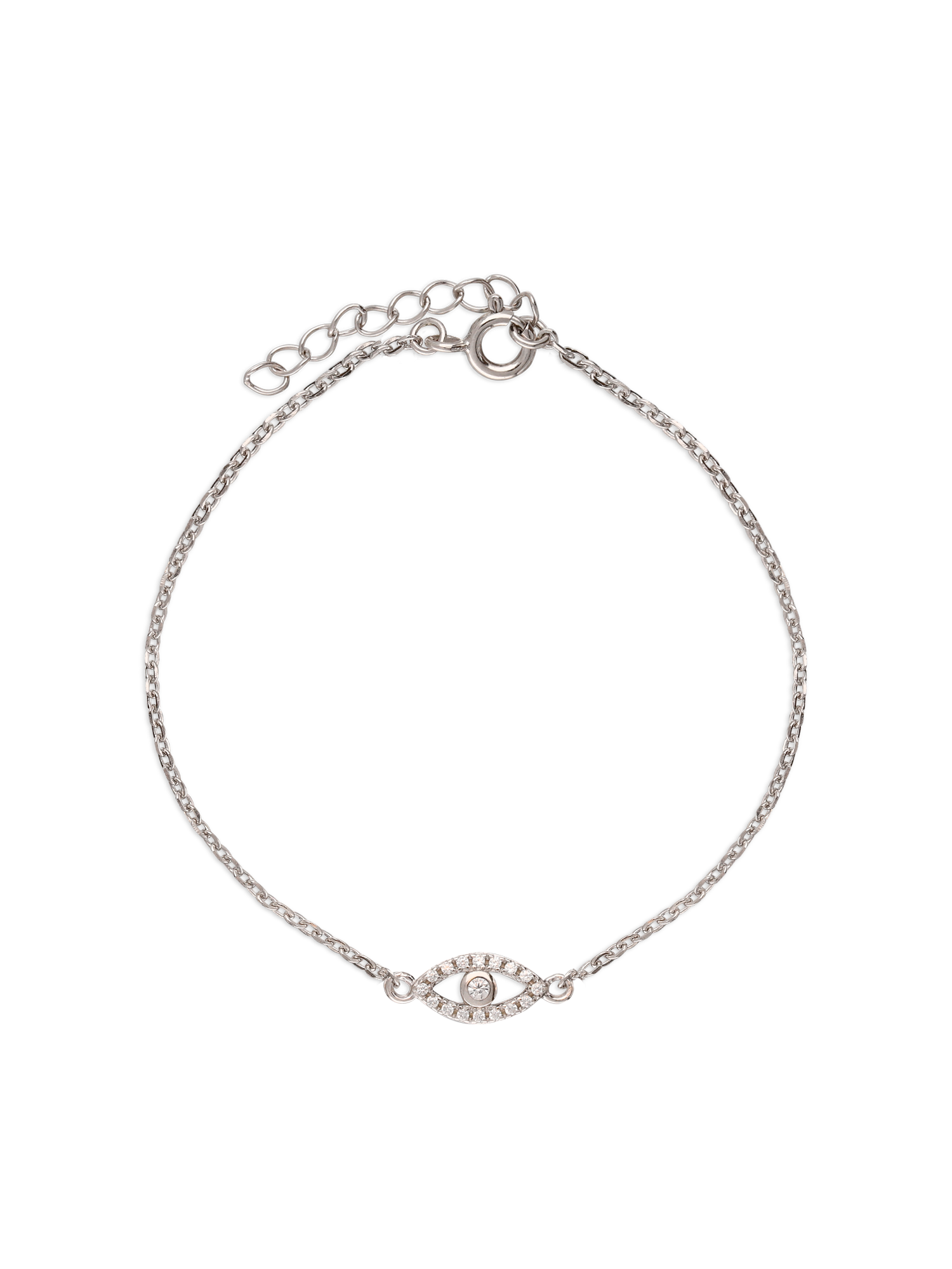 Pulseira Delicada, Prata de lei 925, Zircónia de cultivo, Claro, Olho, Feito à mão,, Prateado, 1.60 gramas.
