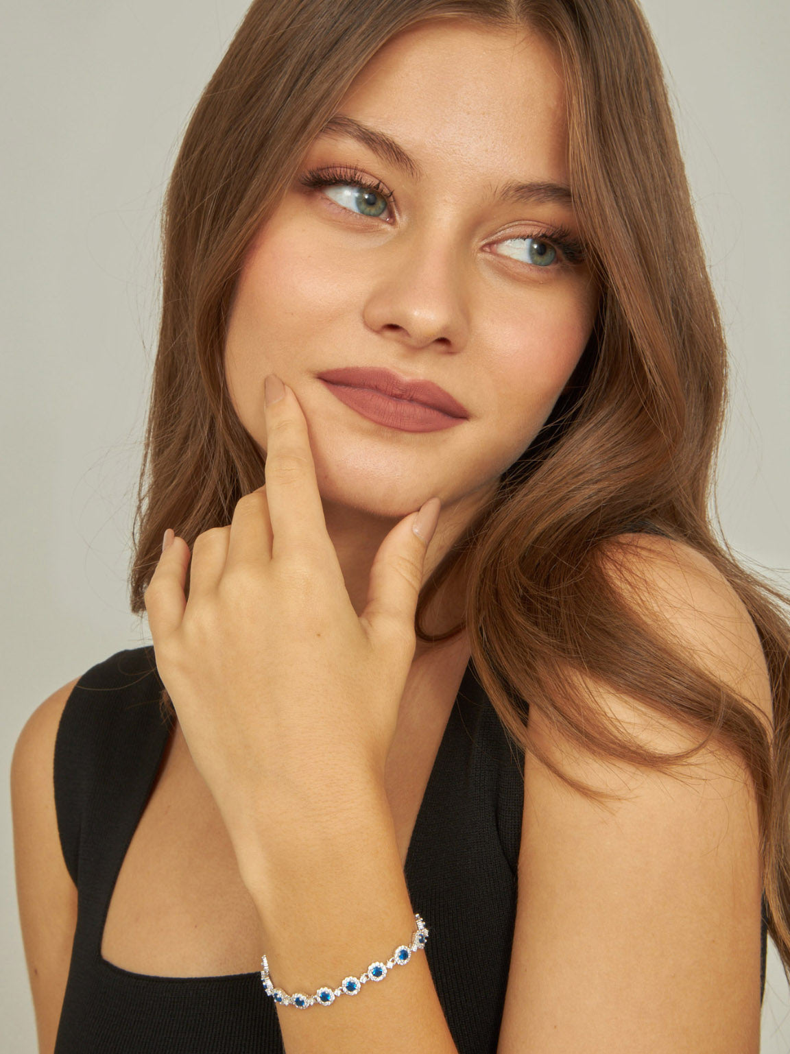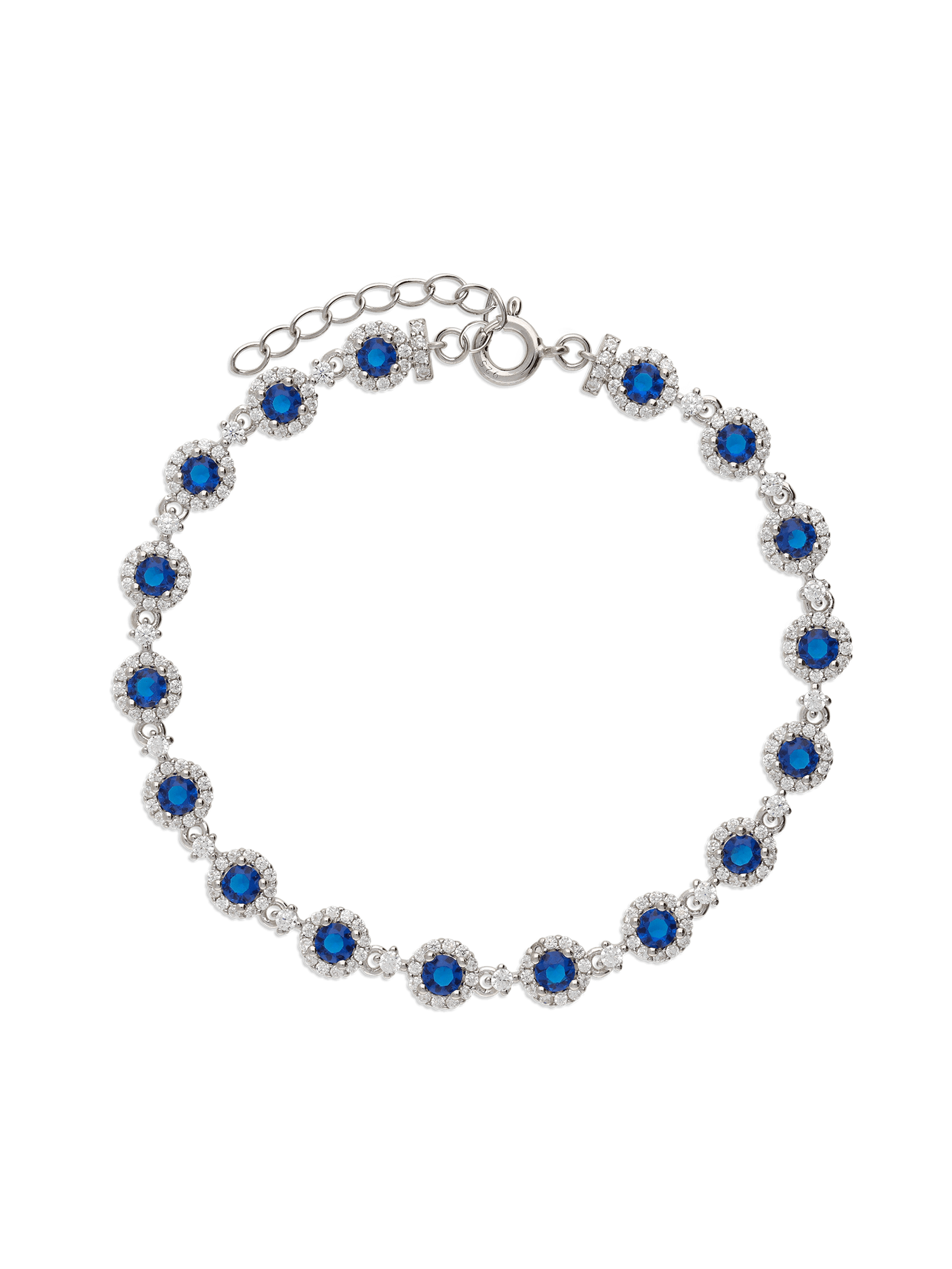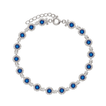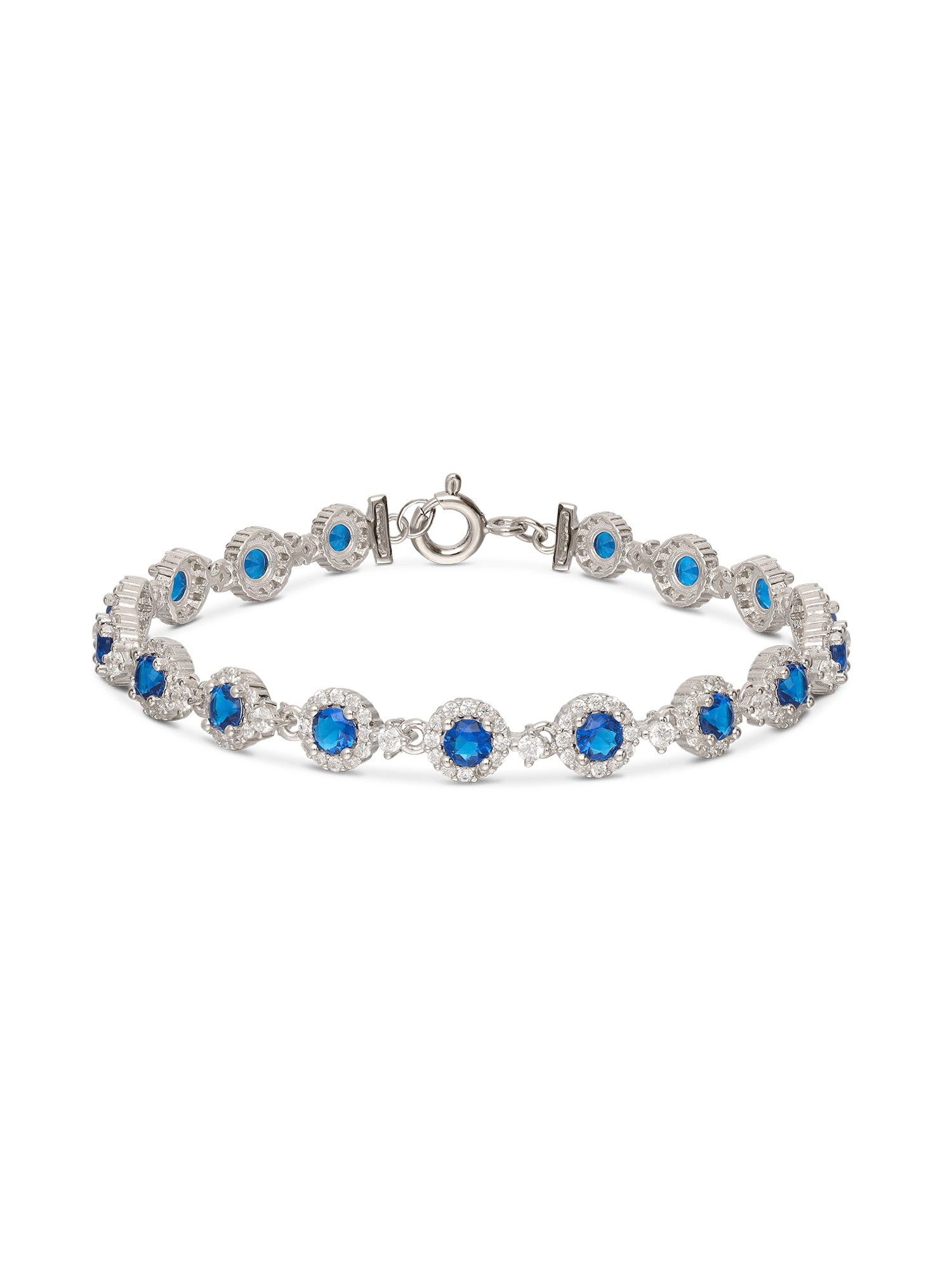 Pulseira de tenis, Prata de lei 925, Zircónia de cultivo, Azul, Claro, Círculo, Feito à mão,, Prateado, Comprimento: 16.3 cm, 6.00 gramas.