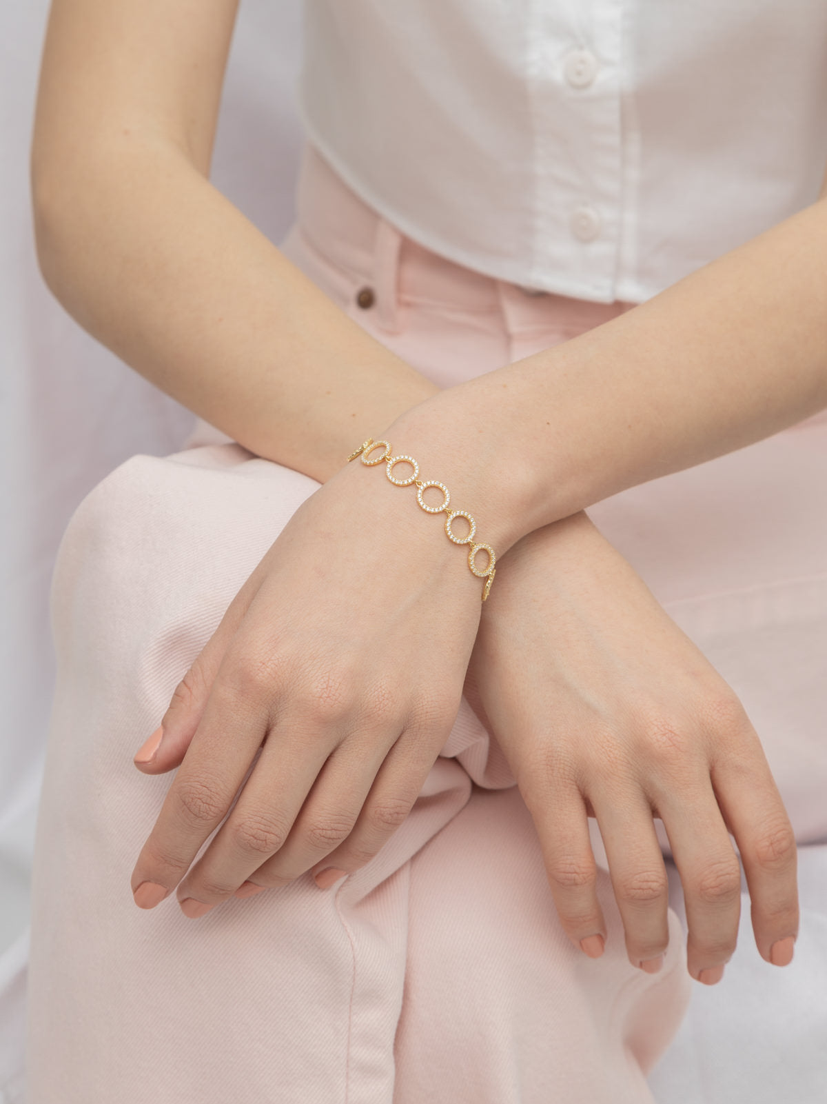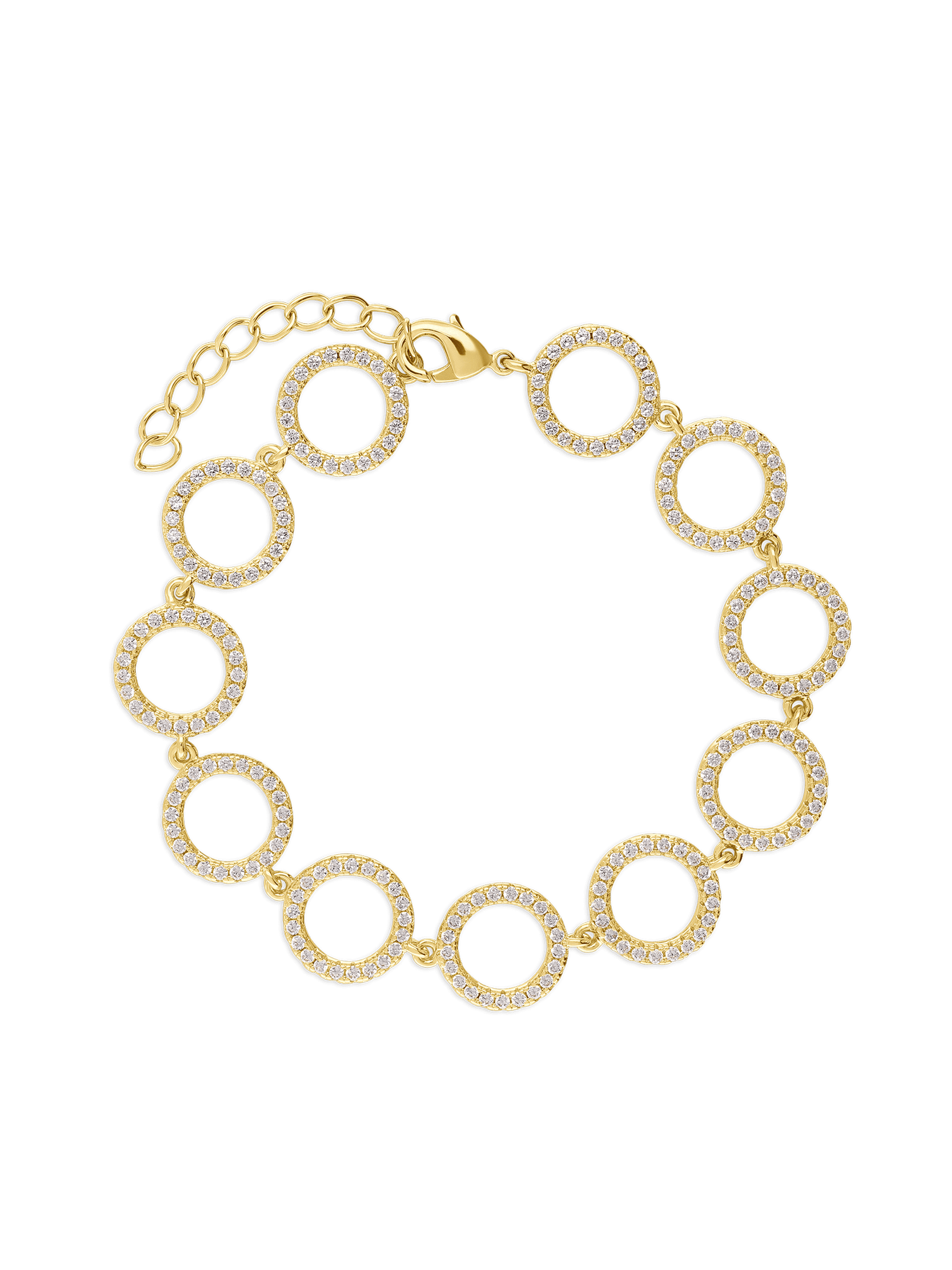 Pulseira Temática, Banhado a Ouro, Zircónia de cultivo, Claro, Círculo, Feito à mão,, Dourado, 6.06 gramas.