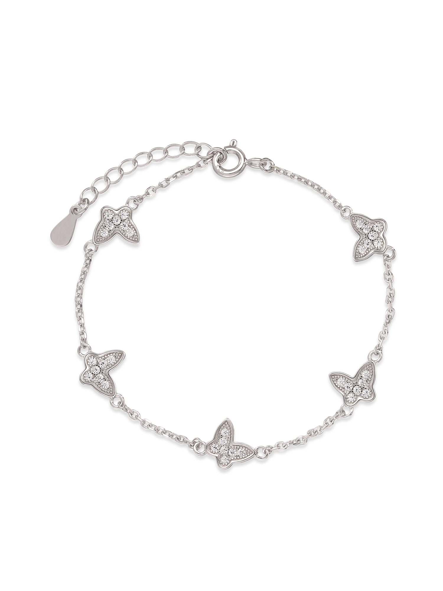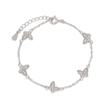 Pulseira Delicada, Prata de lei 925, Zircónia de cultivo, Claro, Borboleta, Feito à mão,, Prateado, 4.09 gramas.