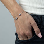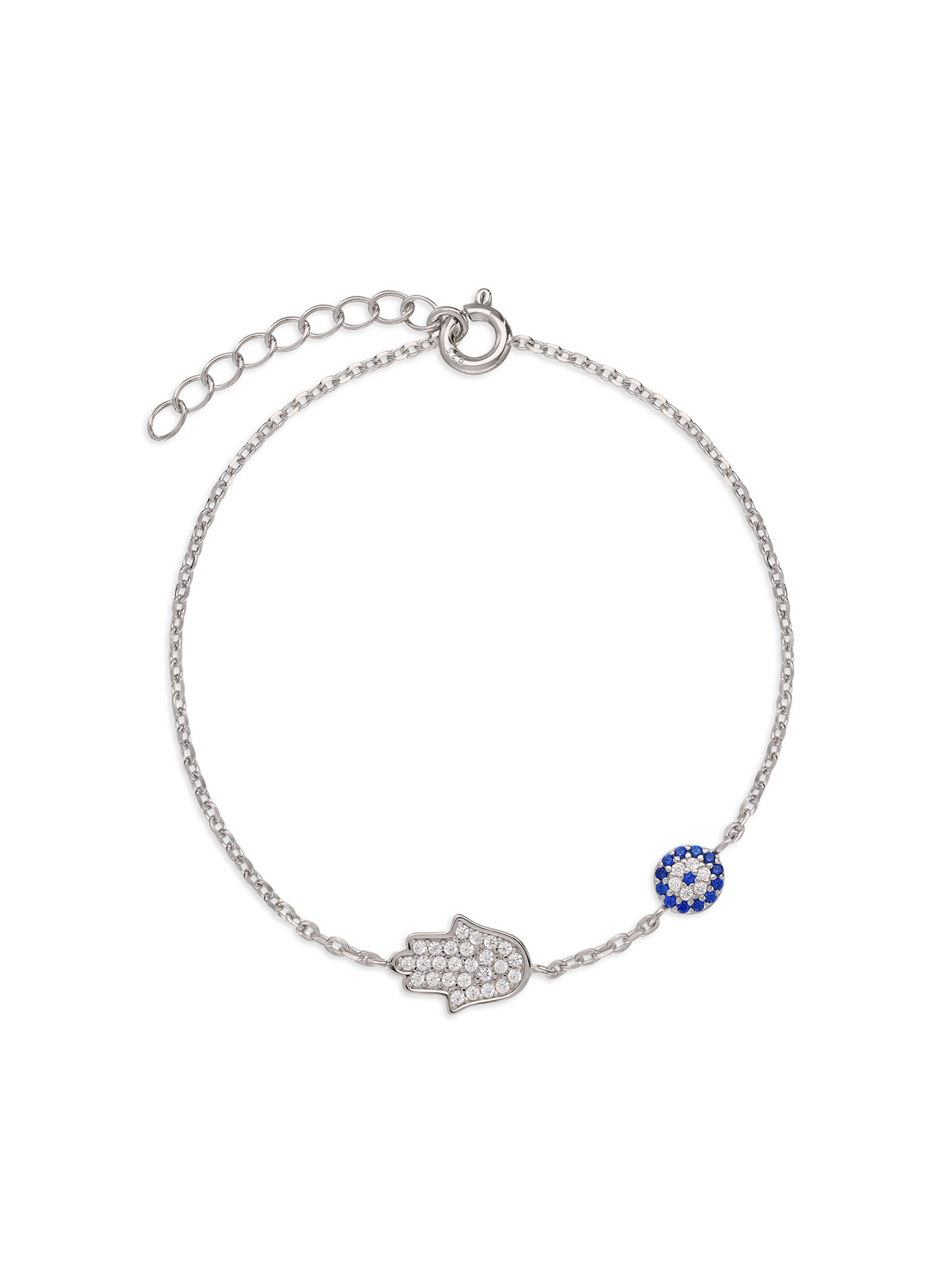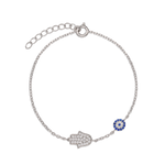 Pulseira Delicada, Prata de lei 925, Zircónia de cultivo, Azul, Claro, Mão de Fátima, Círculo, Feito à mão,, Prateado, 1.86 gramas.
