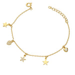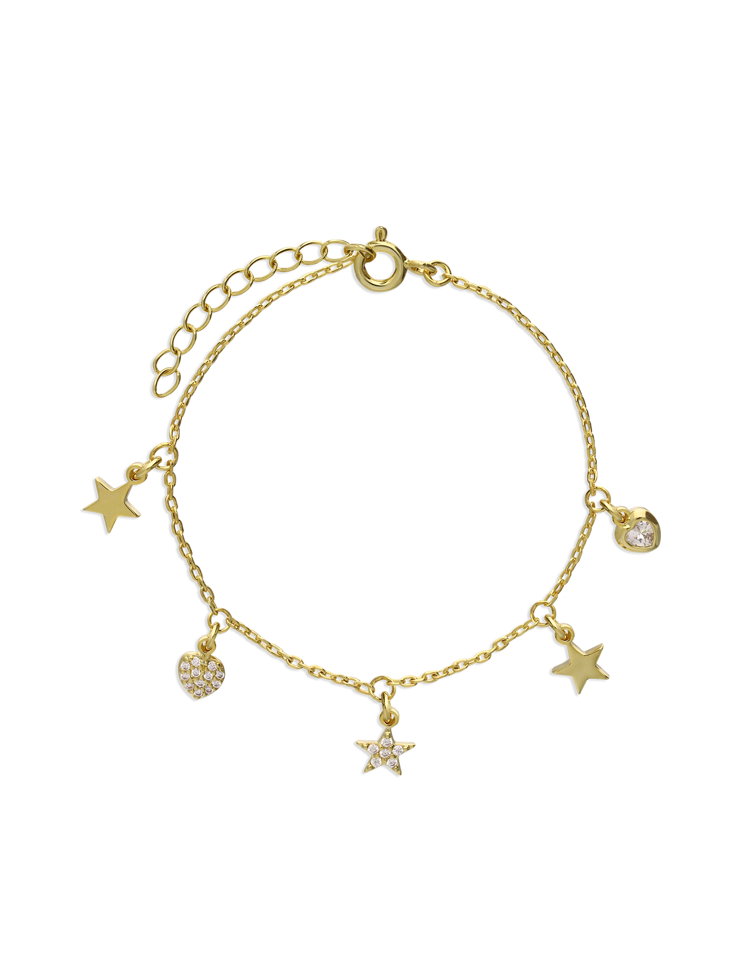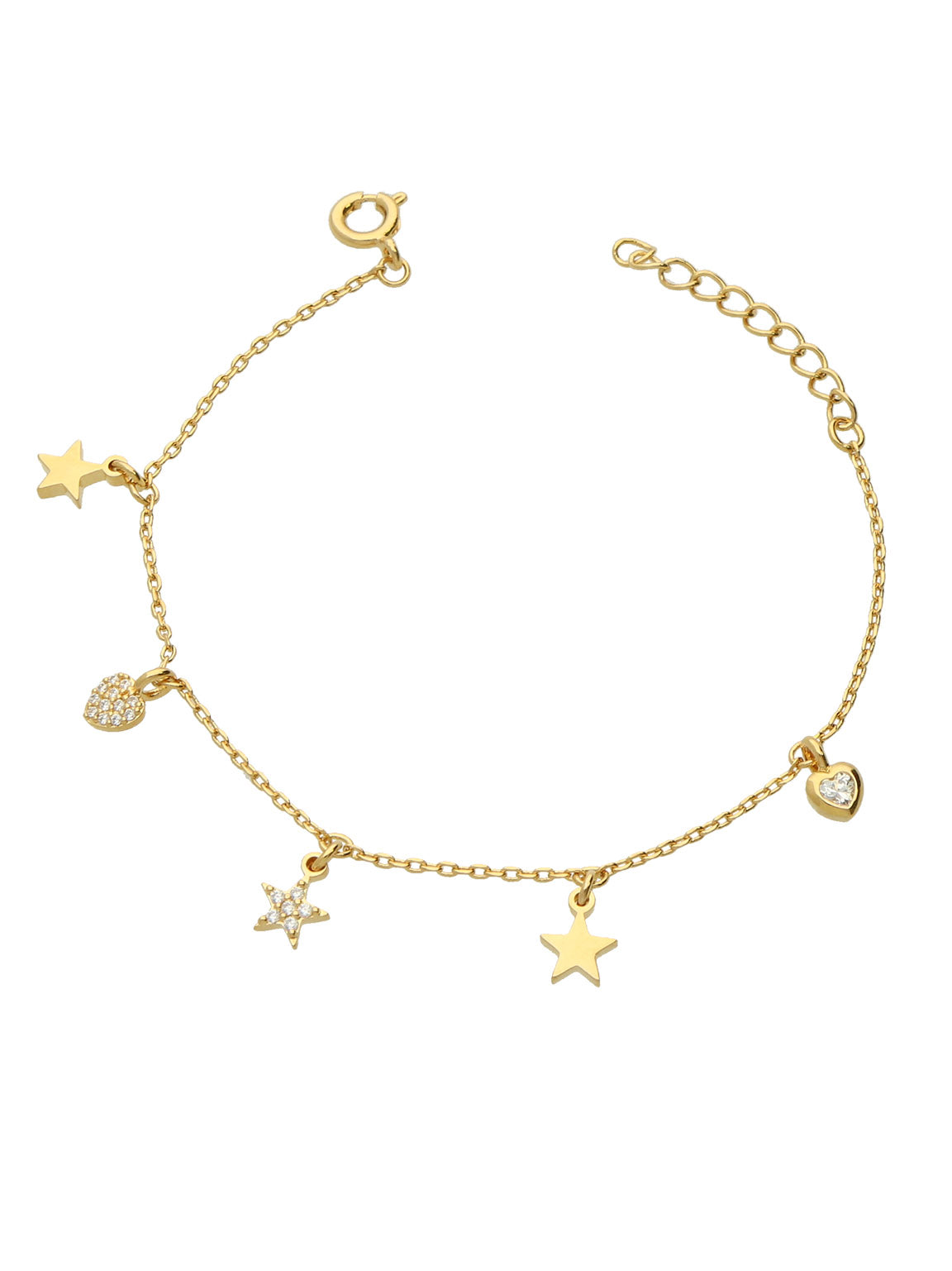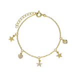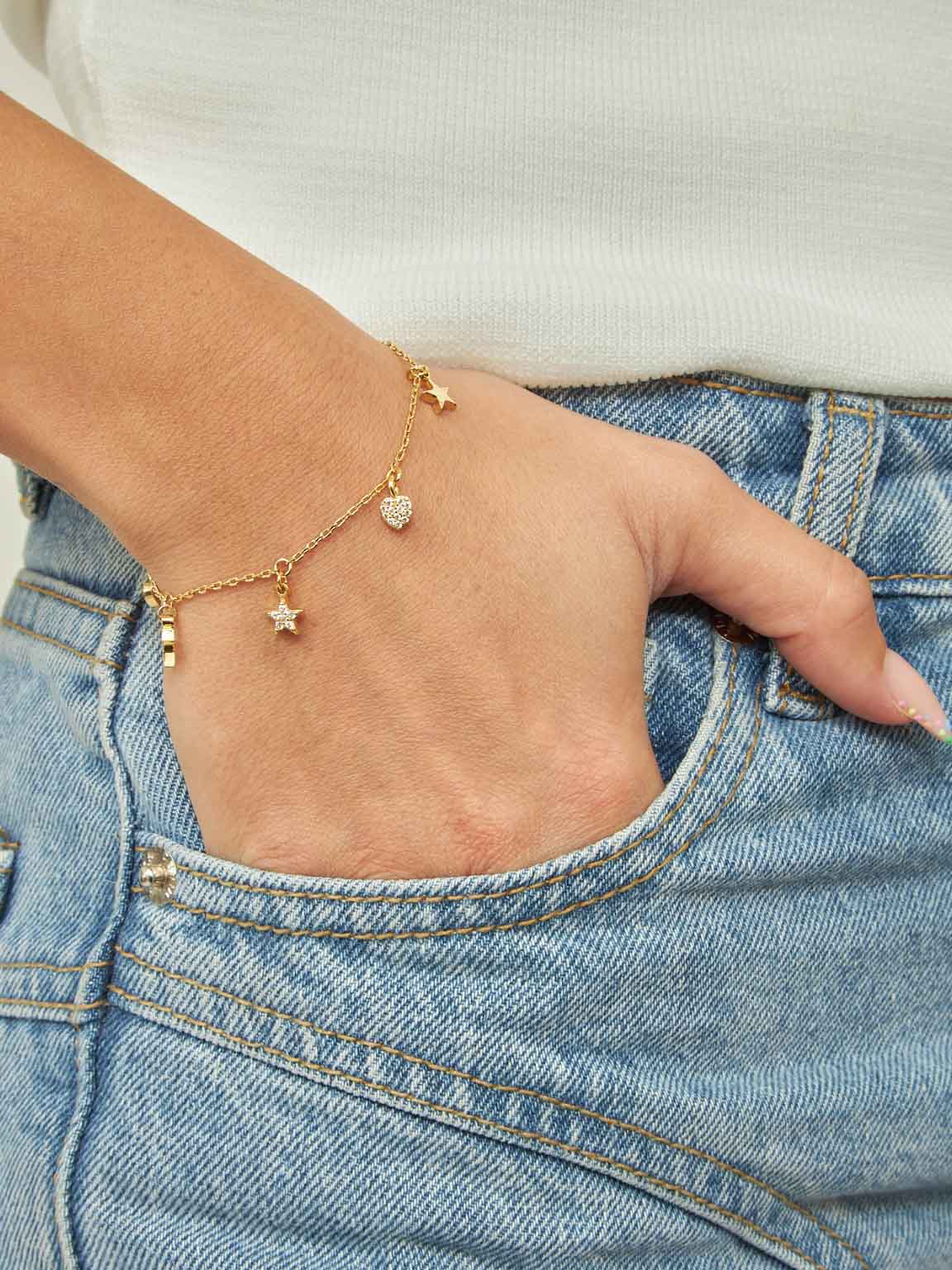 Pulseira Delicada, Banhado a Ouro, Vidro cristal, Claro, Coração, Estrela, Feito à mão,, Dourado, comprimento do pendente: 0.5 cm, largura do pendente: 0.5 cm, 2.18 gramas.