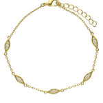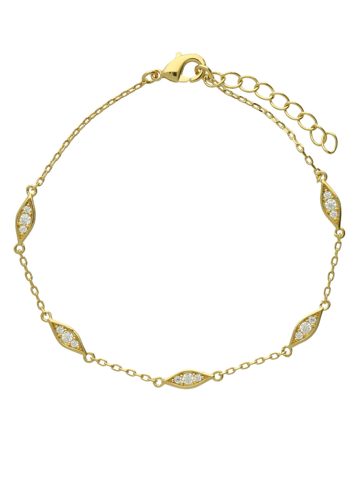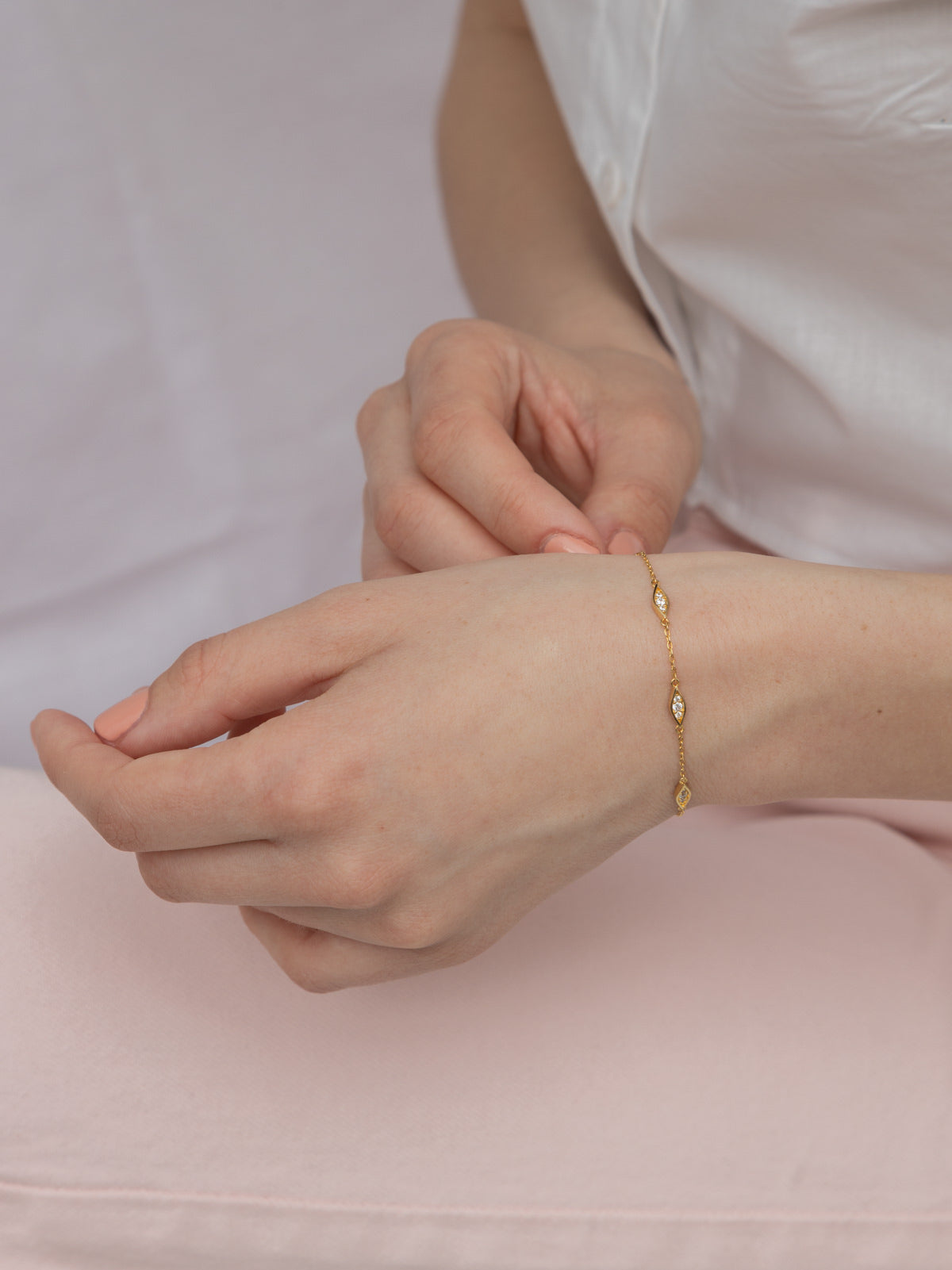 Pulseira Delicada, Banhado a Ouro, Zircónia de cultivo, Claro, Olho, Feito à mão,, Dourado, 2.04 gramas.