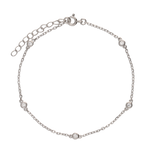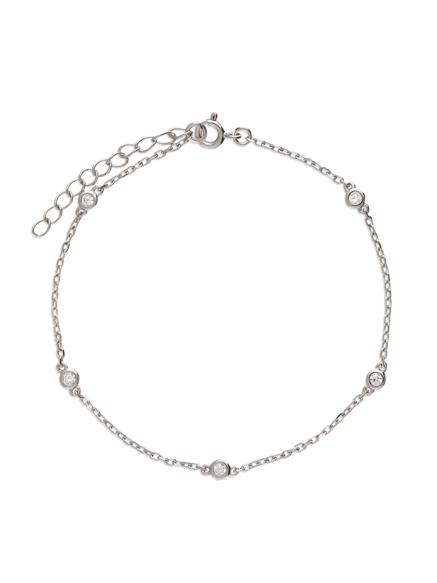 Pulseira Delicada, Prata de lei 925, Zircónia de cultivo, Claro, Círculo, Feito à mão,, Prateado, 1.34 gramas.