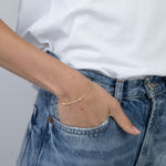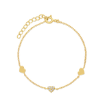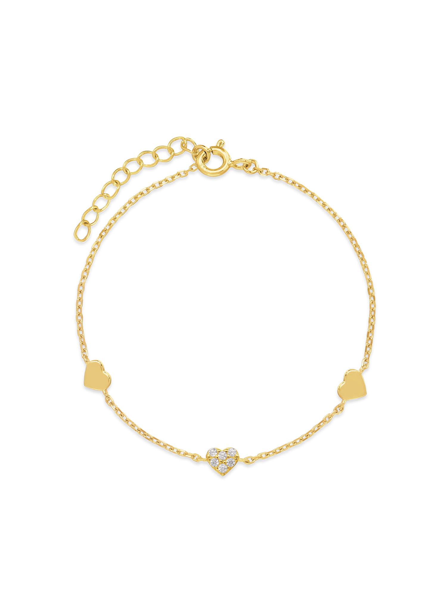 Pulseira Delicada, Banhado a Ouro, Zircónia de cultivo, Claro, Coração, Feito à mão,, Dourado, 1.75 gramas.