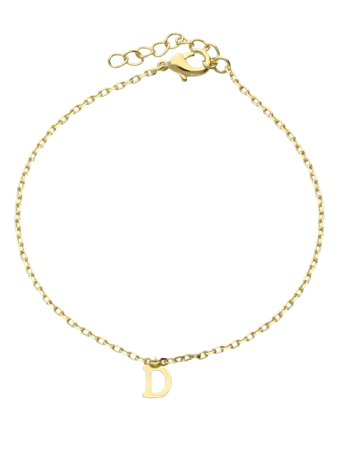 Pulseira Delicada, Banhado a Ouro, Nenhuma pedra, Sem cor, Letra, Dourado, comprimento do pendente: 0.7 cm, largura do pendente: 0.5 cm, 1.36 gramas.