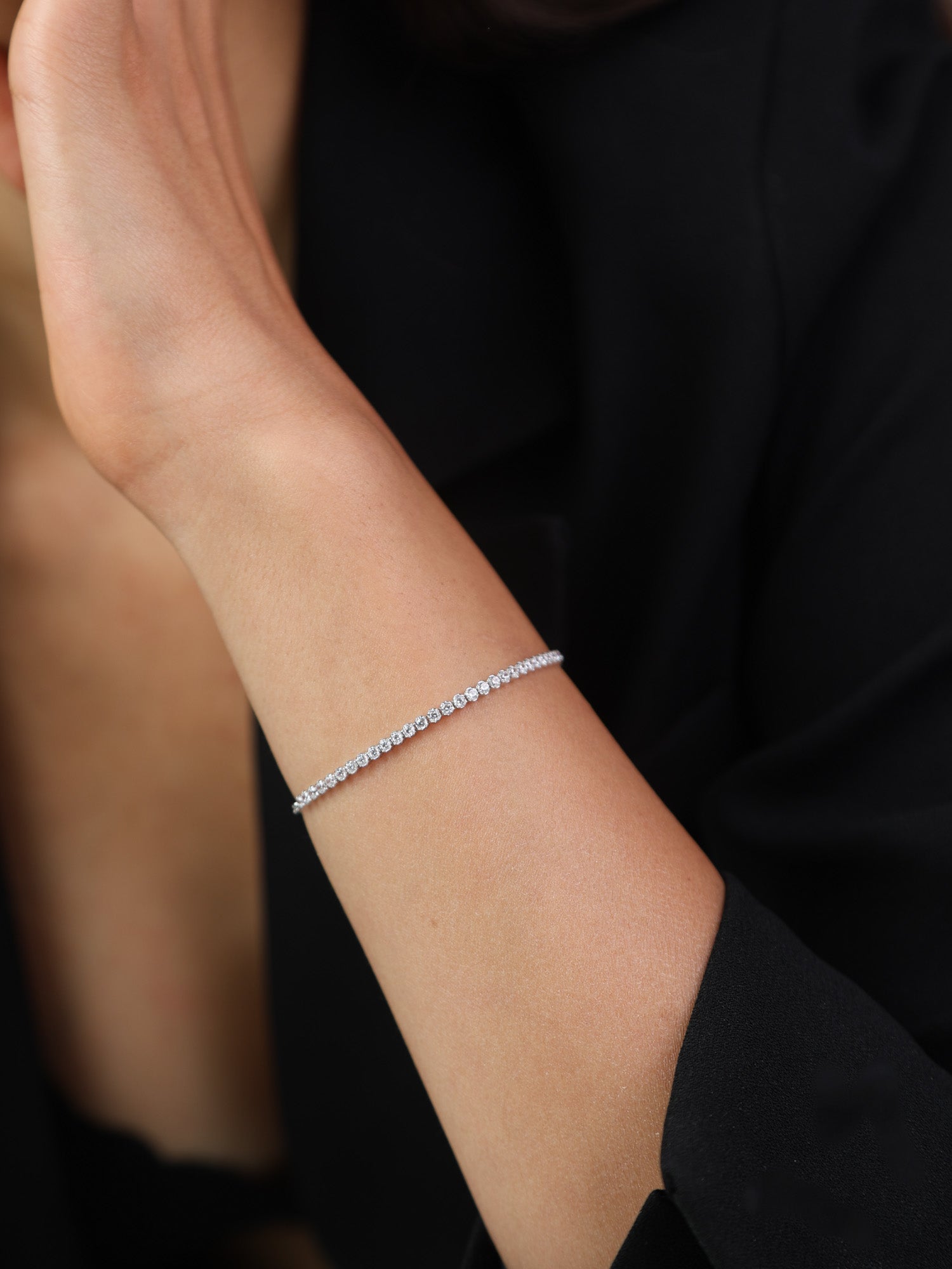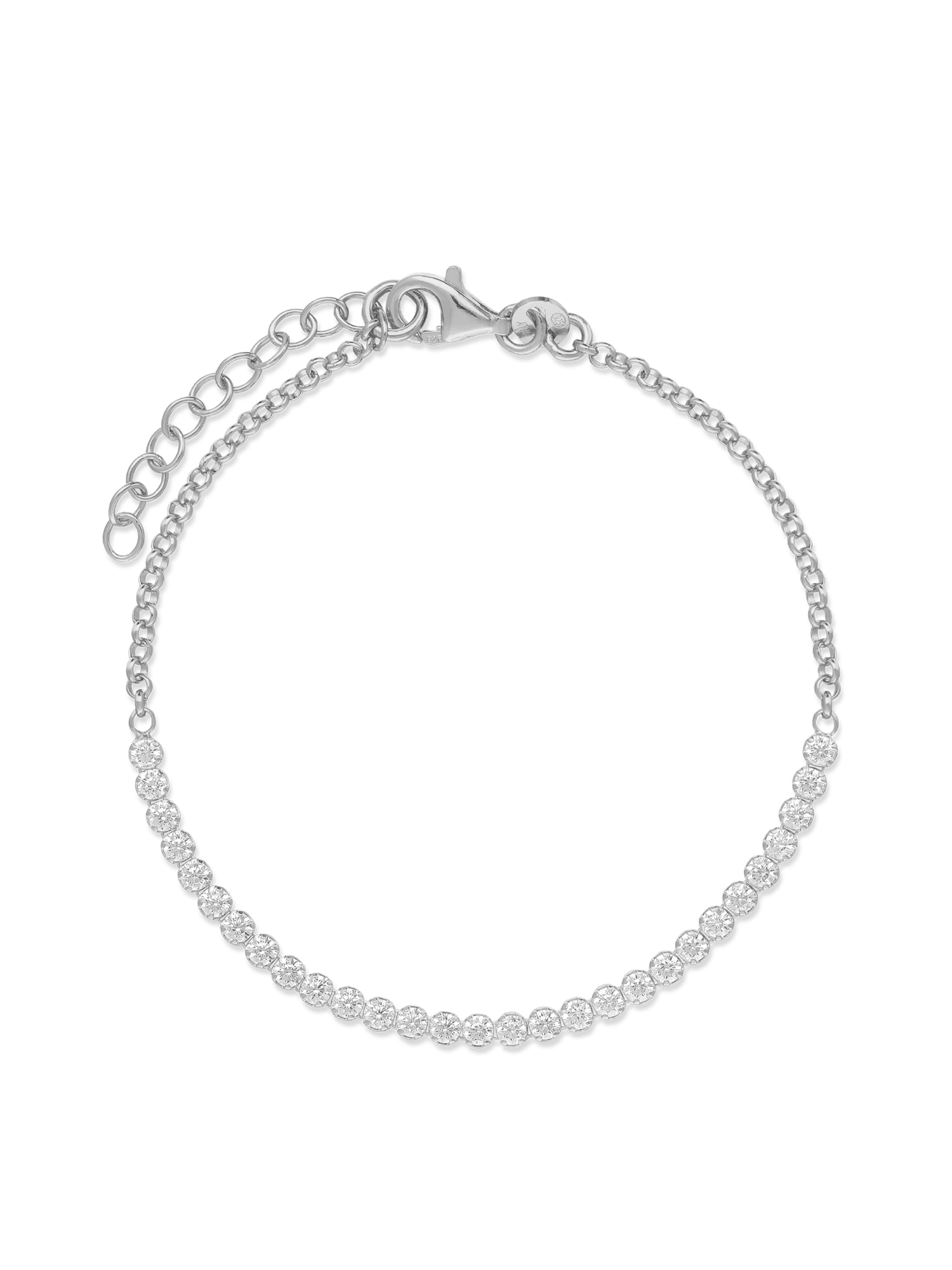 Pulseira Delicada, Prata de lei 925, Zircónia de cultivo, Claro, Círculo, Feito à mão,, Prateado, 2.23 gramas.