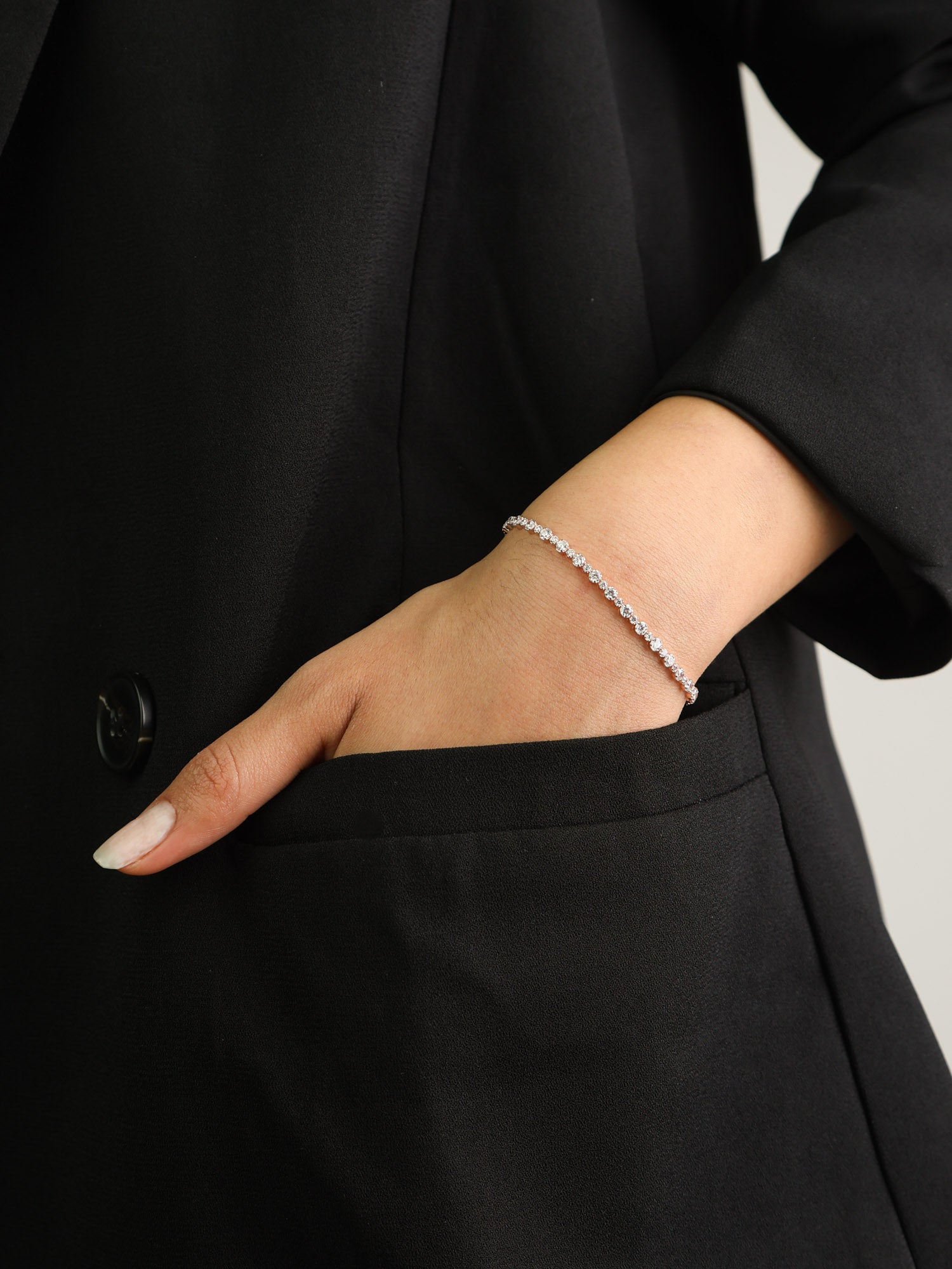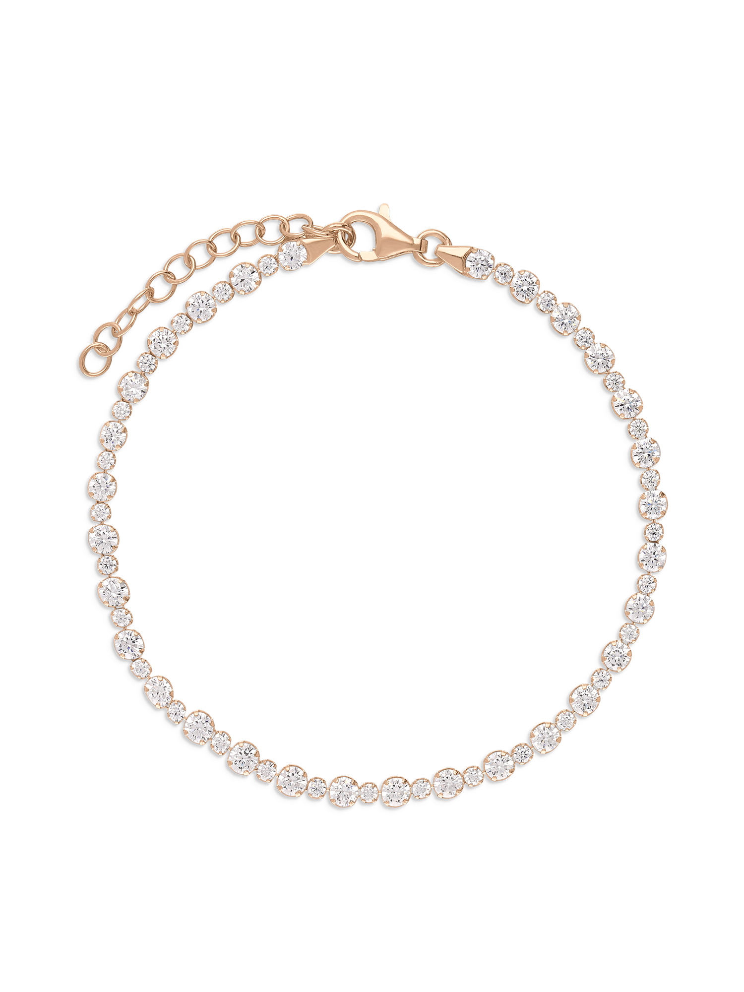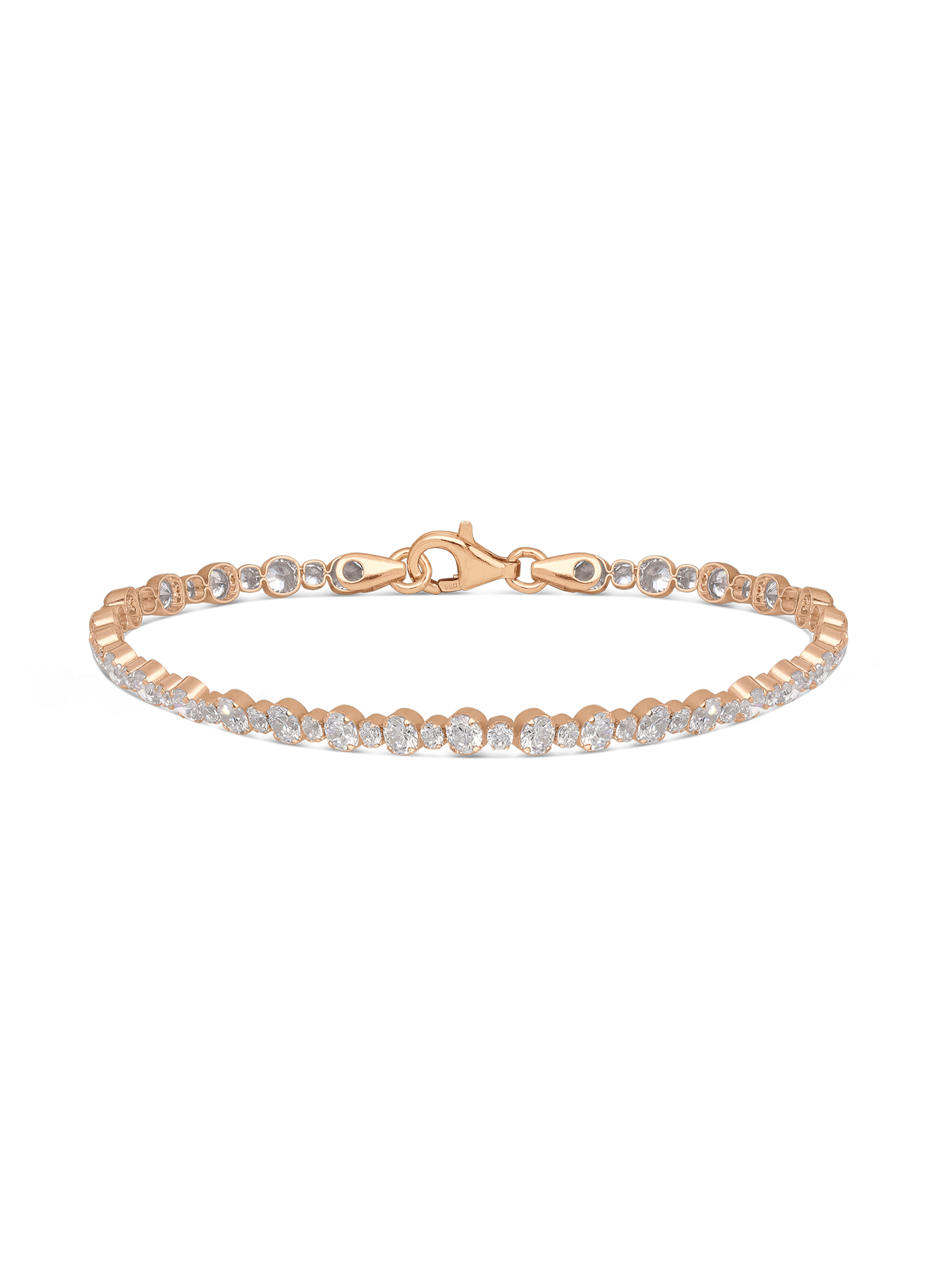Pulseira de tenis, Banhado a ouro rosa, Zircónia de cultivo, Claro, Círculo, Feito à mão, Ouro rosado, 2.91 gramas.