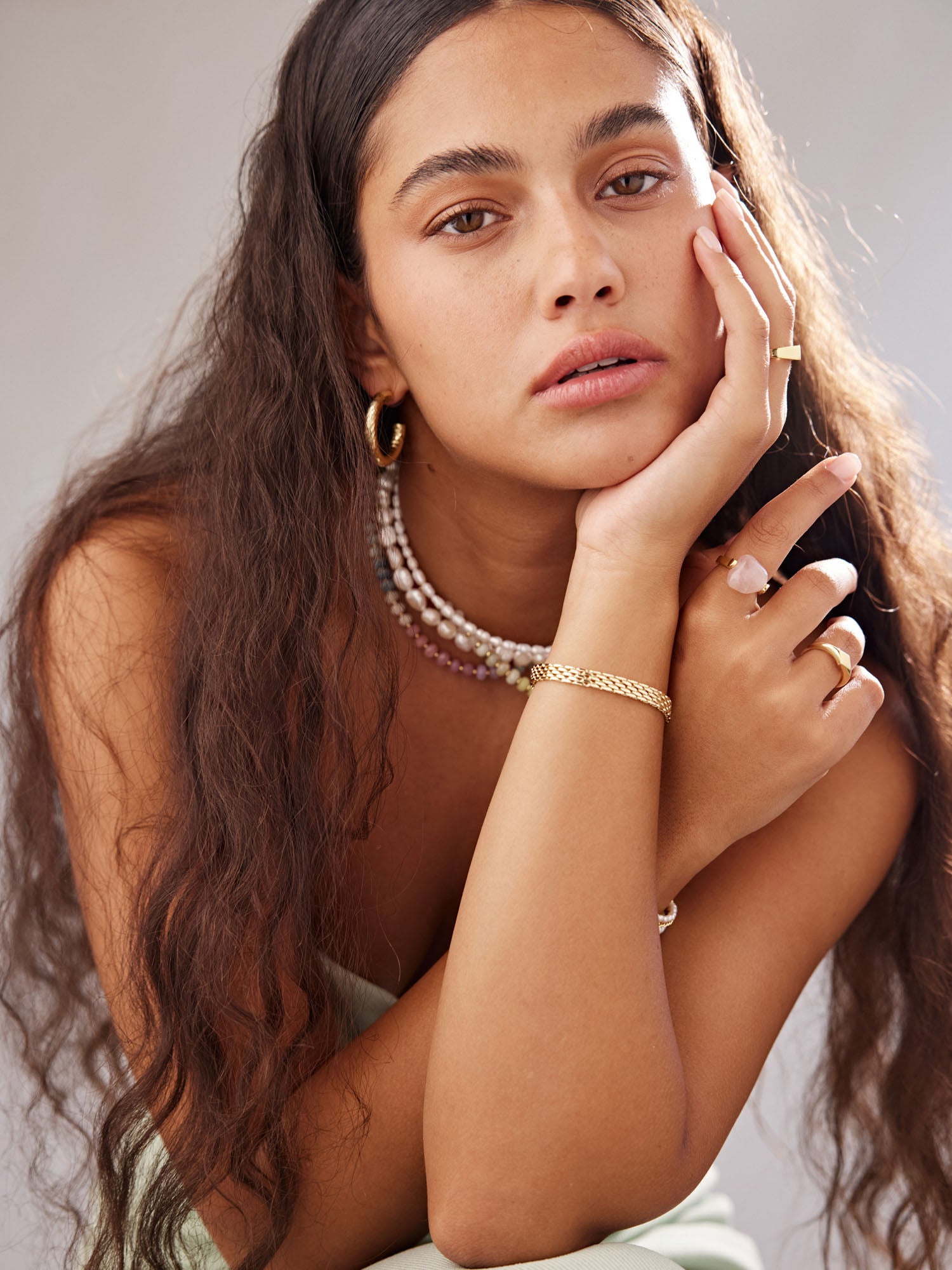Pulseira gourmet em aço inoxidável em banho de ouro