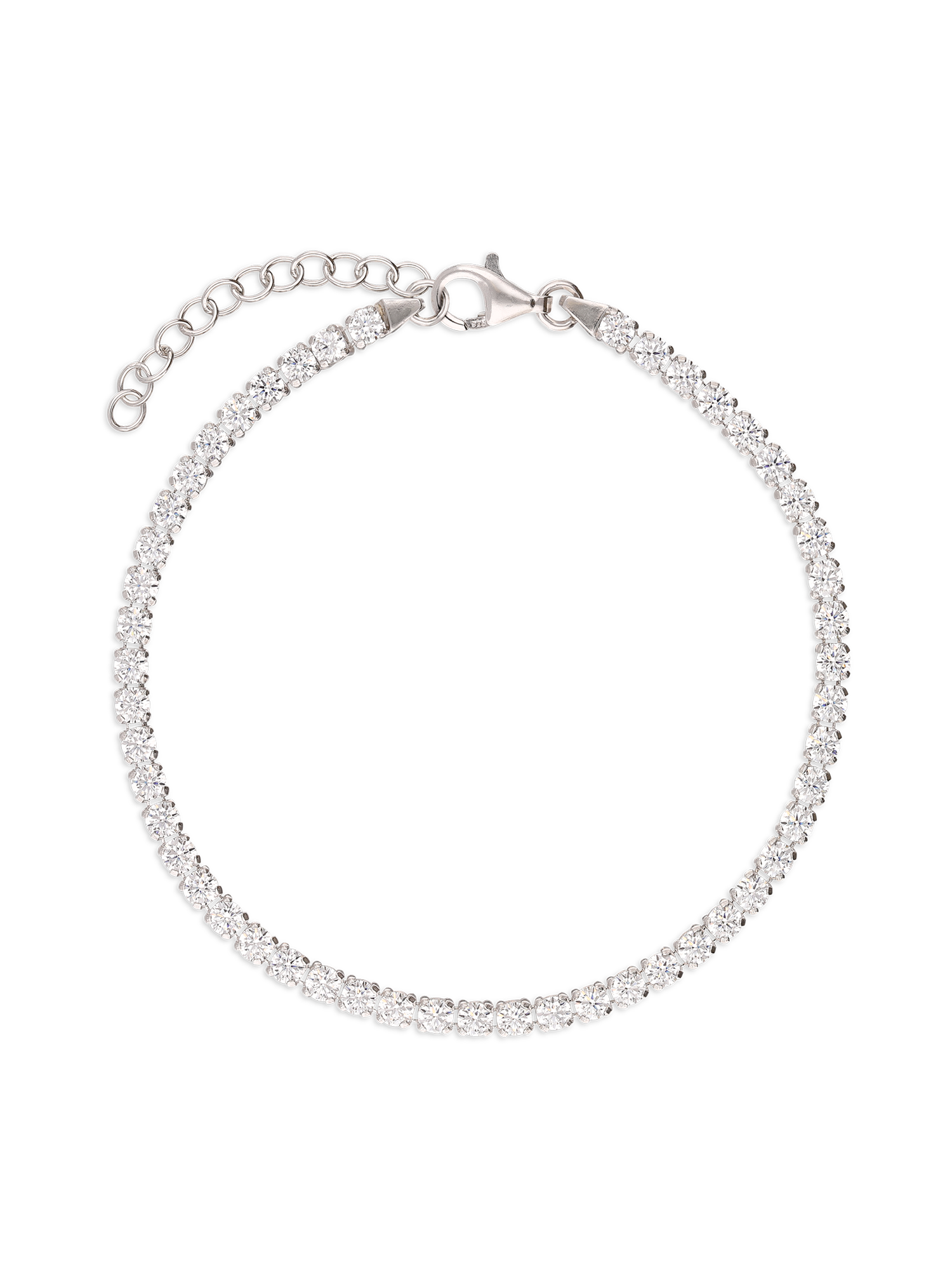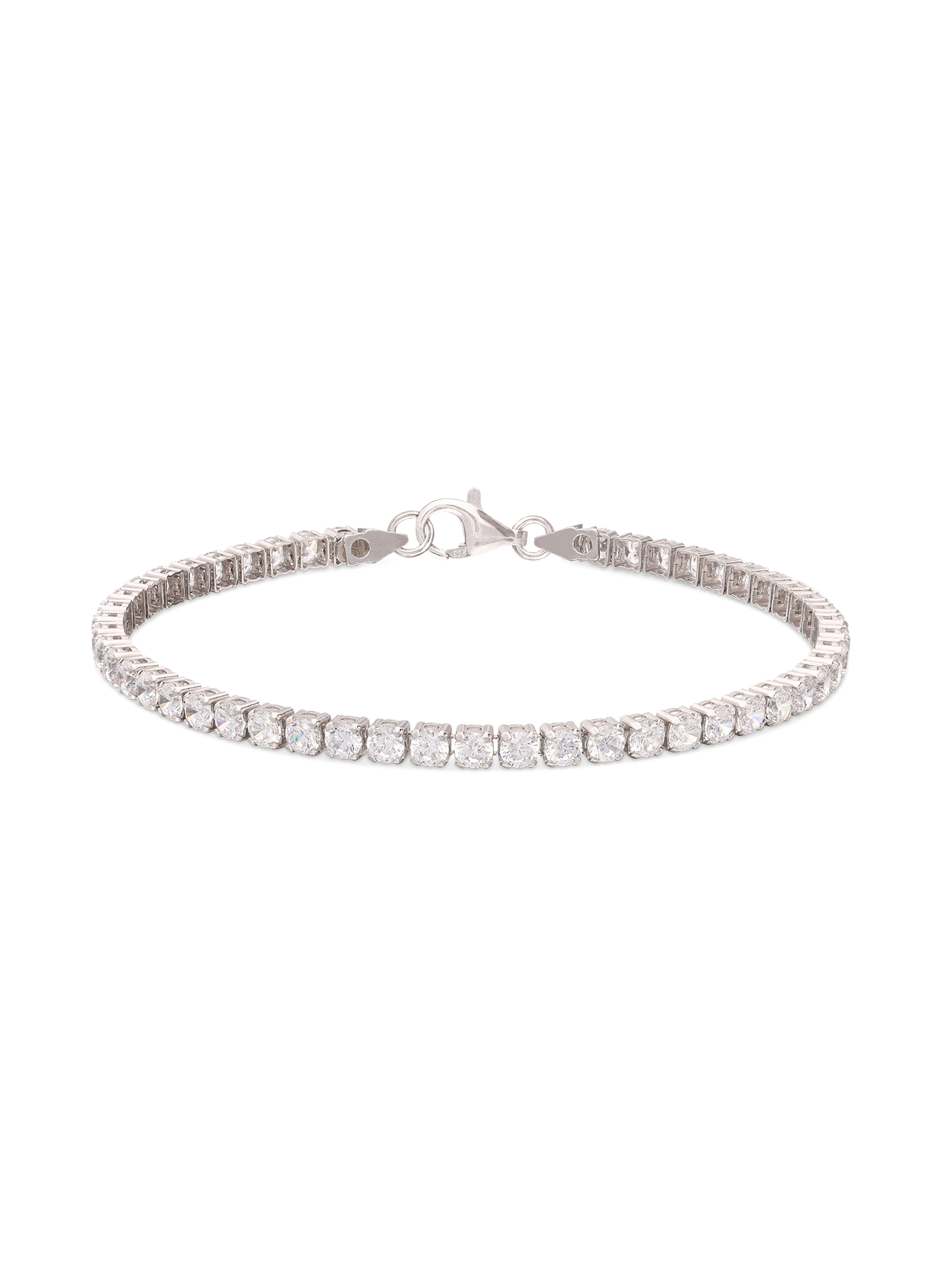 Pulseira de tenis, Prata de lei 925, Zircónia de cultivo, Claro, Círculo, Feito à mão,, Prateado, 4.09 gramas.