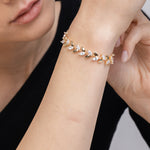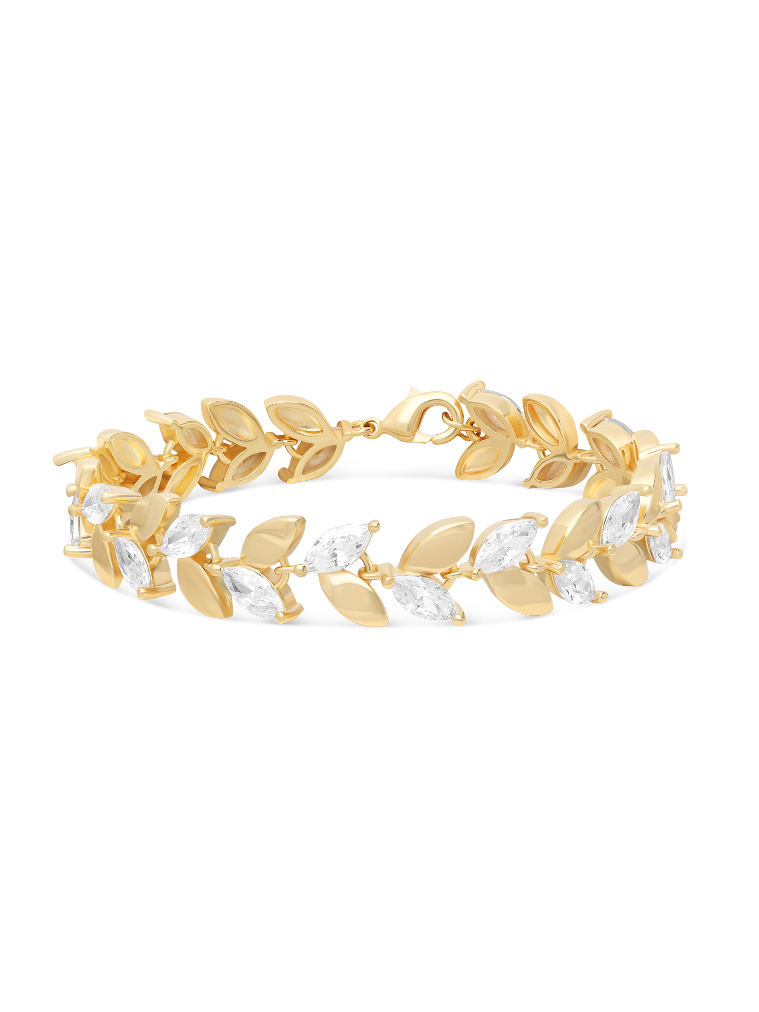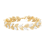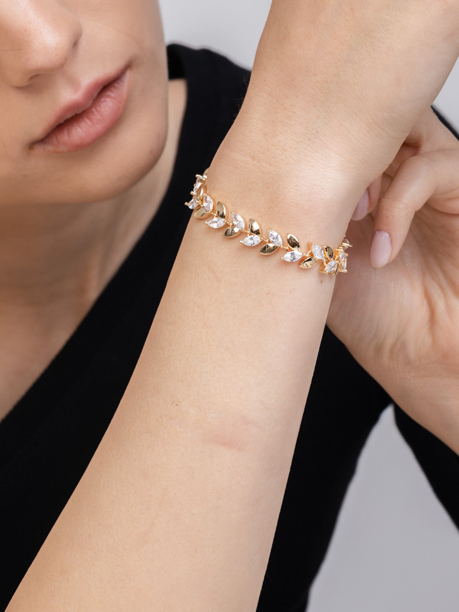 Pulseira Temática, Banhado a Ouro, Zircónia de cultivo, Claro, Folha, Feito à mão,, Dourado, 18.02 gramas.