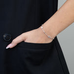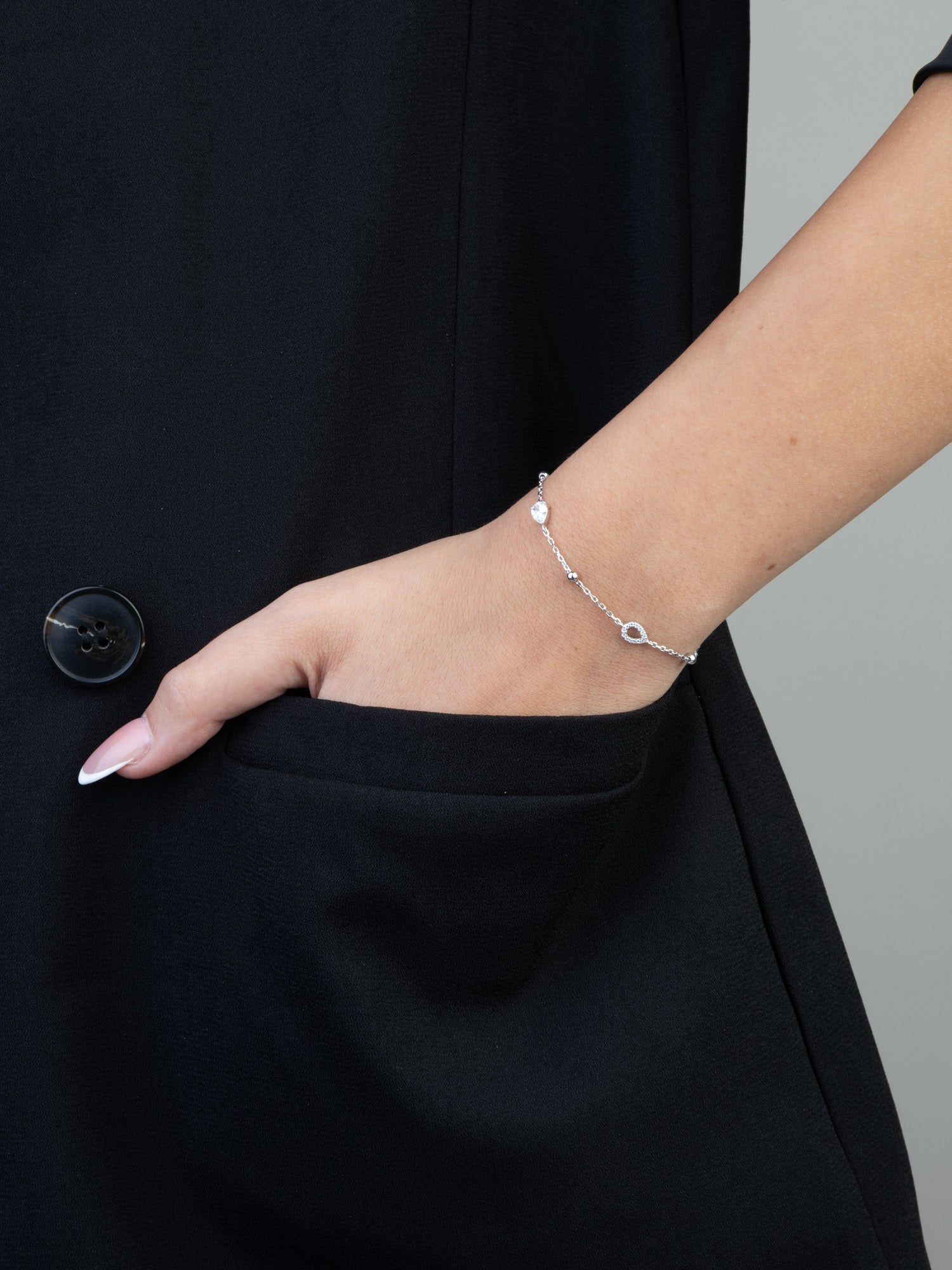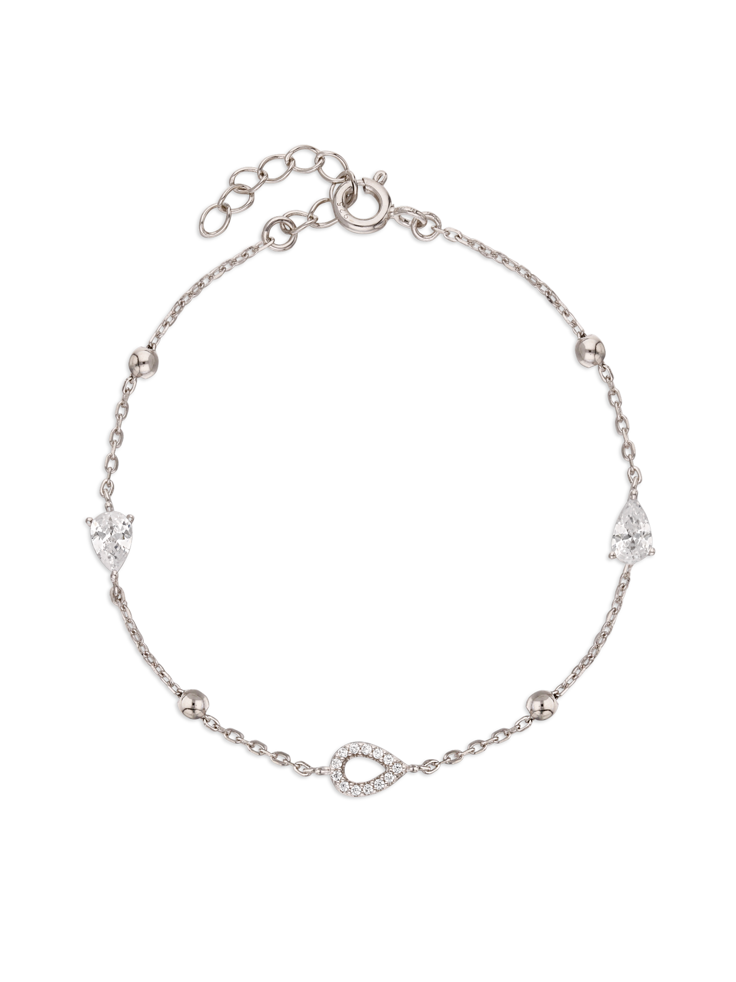 Pulseira Delicada, Prata de lei 925, Zircónia de cultivo, Claro, Lágrima, Círculo, Feito à mão,, Prateado, 2.02 gramas.