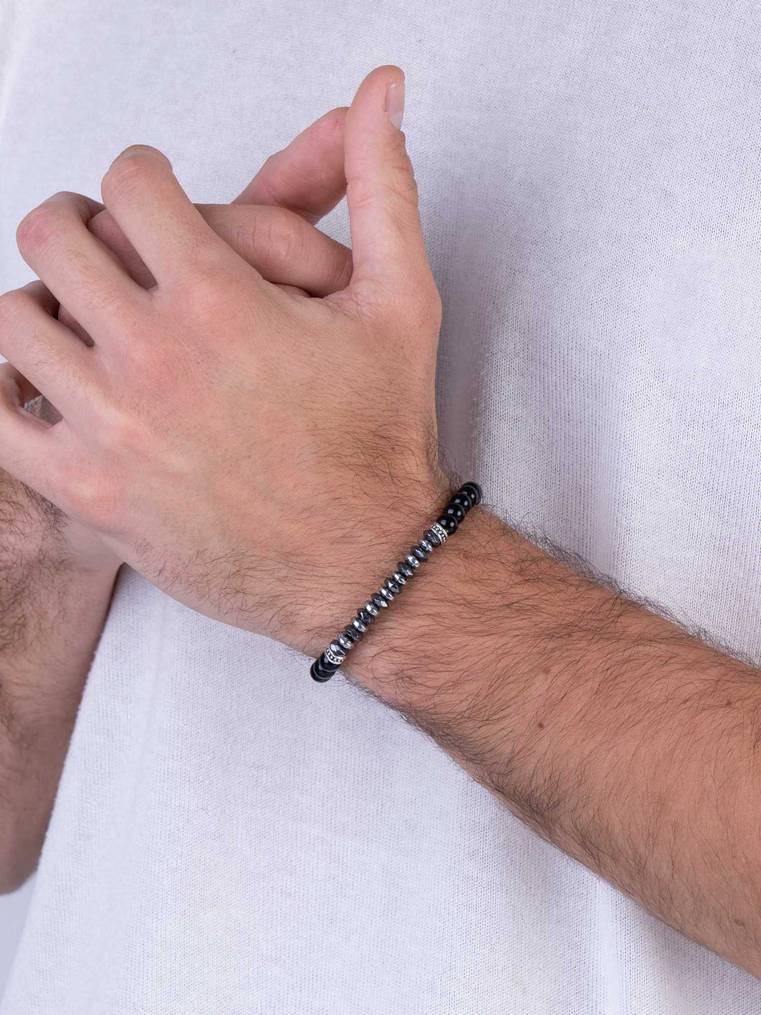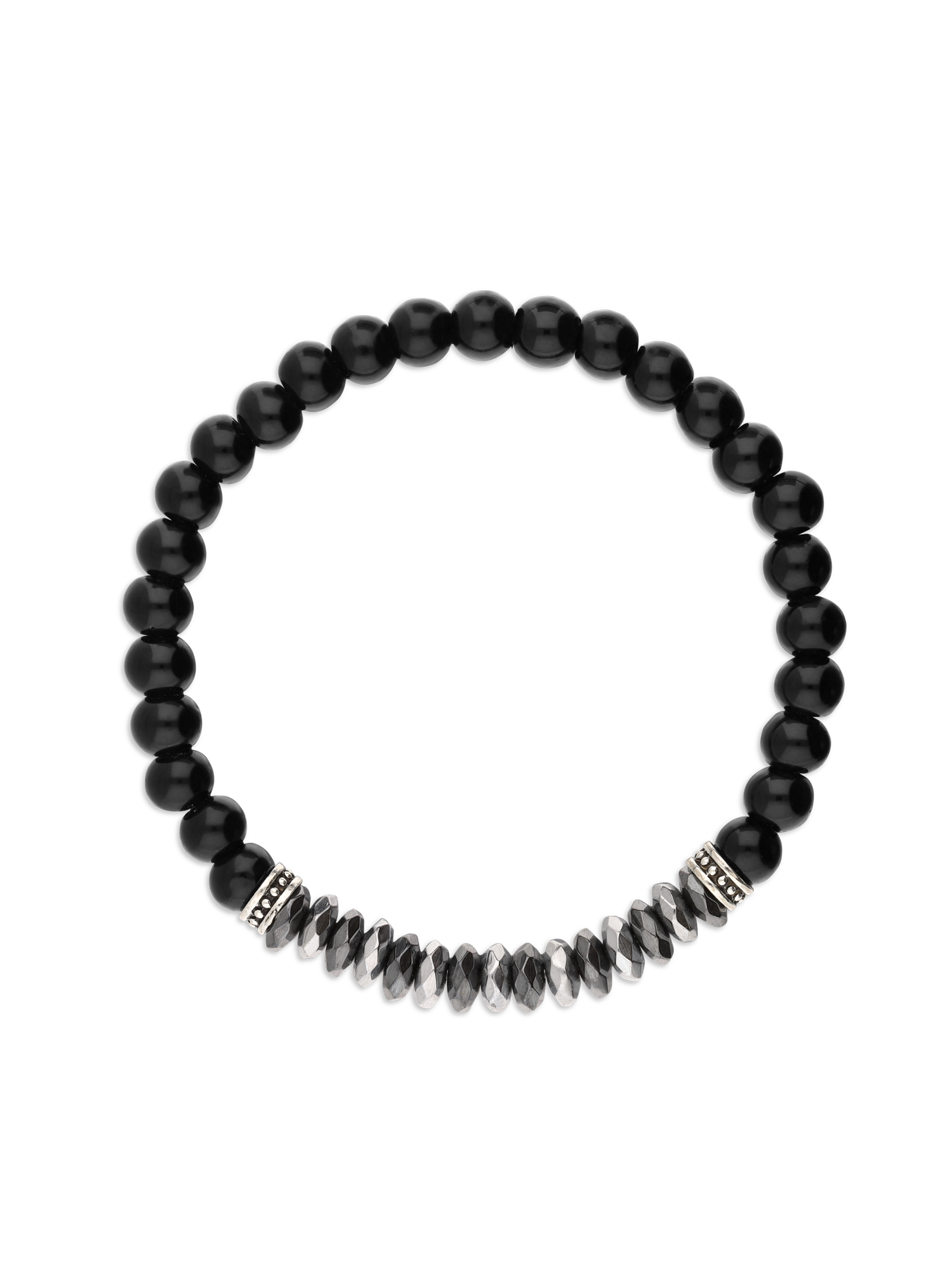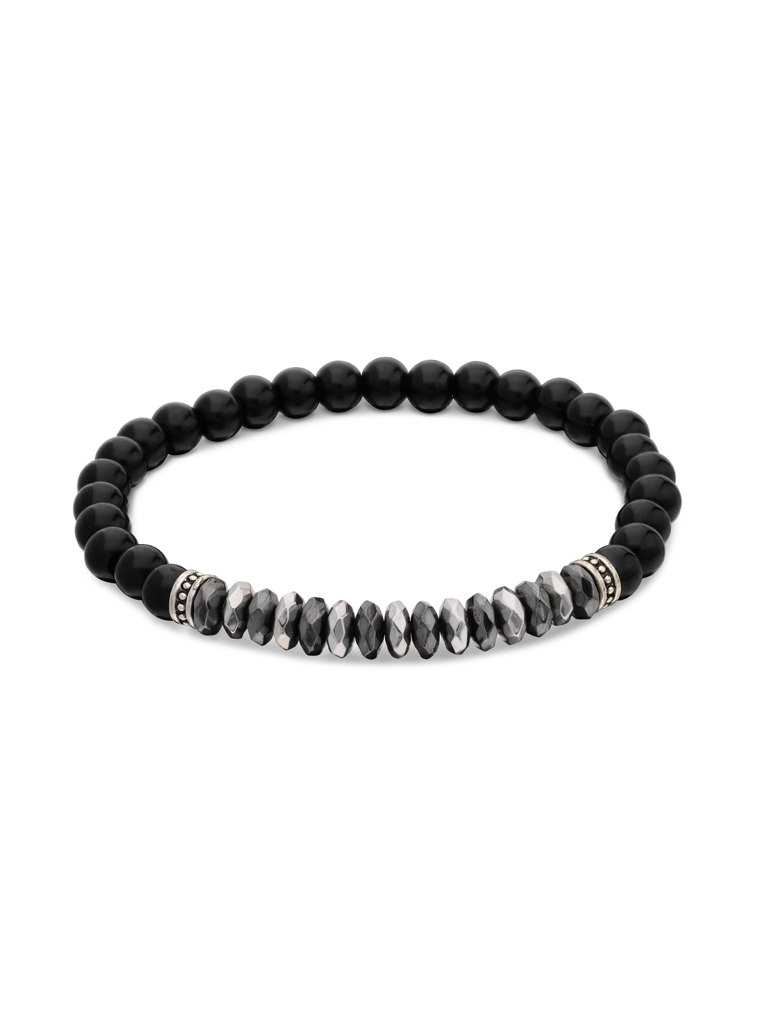 Pulseira masculina em aço inoxidável com ónix e hematite