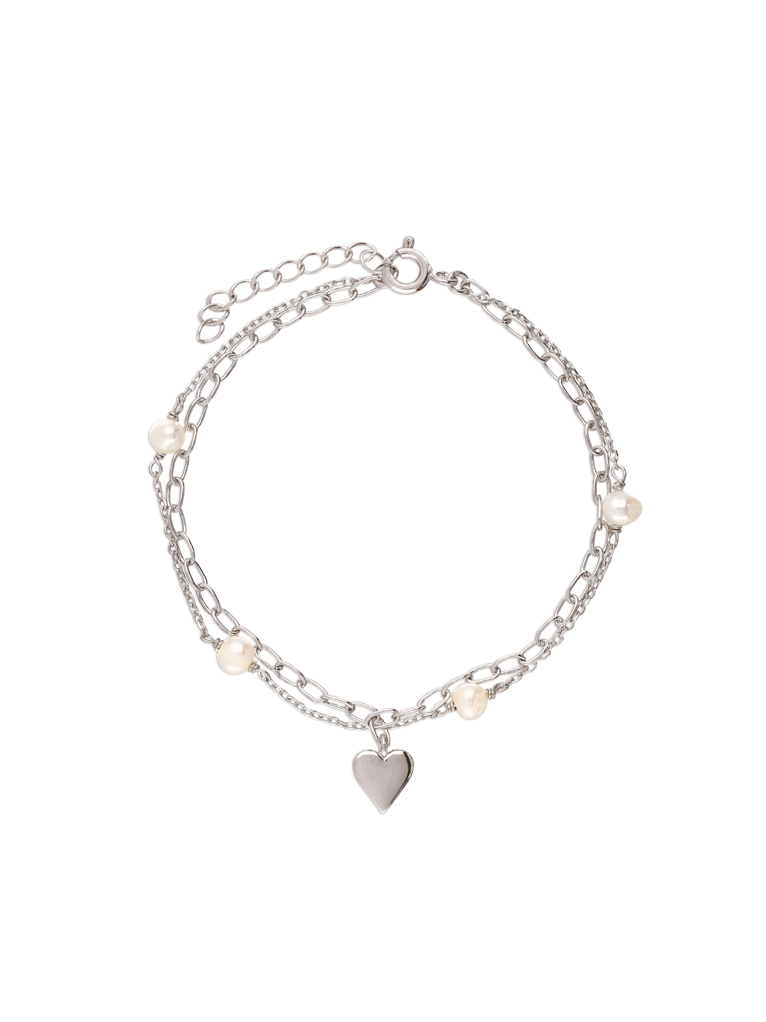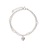 Pulseira Temática, Prata de lei 925, Pérola cultivada, Branco, Coração,, Prateado, 2.47 gramas.