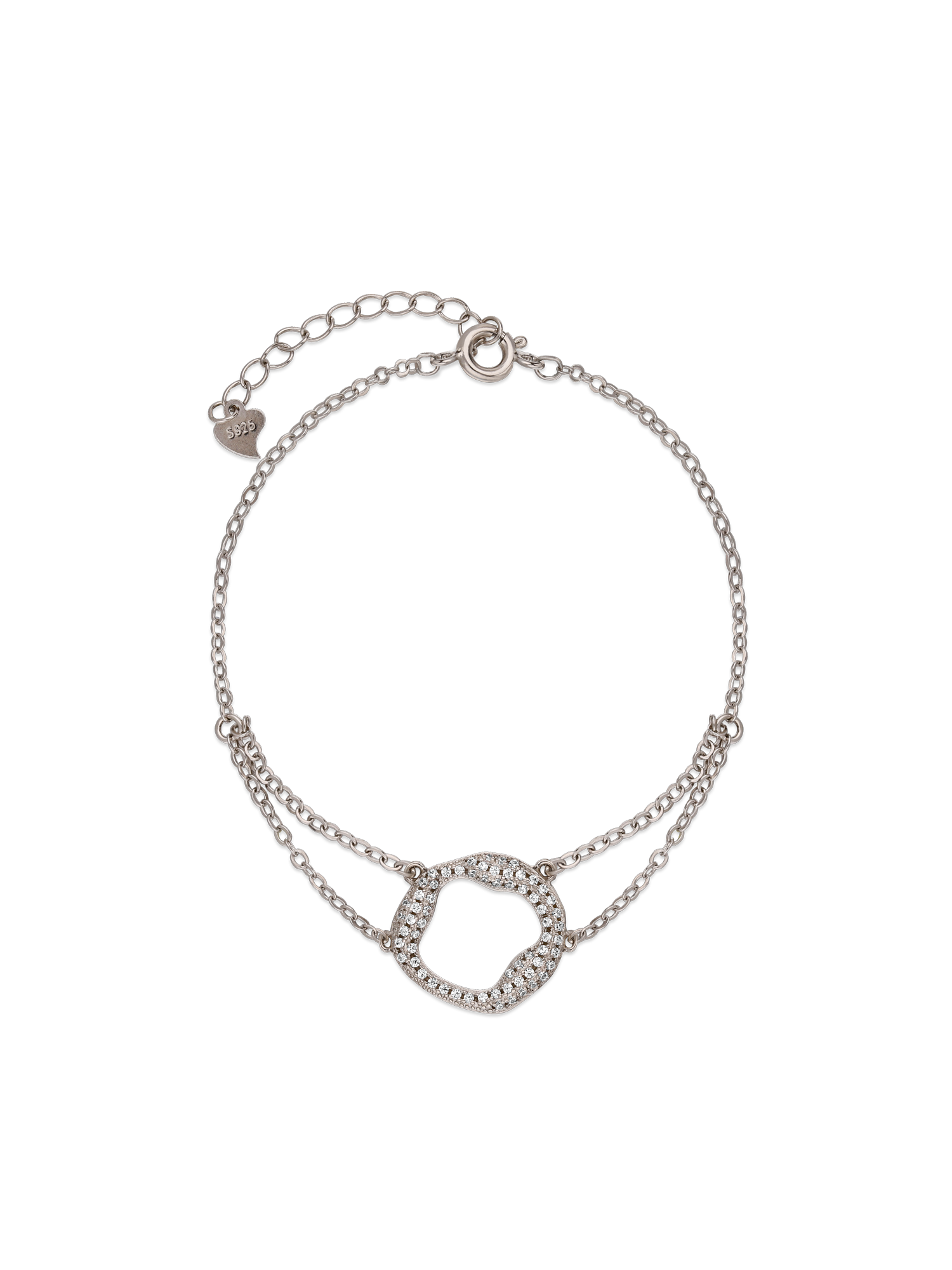 Pulseira Delicada, Prata de lei 925, Zircónia de cultivo, Claro, Círculo, Feito à mão,, Prateado, 2.50 gramas.