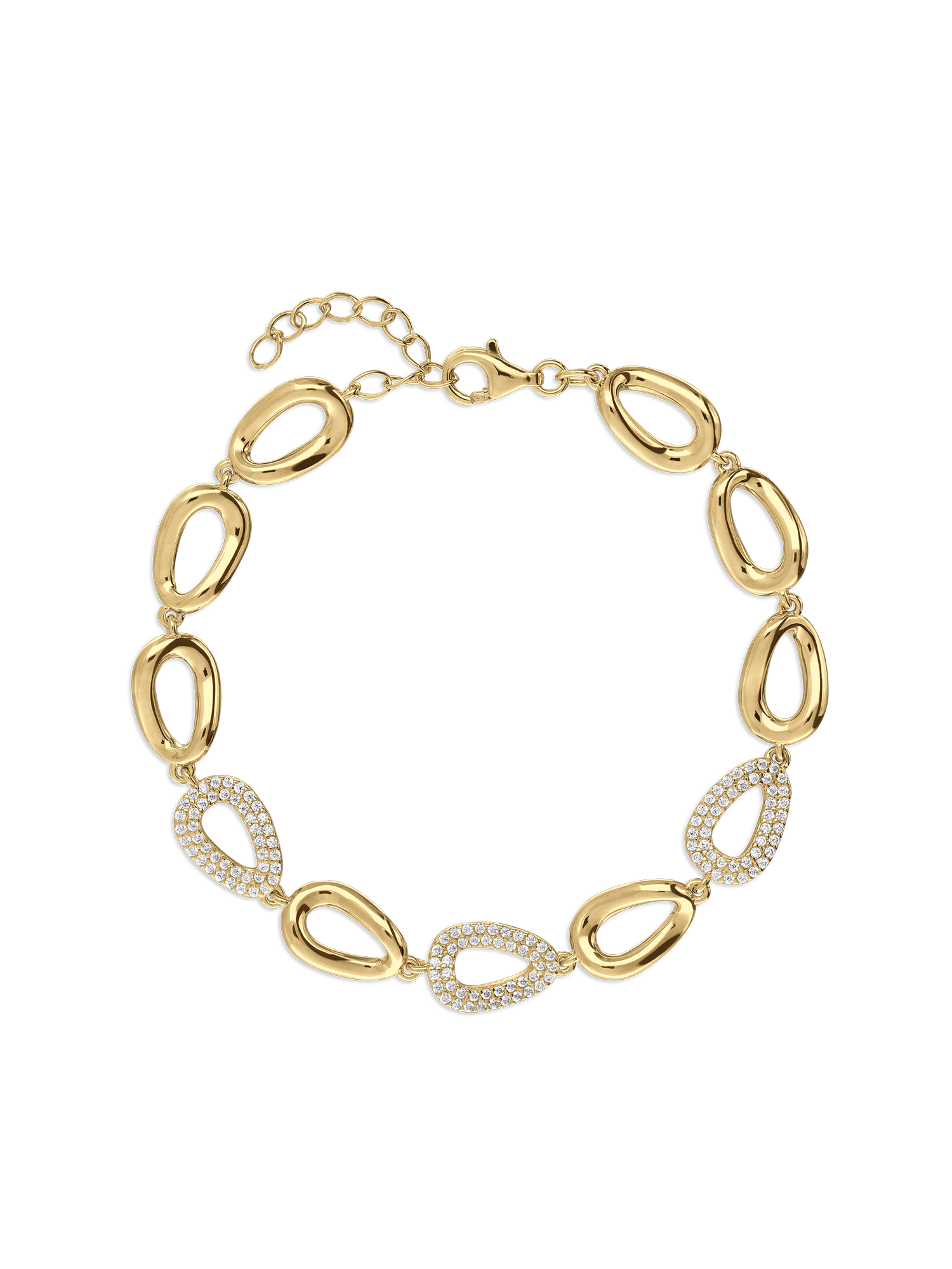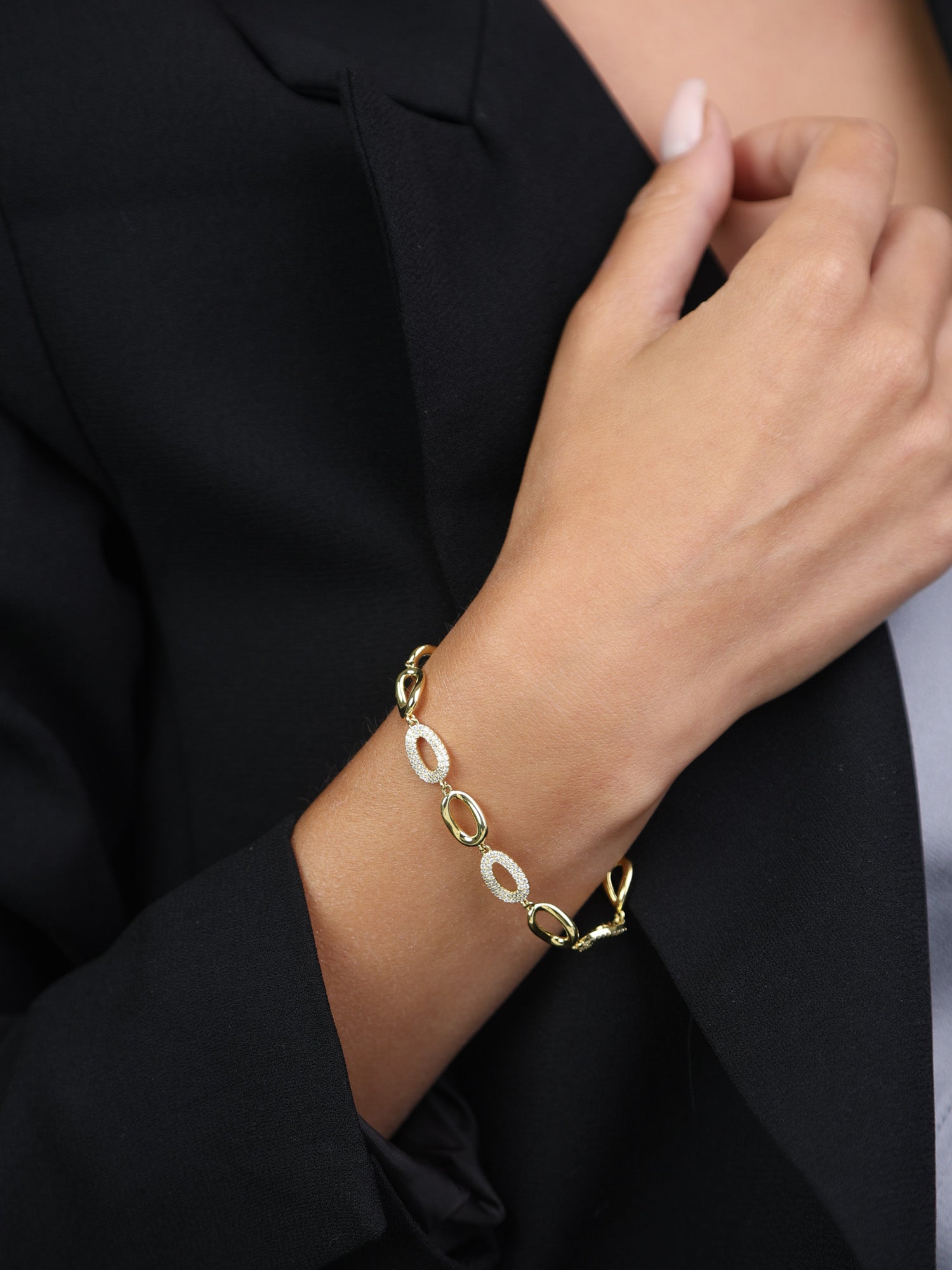 Pulseira Temática, Banhado a Ouro, Zircónia de cultivo, Claro, Círculo, Feito à mão, Dourado, 8.87 gramas.