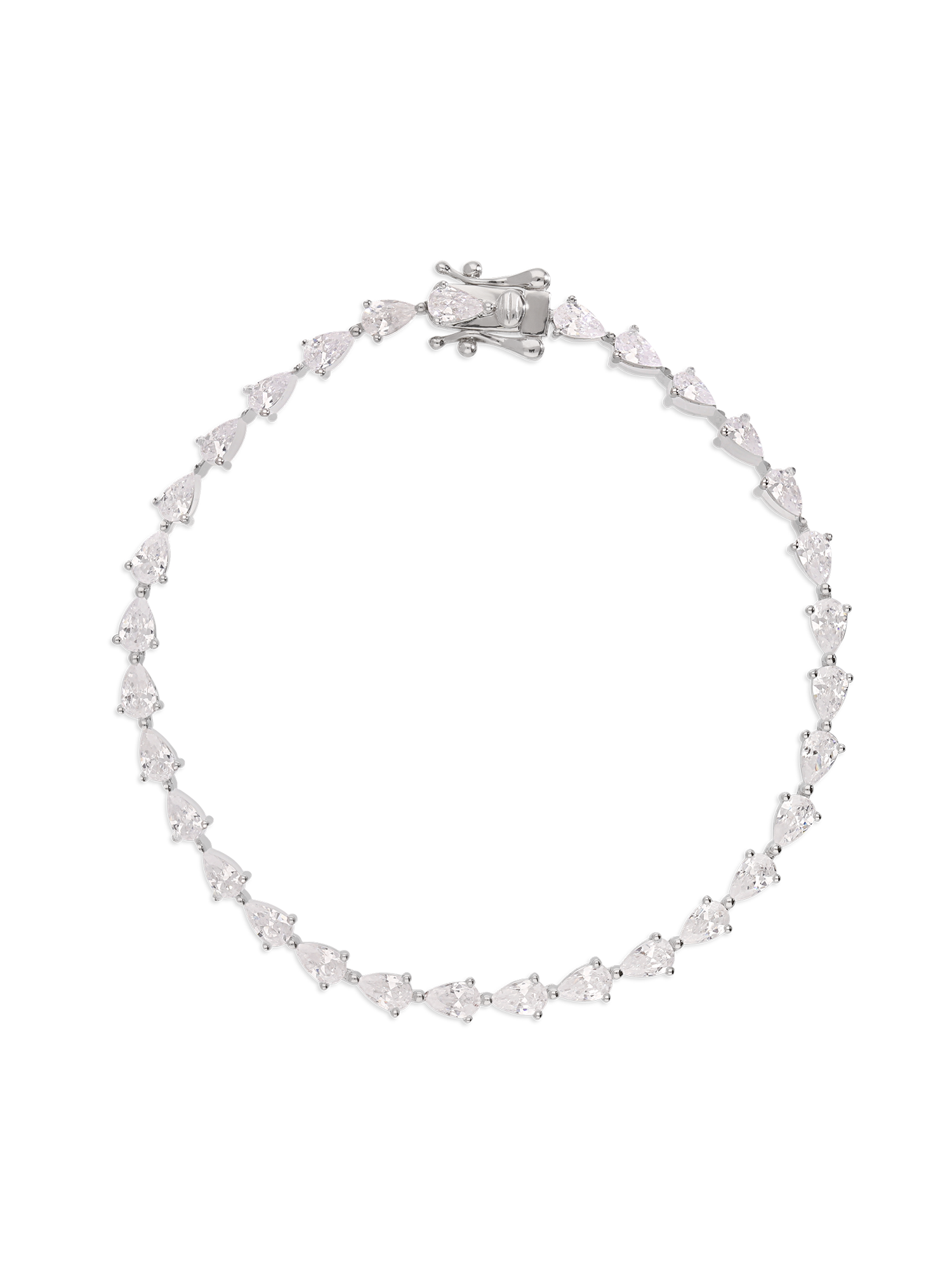 Pulseira Temática, Prata de lei 925, Zircónia de cultivo, Claro, Lágrima, Feito à mão,, Prateado, 7.79 gramas.