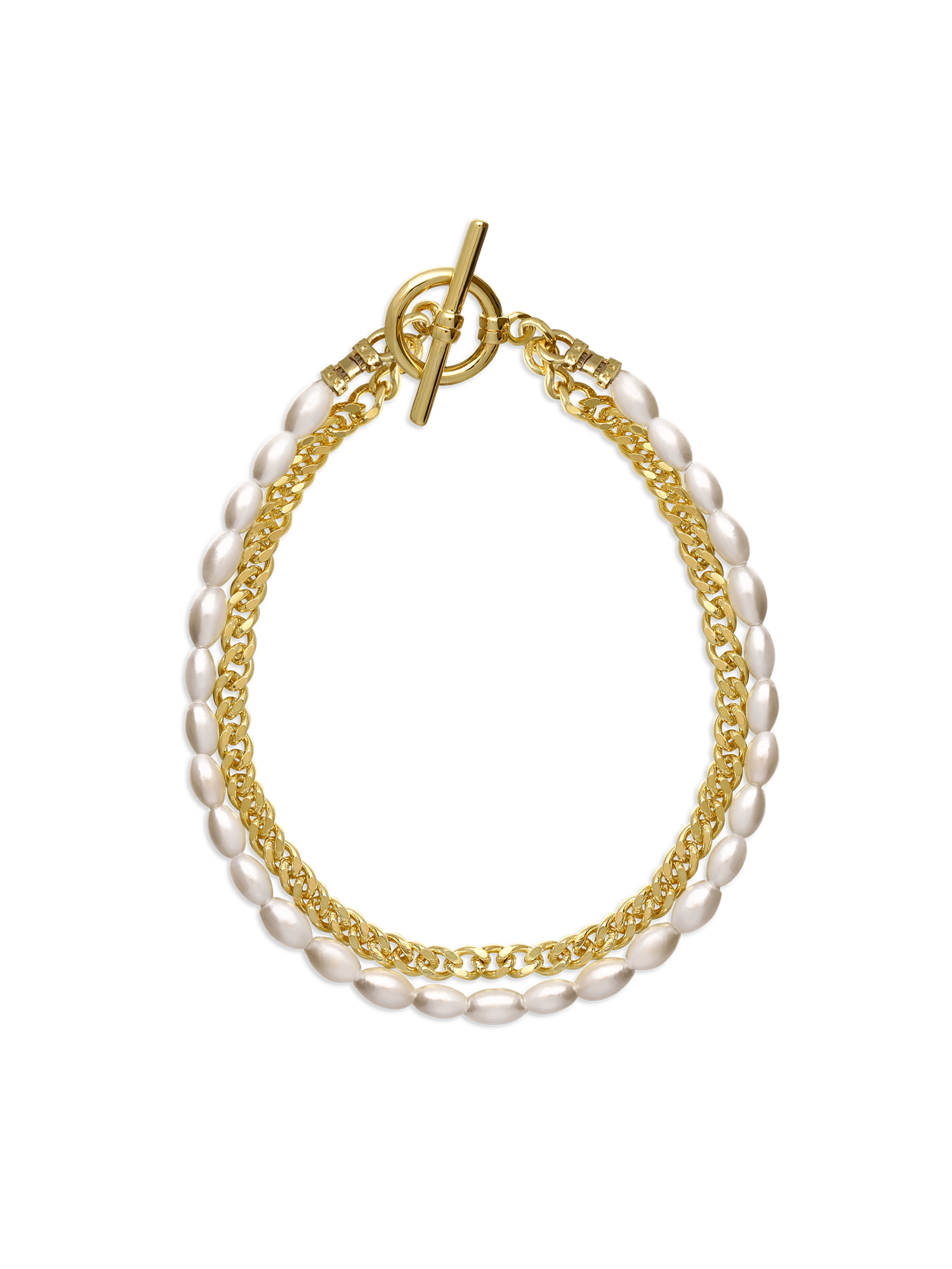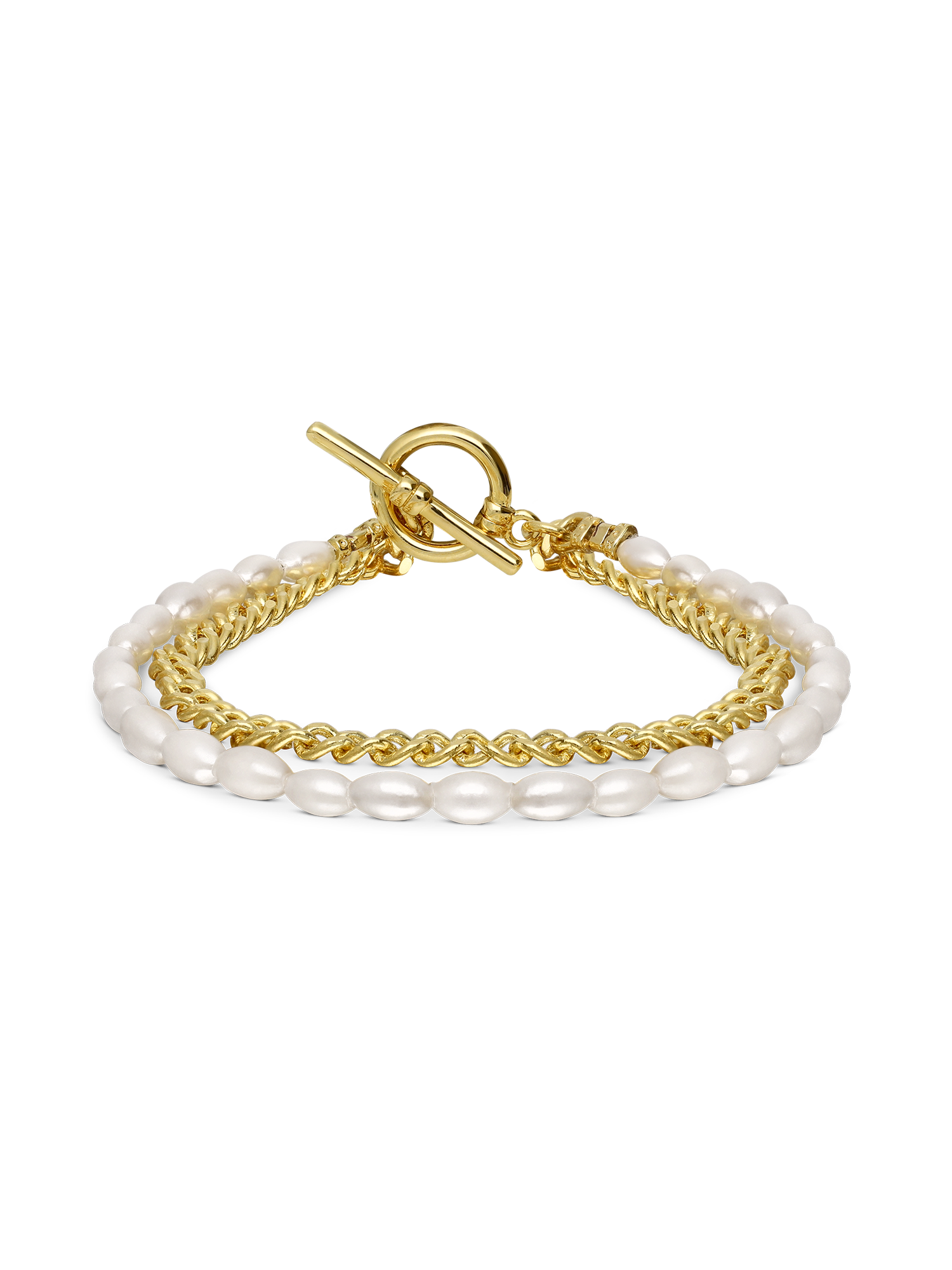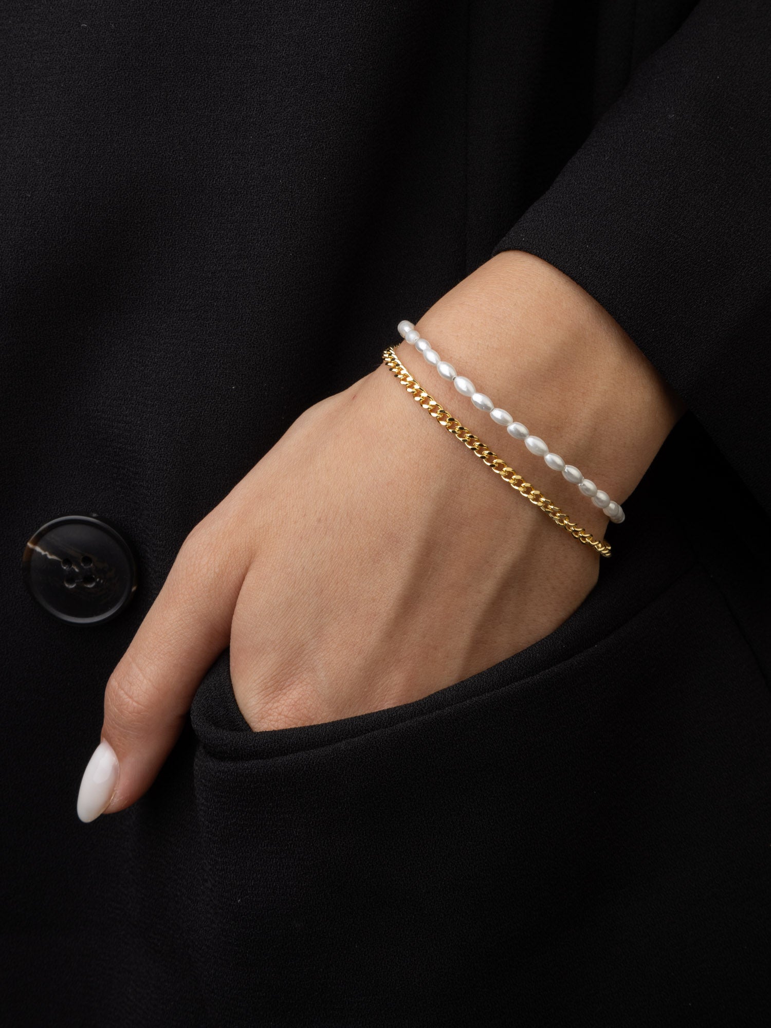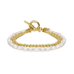 Pulseira de pedra, Banhado a Ouro, Madrepérola de cultivo, Branco, Círculo, Feito à mão,,, Dourado, 6.06 gramas.