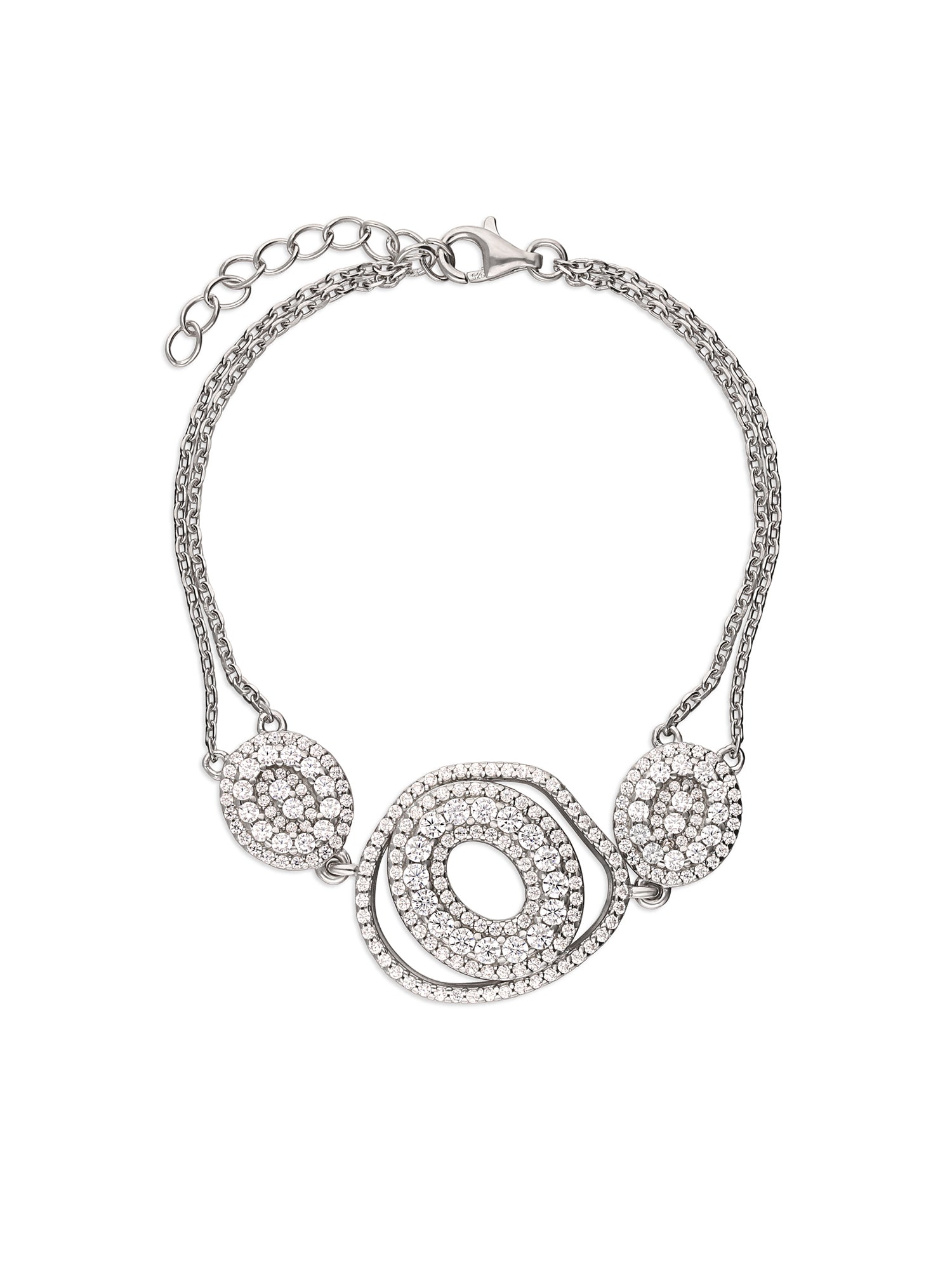 Pulseira Delicada, Prata de lei 925, Zircónia de cultivo, Claro, Círculo, Feito à mão,, Prateado, 7.88 gramas.