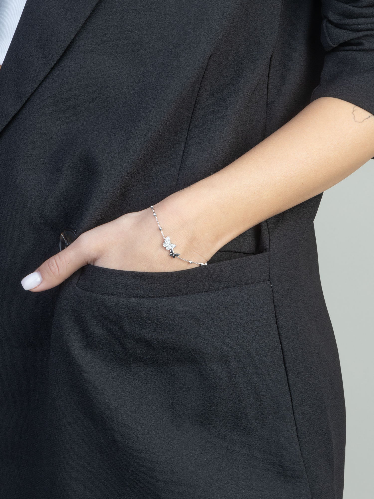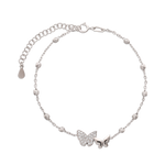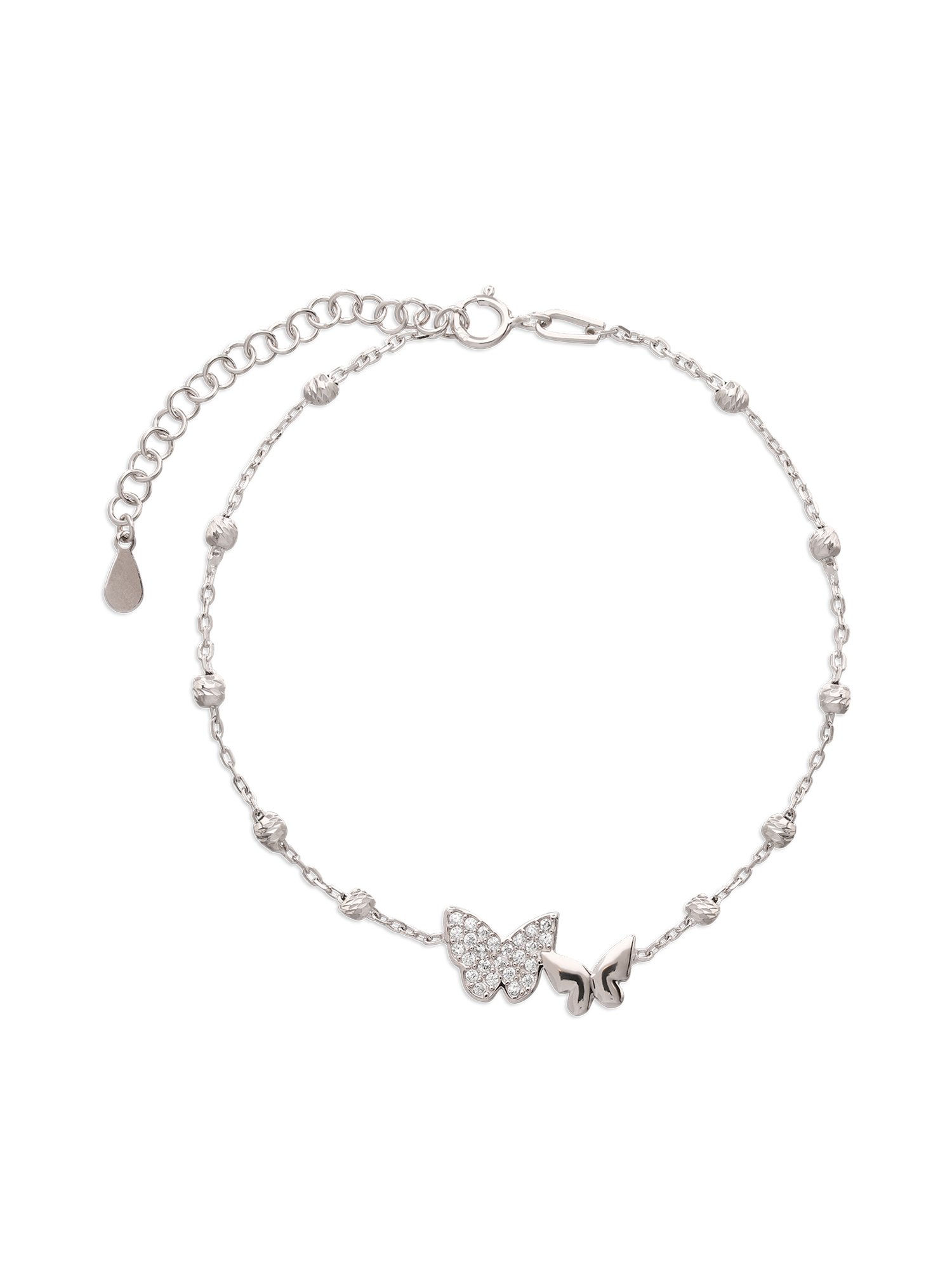 Pulseira Delicada, Prata de lei 925, Zircónia de cultivo, Claro, Círculo, Borboleta, Feito à mão,, Prateado, 1.85 gramas.