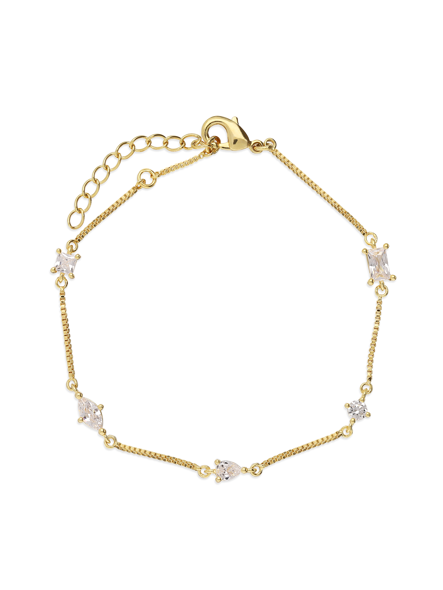 Pulseira Delicada, Banhado a Ouro, Zircónia de cultivo, Claro, Variedade de formas, Feito à mão,, Dourado, 1.99 gramas.