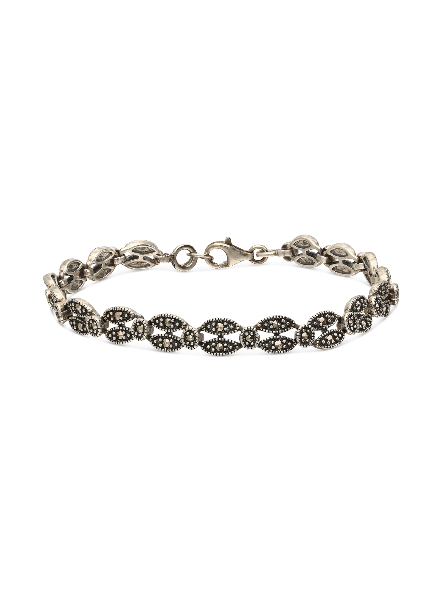 Pulseira Temática, Prata de lei 925, Marcassita de cultivo, Cinzento, Círculo, Feito à mão, Prateado, 10.23 gramas.