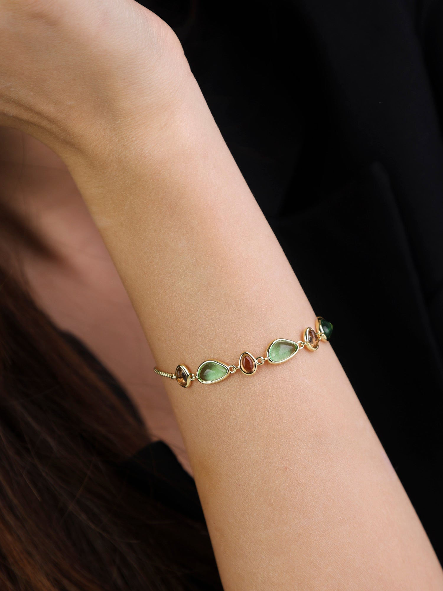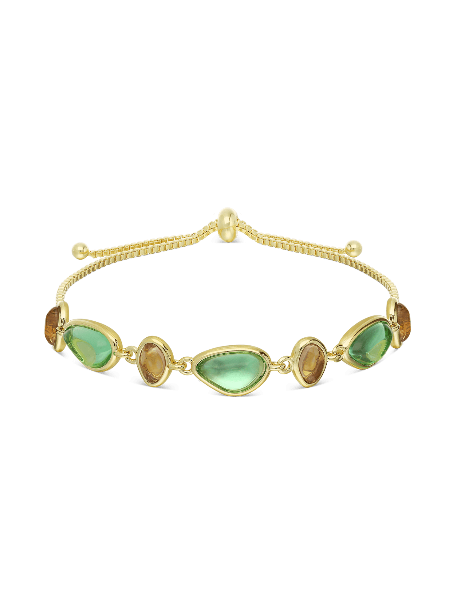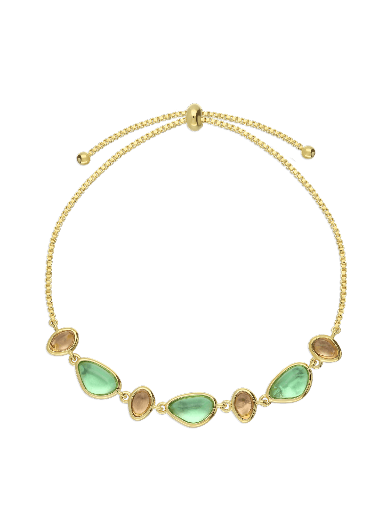 Pulseira delicada banhada a ouro com vidro cristal verde