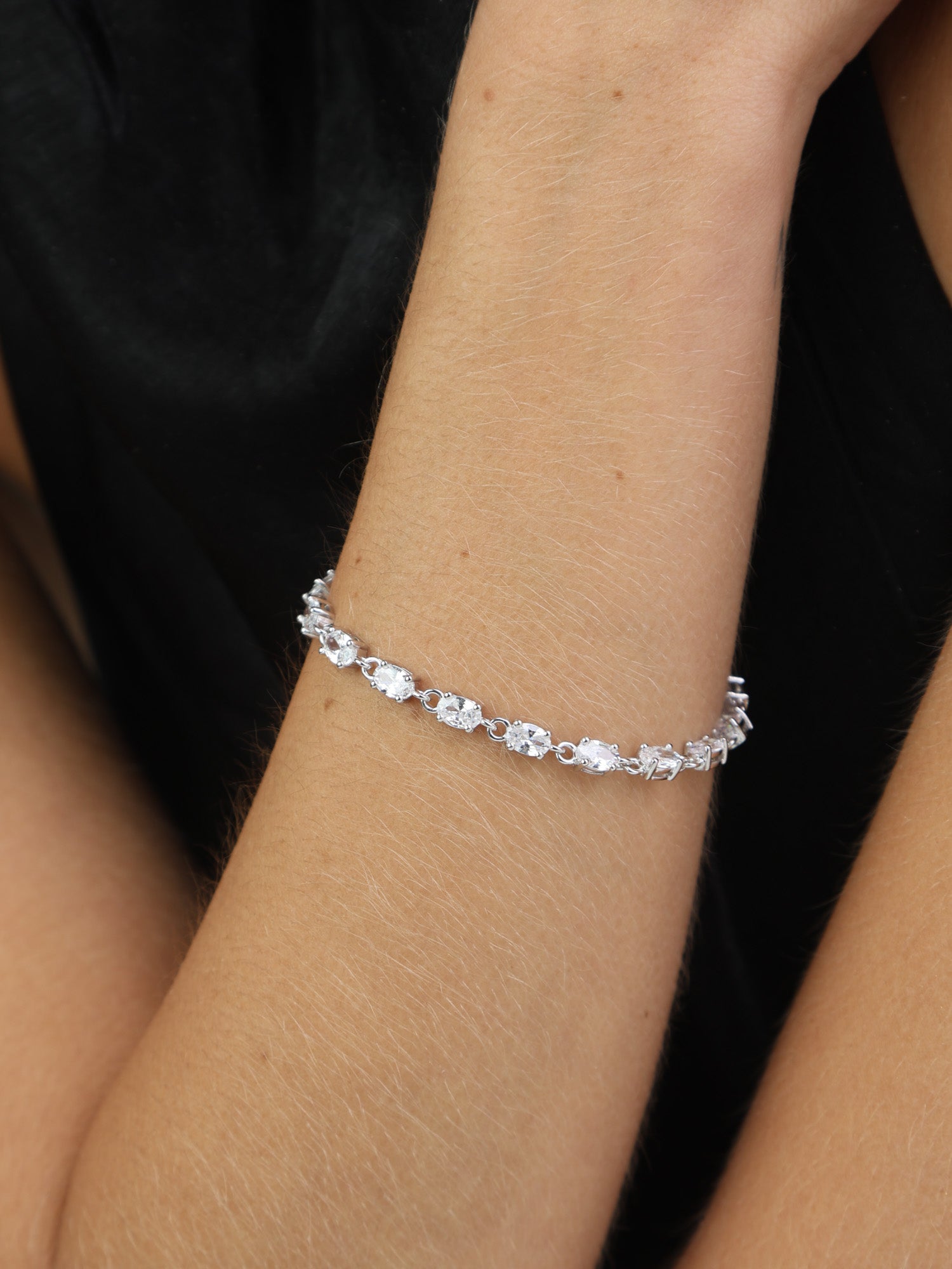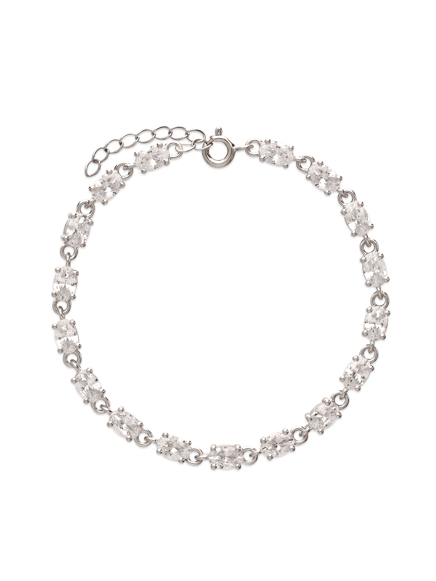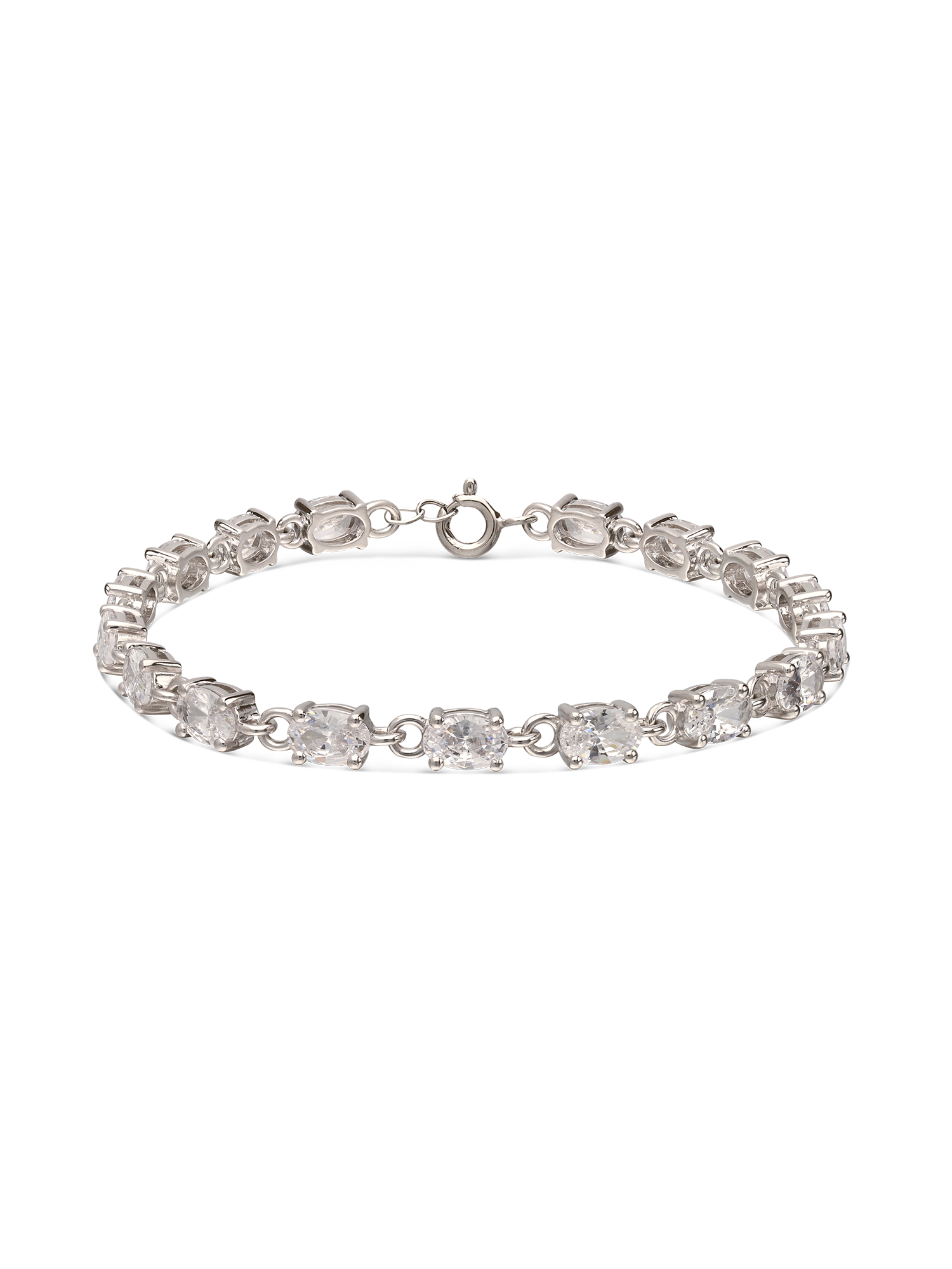 Pulseira Temática, Prata de lei 925, Zircónia de cultivo, Claro, Círculo, Feito à mão, Prateado, 7.80 gramas.