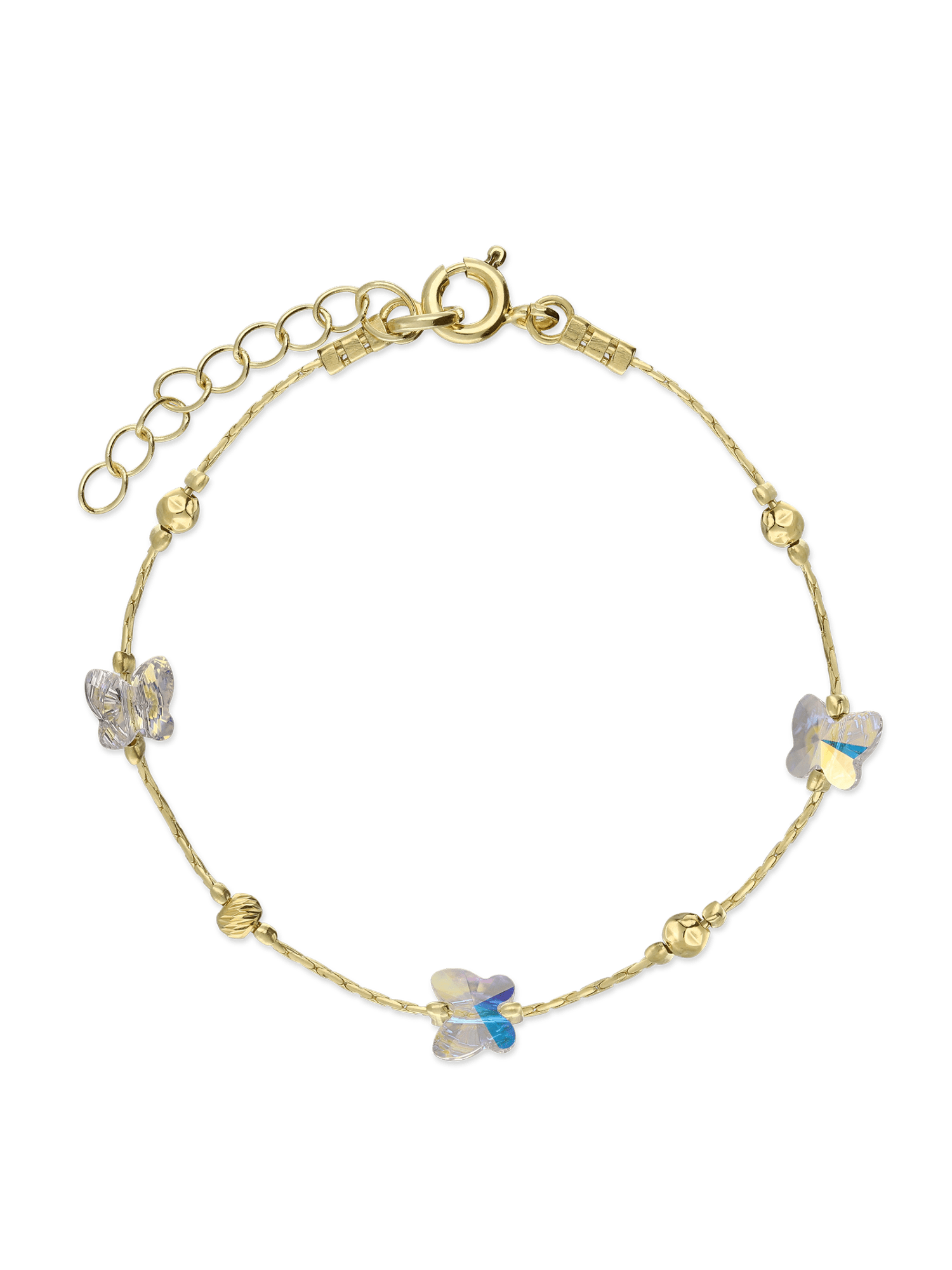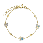 Pulseira Delicada, Banhado a Ouro, Vidro cristal, Claro, Círculo, Borboleta, Feito à mão, Dourado, 1.80 gramas.