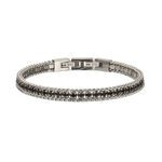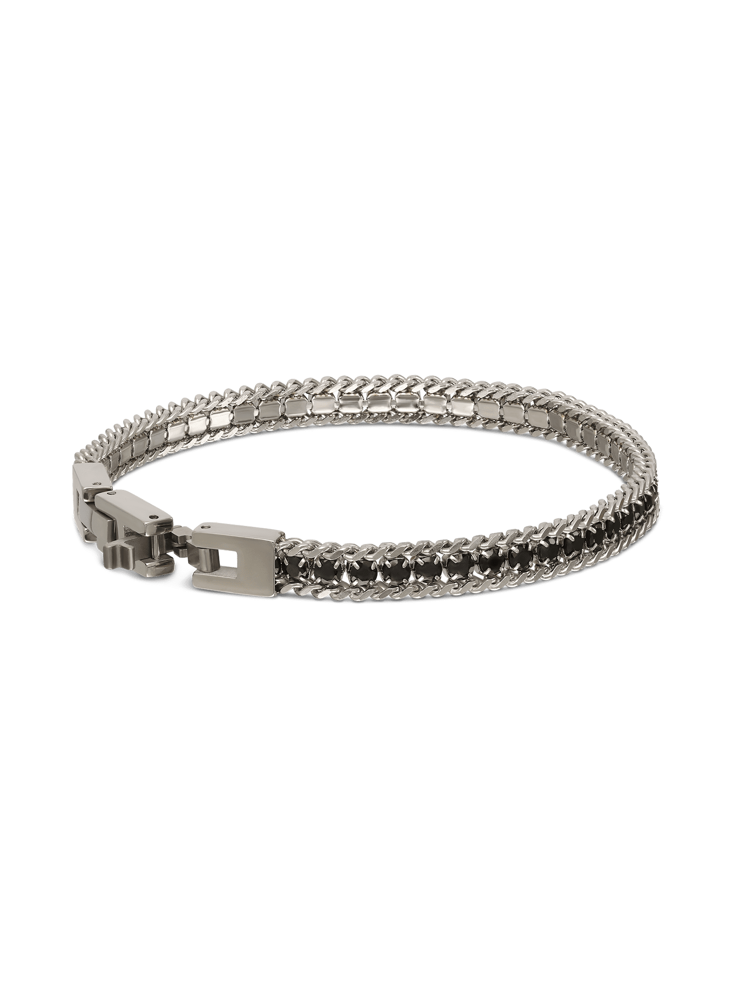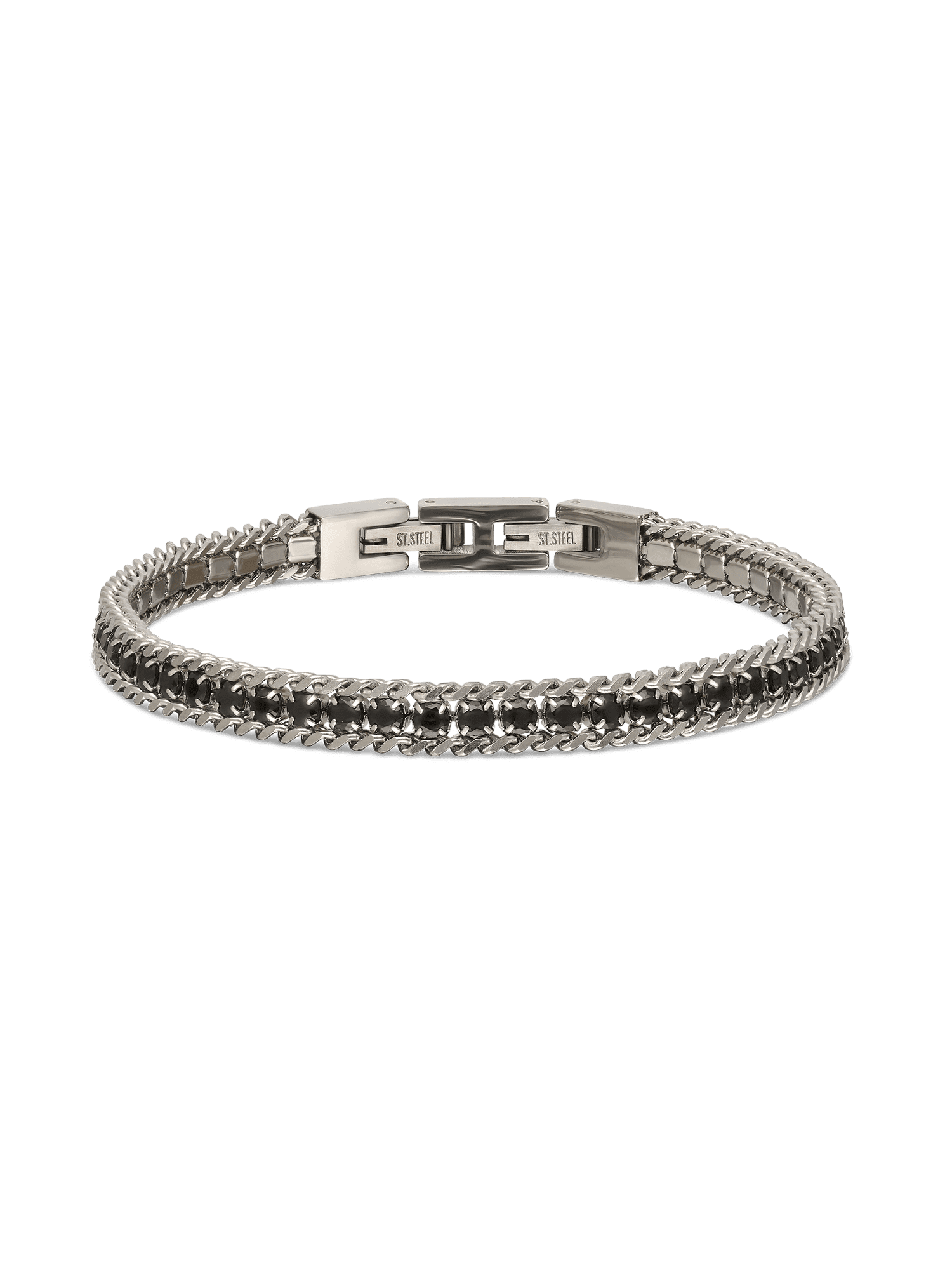 Pulseira Masculina, Aço inoxidável, Zircónia de cultivo, Preto, Círculo, Feito à mão, Prateado, 8.00 gramas.