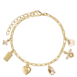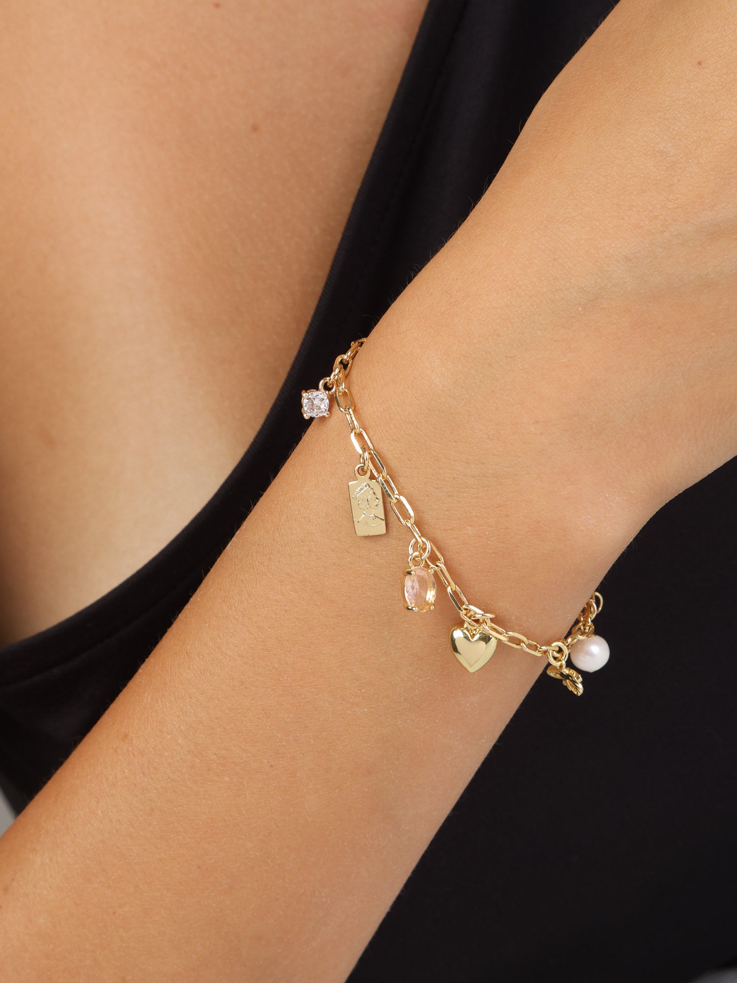 Pulseira Temática, Banhado a Ouro, Zircónia de cultivo, Pérola cultivada