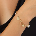 Pulseira Temática, Banhado a Ouro, Zircónia de cultivo, Pérola cultivada, Colorido, Variedade de formas, Feito à mão, Dourado, 4.66 gramas.