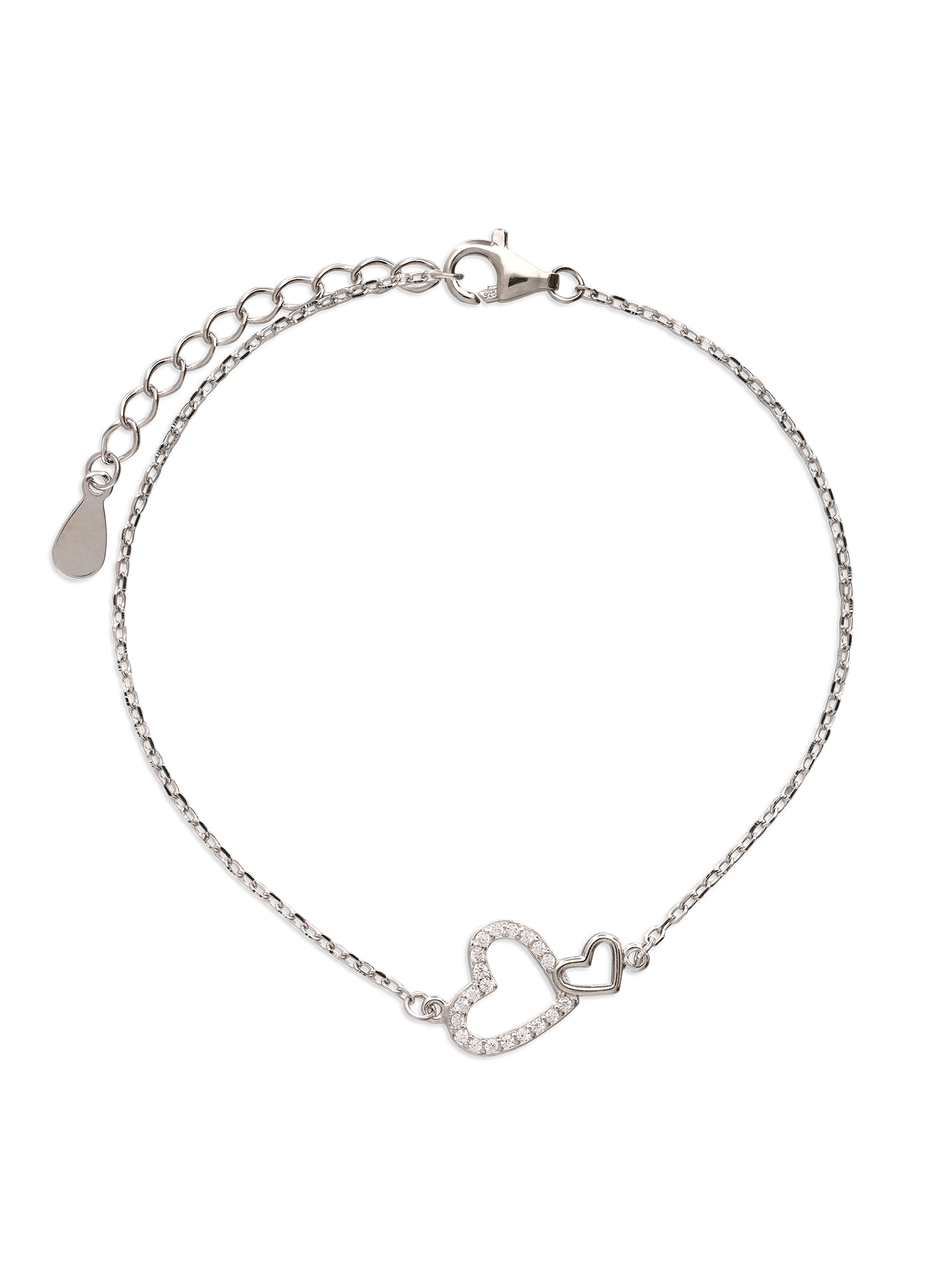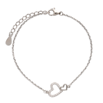 Pulseira Delicada, Prata de lei 925, Zircónia de cultivo, Claro, Coração, Feito à mão, Prateado, 1.31 gramas.
