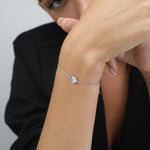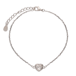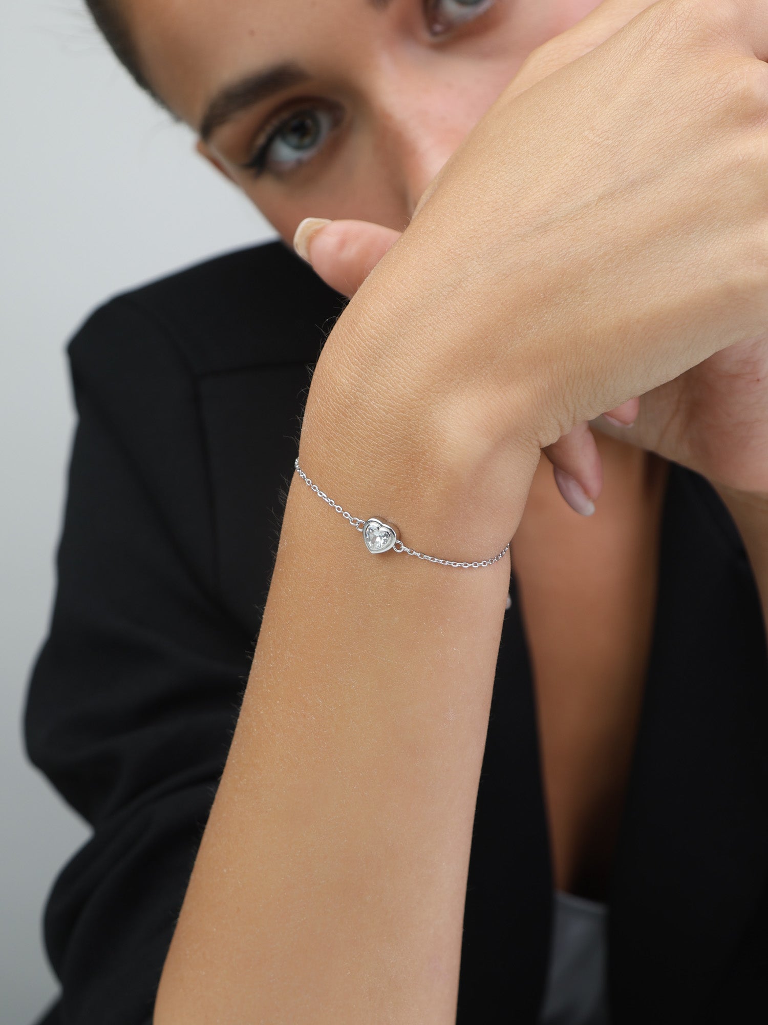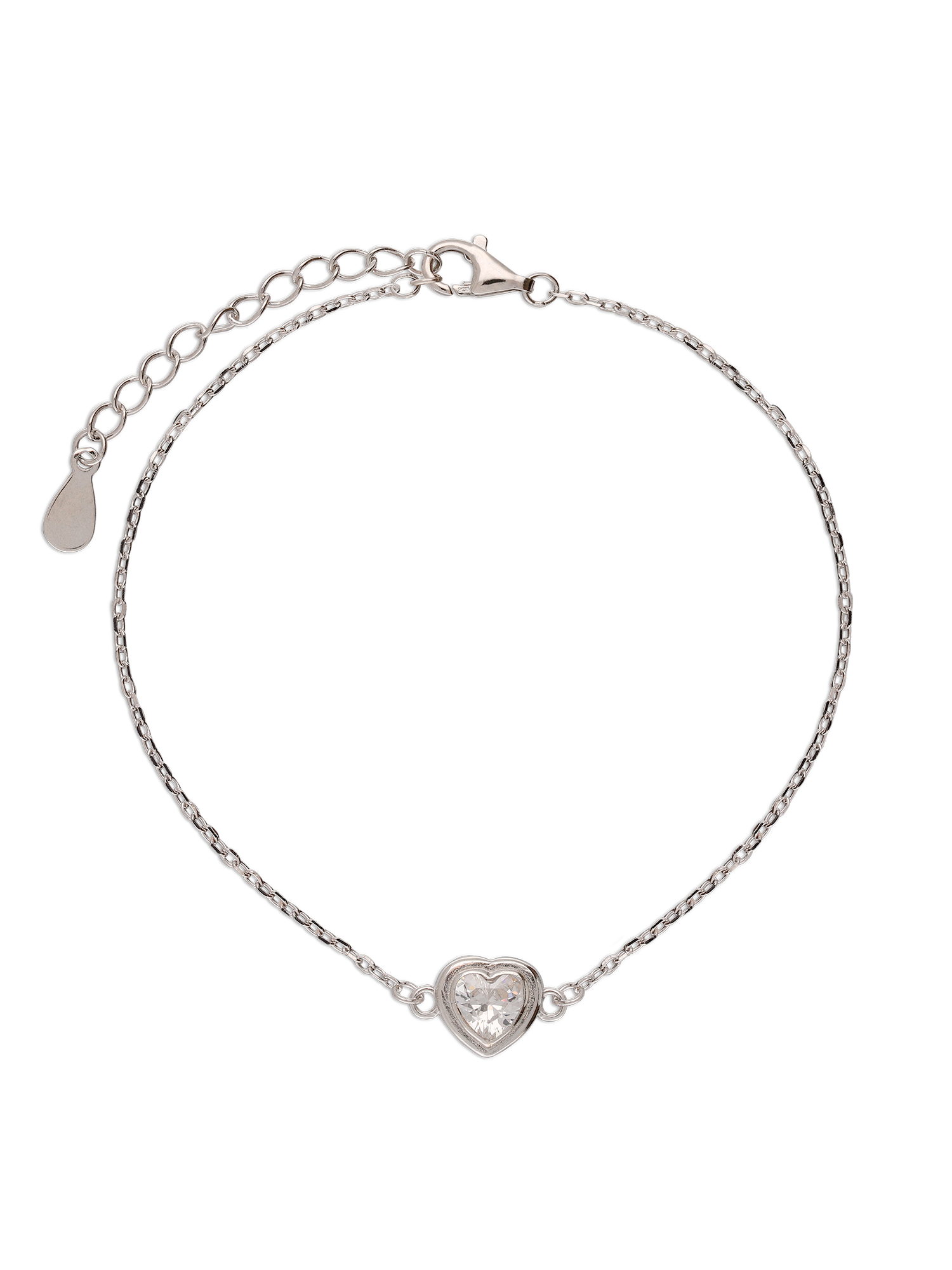 Pulseira Delicada, Prata de lei 925, Zircónia de cultivo, Claro, Coração, Feito à mão, Prateado, 1.60 gramas.