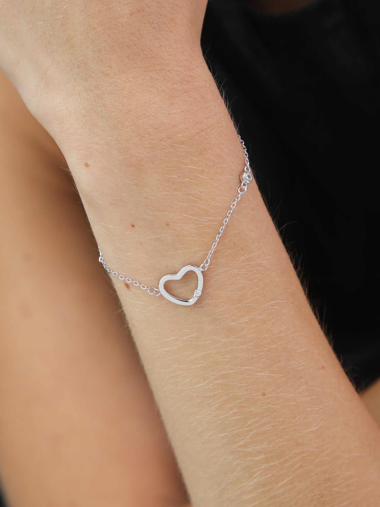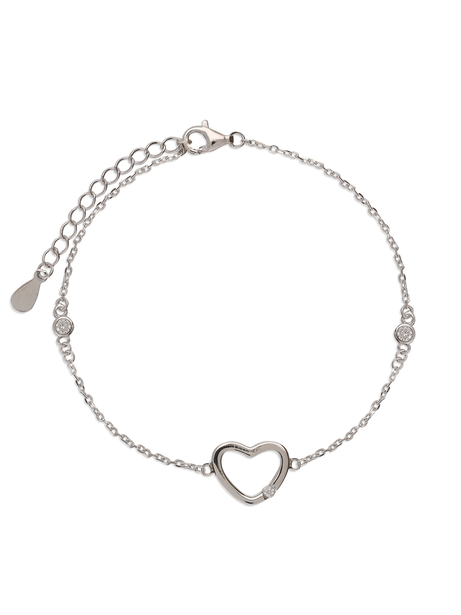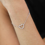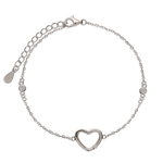 Pulseira Delicada, Prata de lei 925, Zircónia de cultivo, Claro, Coração, Feito à mão, Prateado, 1.90 gramas.