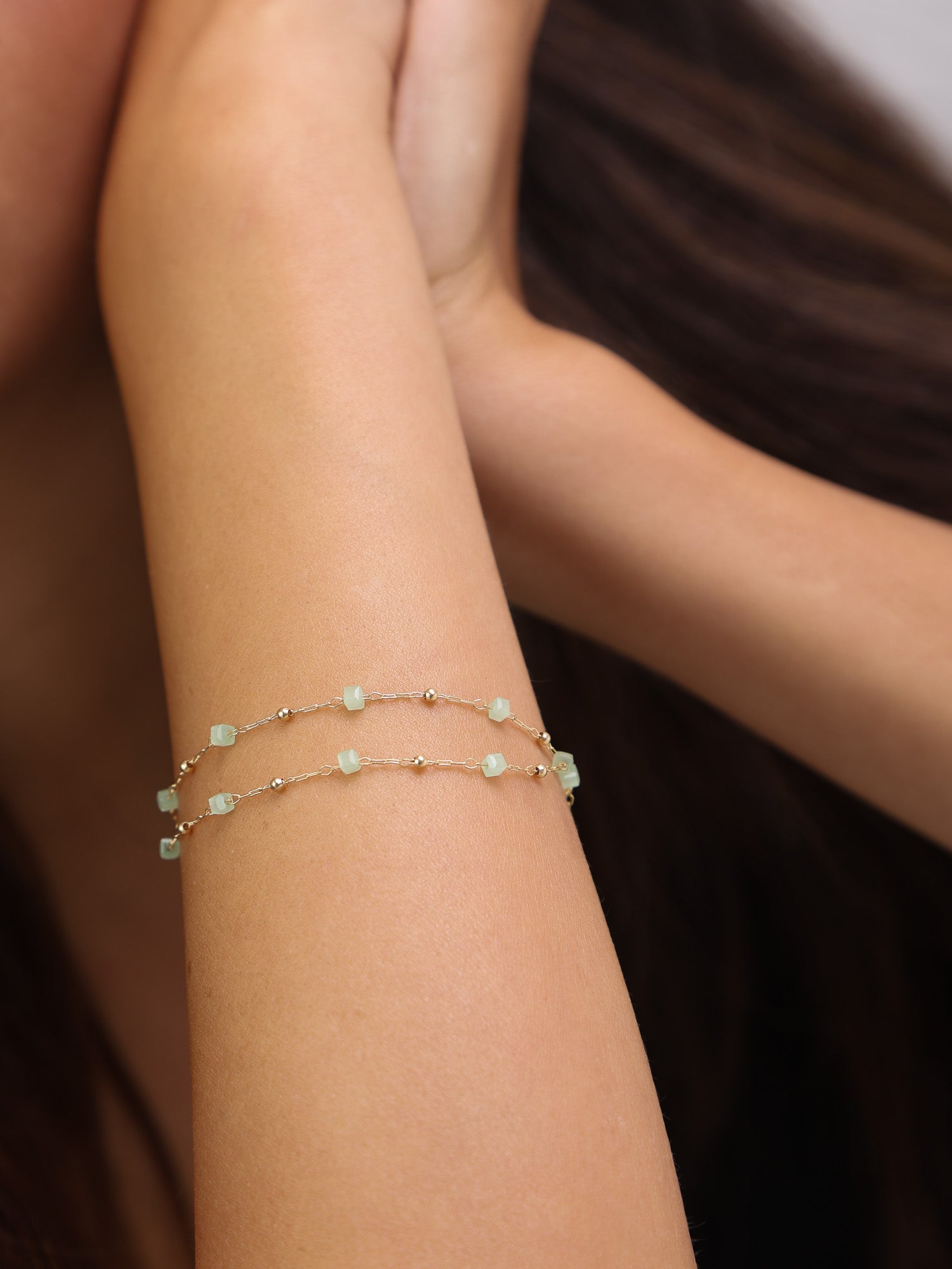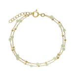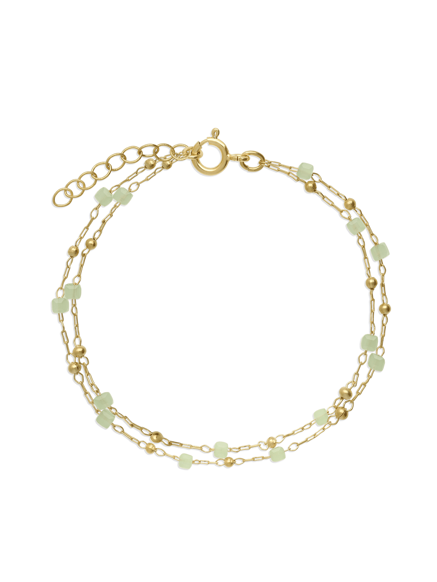 Pulseira em camadas, Banhado a Ouro, Vidro cristal, Verde, Quadrado, Feito à mão, Dourado, 1.70 gramas.