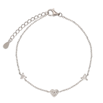 Pulseira Delicada, Prata de lei 925, Zircónia de cultivo, Claro, Coração, Feito à mão, Prateado, 1.46 gramas.