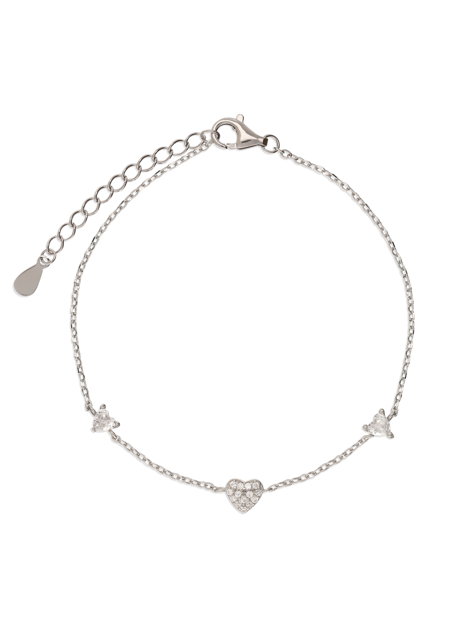 Pulseira corações em prata 925 com zircónias