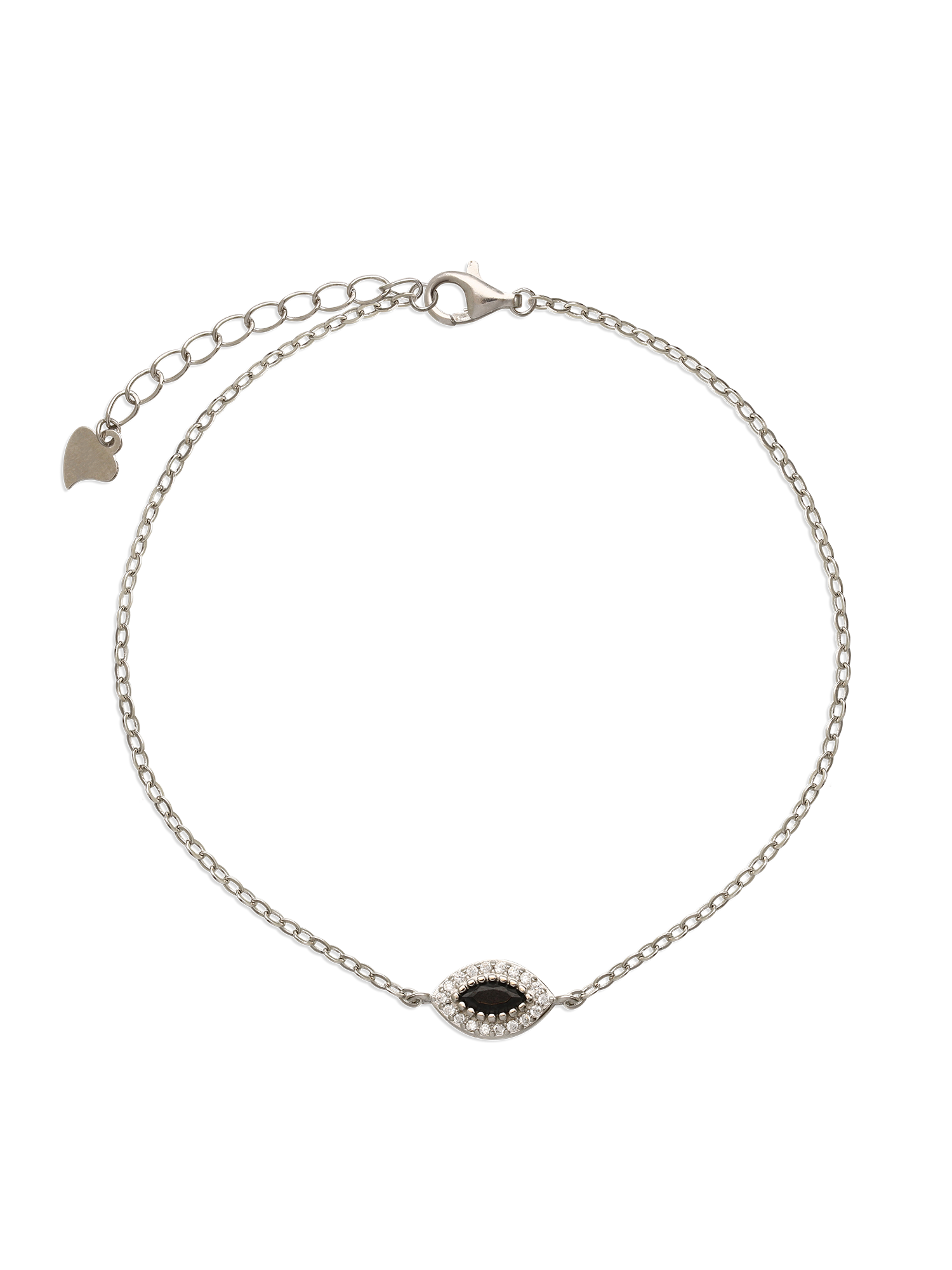 Pulseira Temática, Prata de lei 925, Zircónia de cultivo, Preto, Claro, Olho, Feito à mão, Prateado, 1.20 gramas.