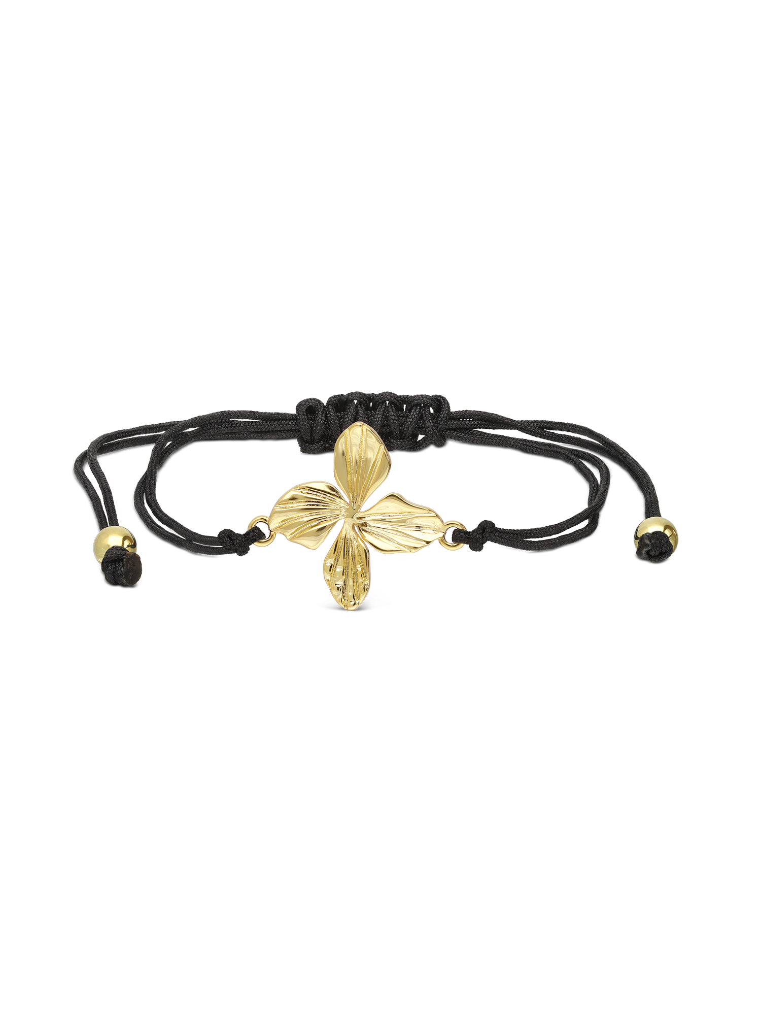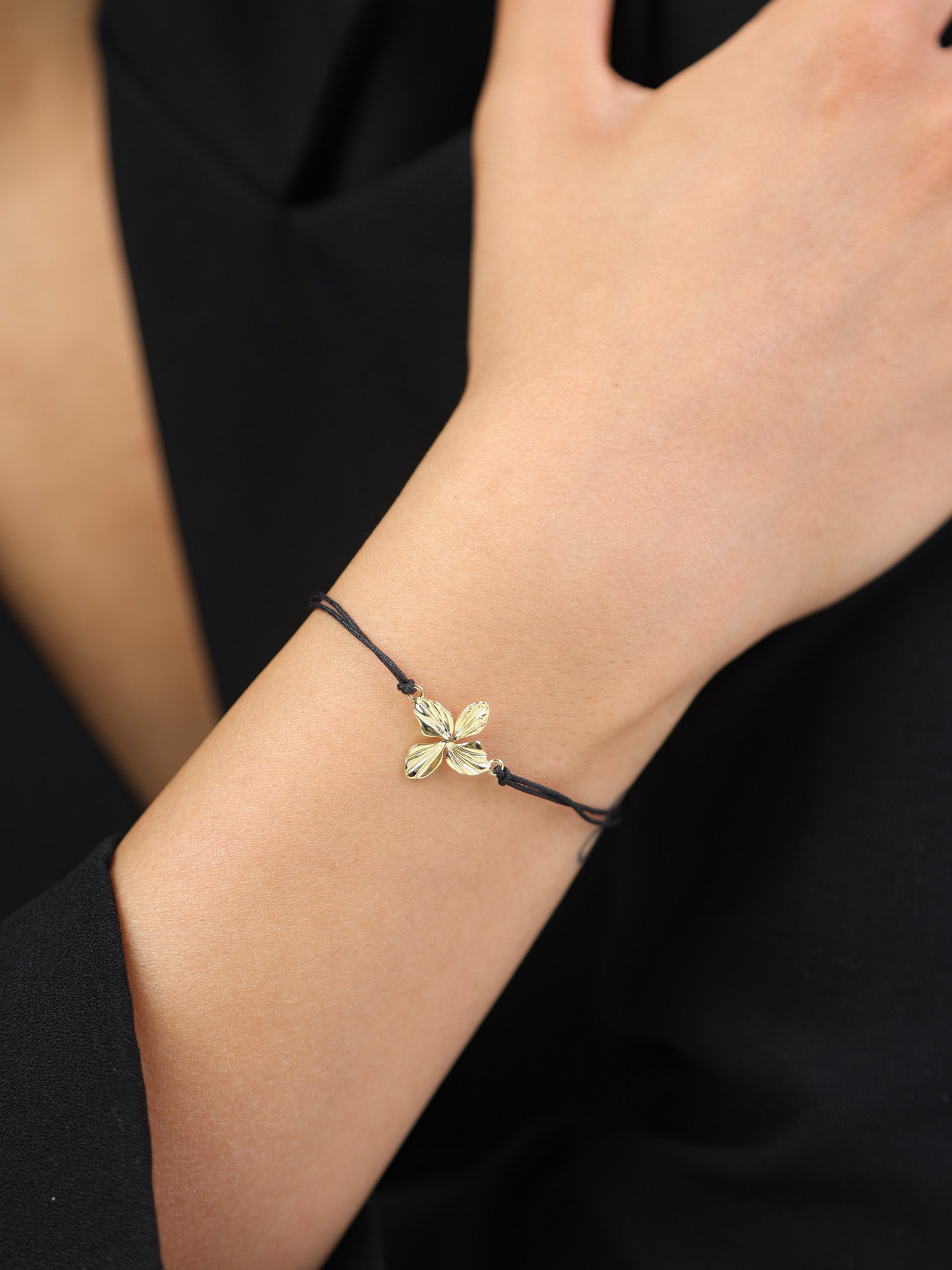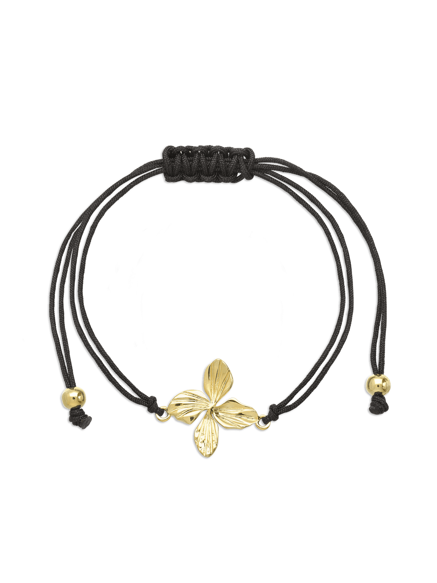Pulseira em corda com flor banhada a ouro