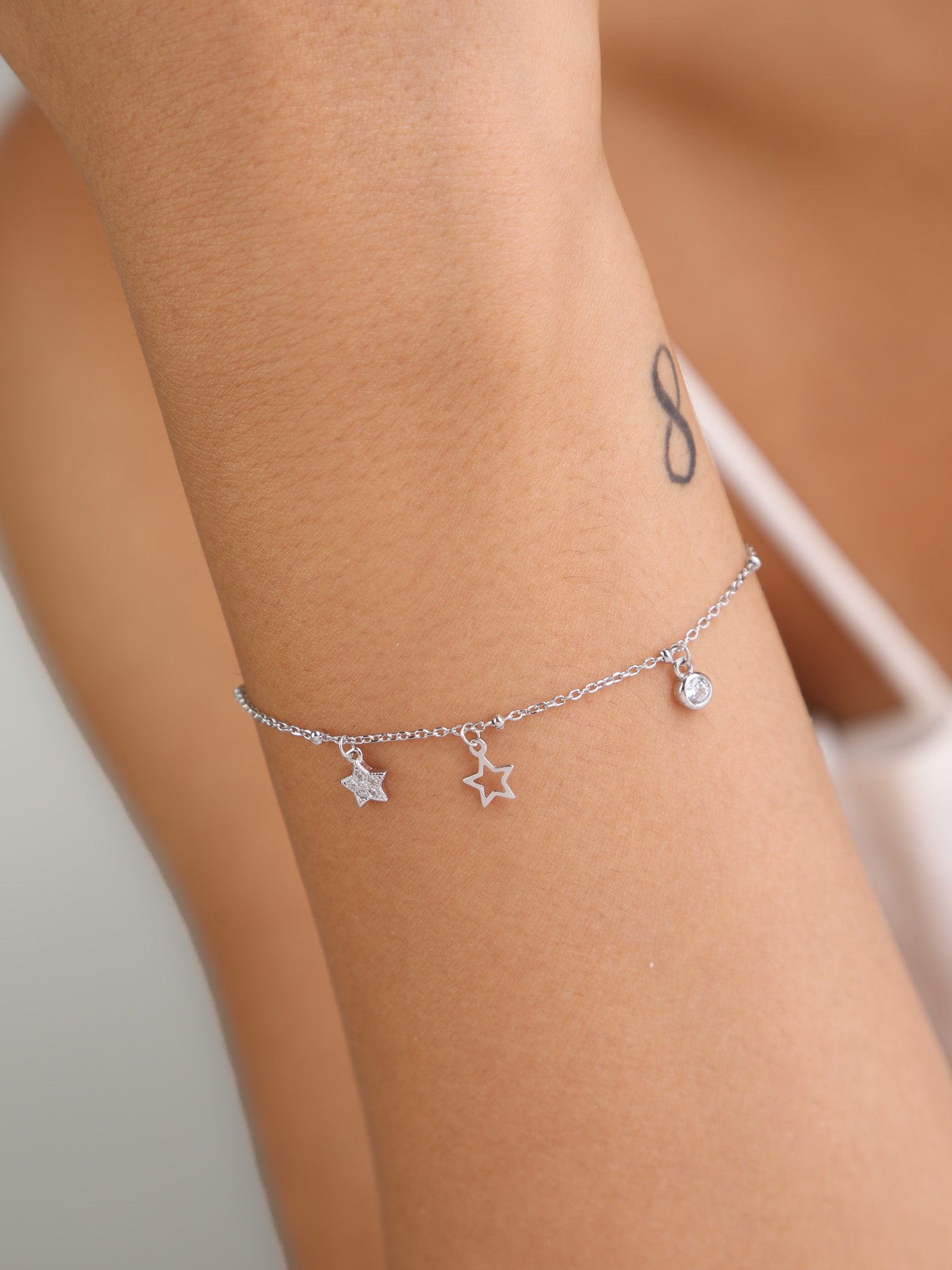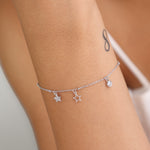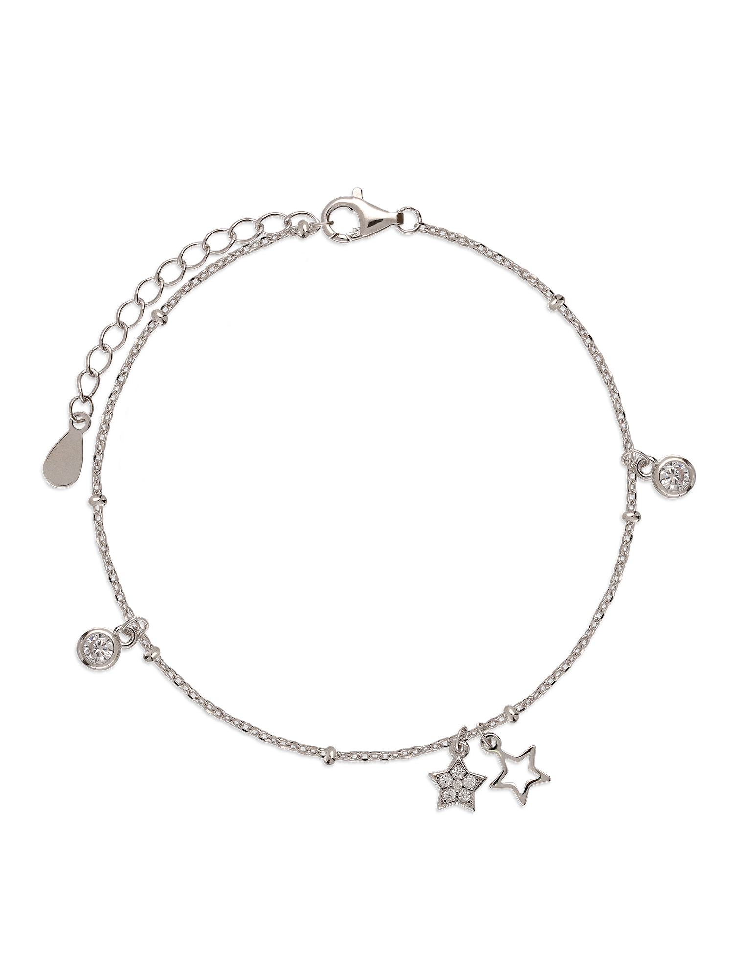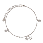 Pulseira Delicada, Prata de lei 925, Zircónia de cultivo, Claro, Estrela, Círculo, Feito à mão, Prateado, 1.89 gramas.