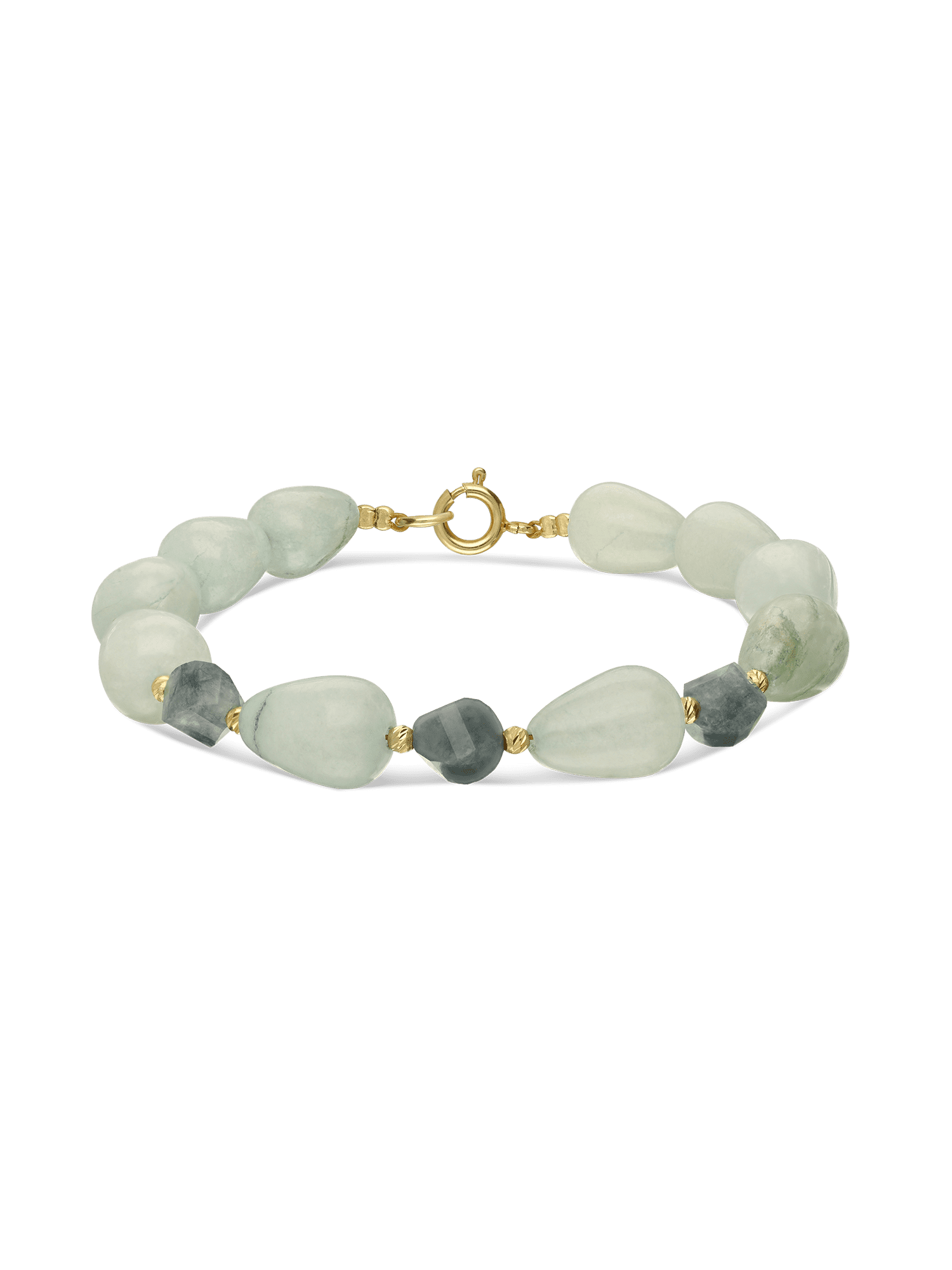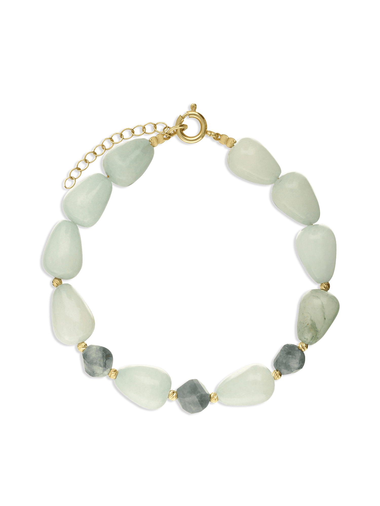 Pulseira de pedras banhada a ouro com jadeíte verde