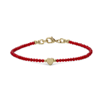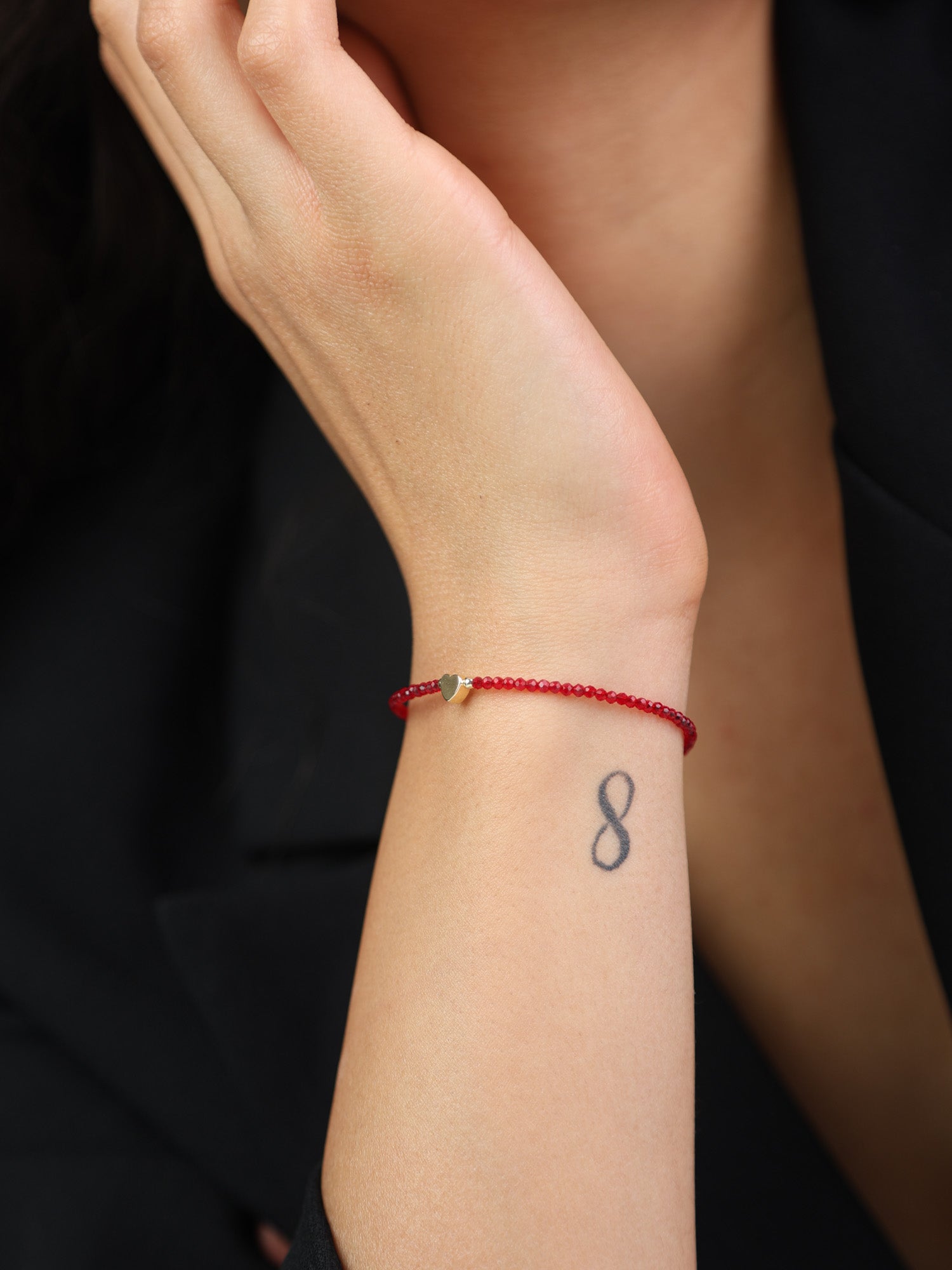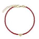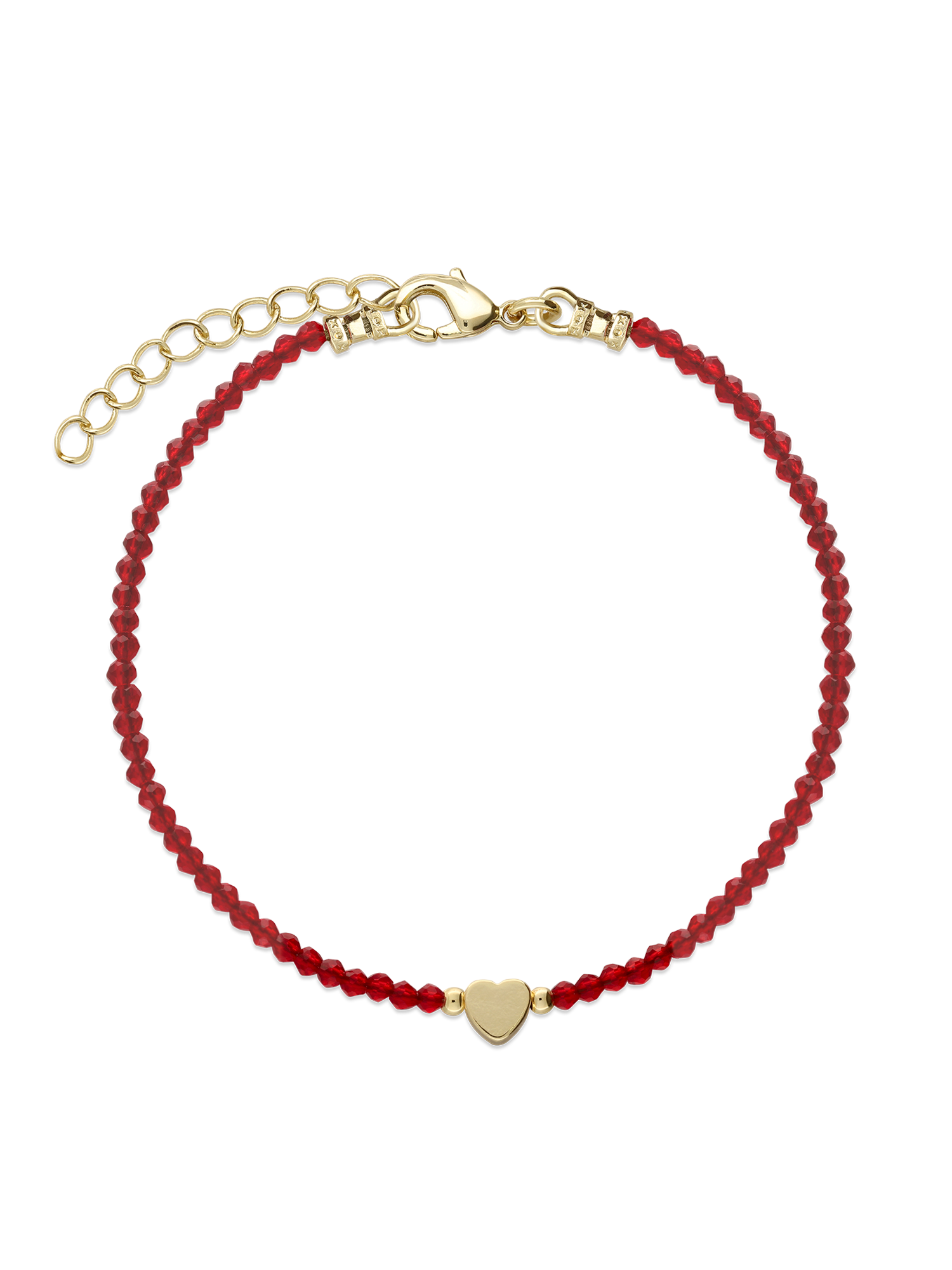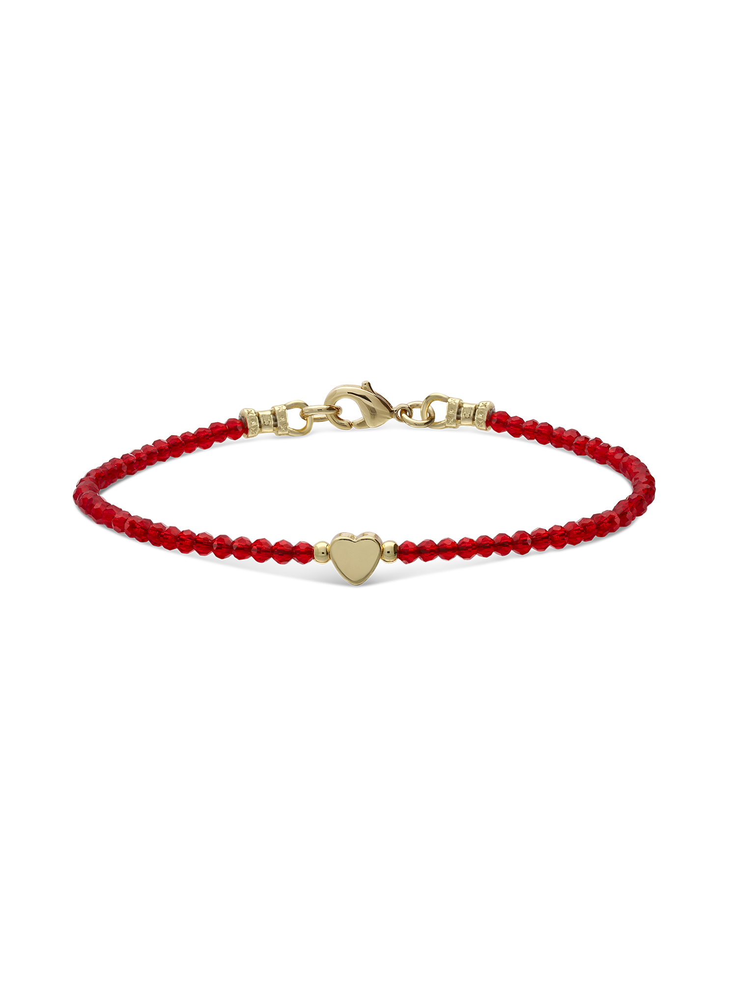 Pulseira delicada, Banhado a Ouro, Vidro cristal, Vermelho, Coração, Círculo, Feito à mão, Dourado, 1.98 gramas.