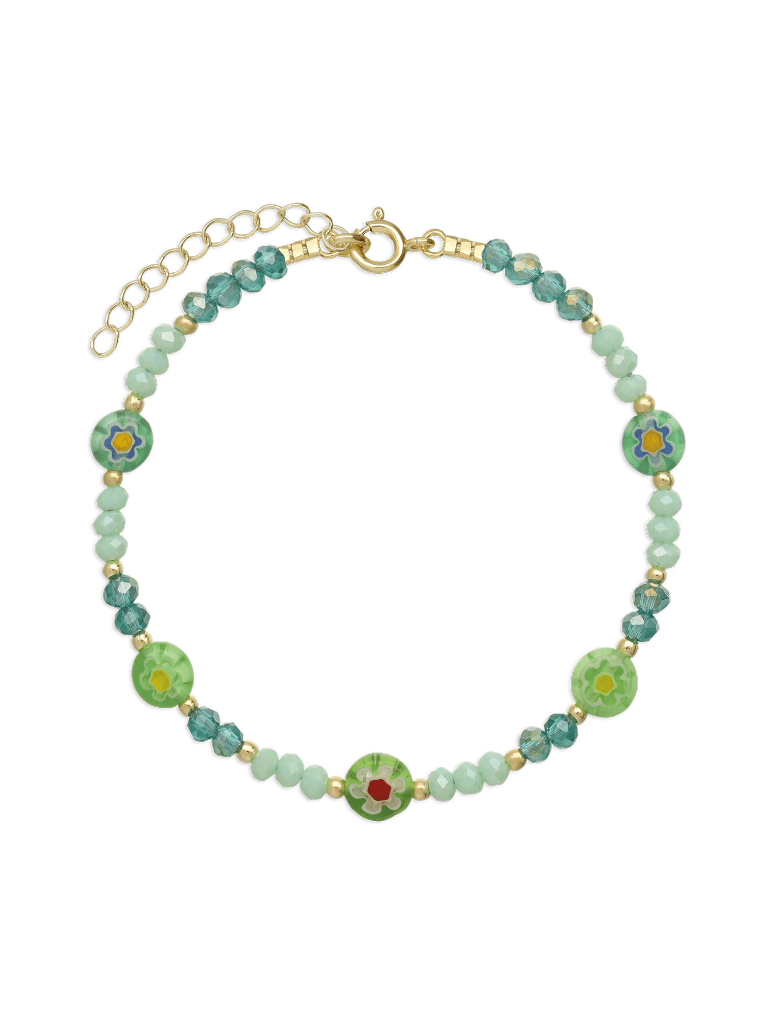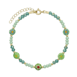 Pulseira de pedra, Banhado a Ouro, Vidro cristal, Vidro de Murano de cultivo, Verde, Colorido, Flor, Feito à mão, Dourado, 2.73 gramas.
